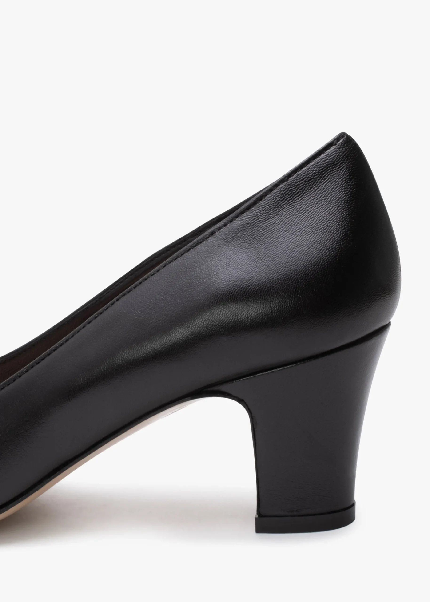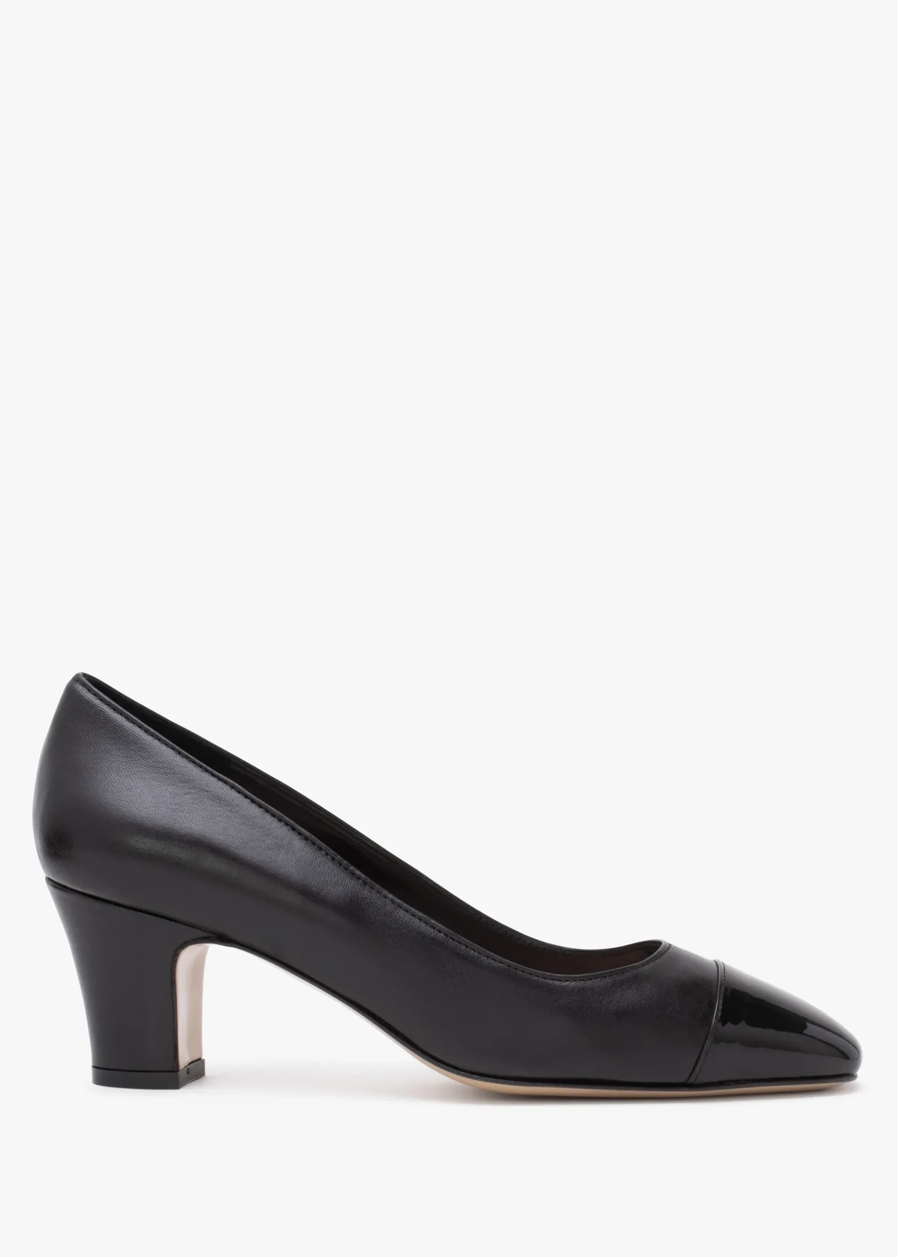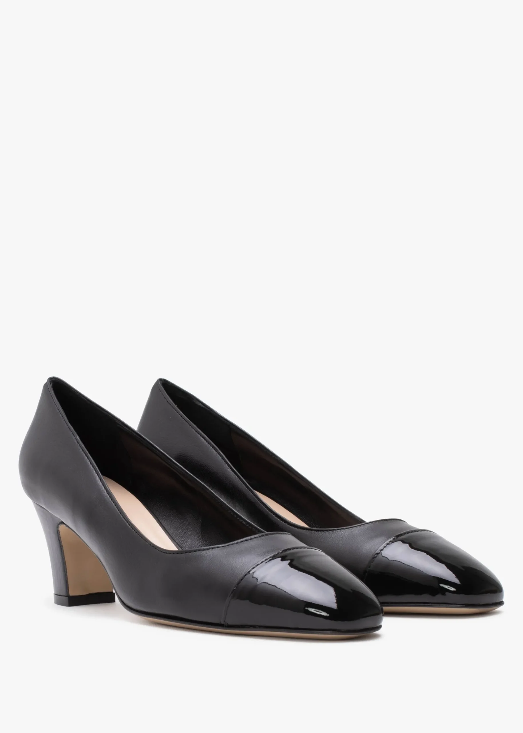 The ‘Akuna’ court shoes are part of the New Season collection from Daniel Footwear. This timeless classic style will see you through Season after Season. Crafted from a premium leather upper with luxurious leather lining and sole. An easy to wear slip on style. A simple yet chic style featuring contrasting patent leather toe cap. The rounded toe and mid-block heel make up the silhouette. Signature Daniel branding is seen to the foot-bed.