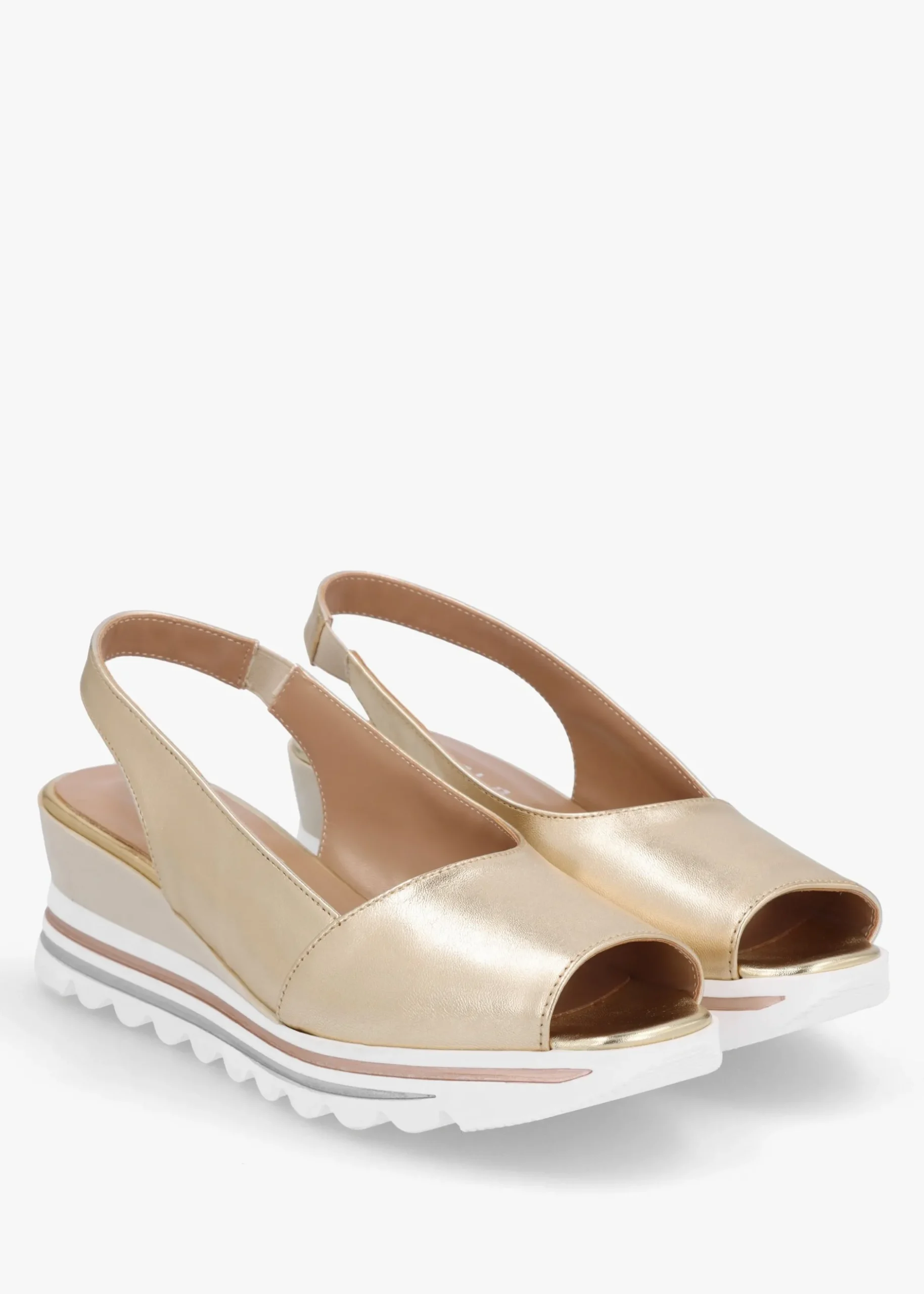 The ‘Canna’ wedge sandals are part of the New Season collection from Daniel Footwear. This classic style is crafted from a premium metallic leather upper with luxurious leather lining and a striped chunky cleated rubber sole. The cushioned foot-bed sock, new to the Daniel collection this Season creates add comfort for all day wear. Classic peep toe and mid wedge heel make up the silhouette. An easy to wear slip on style featuring elasticated sling back. Signature Daniel branding is seen to the foot-bed.