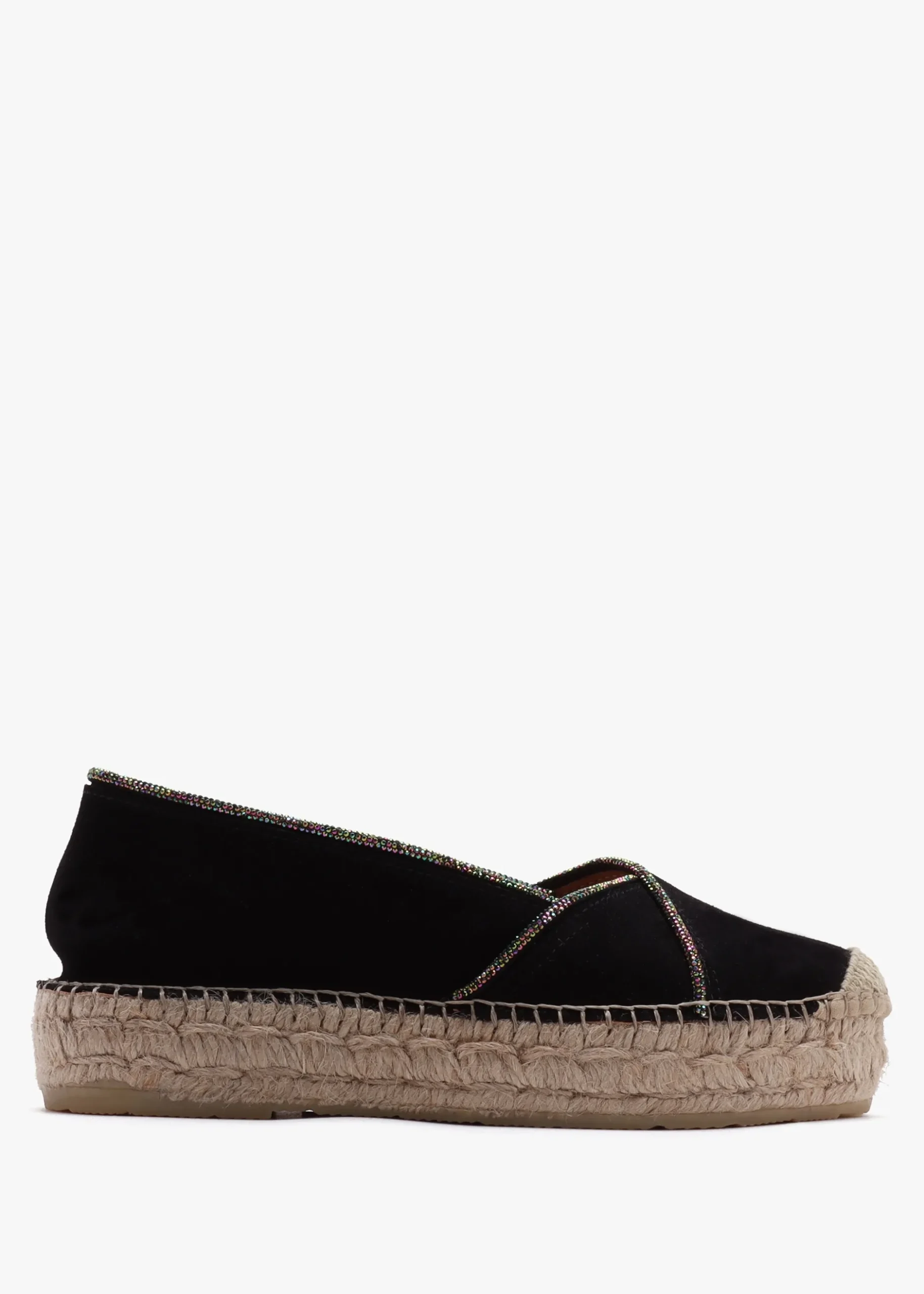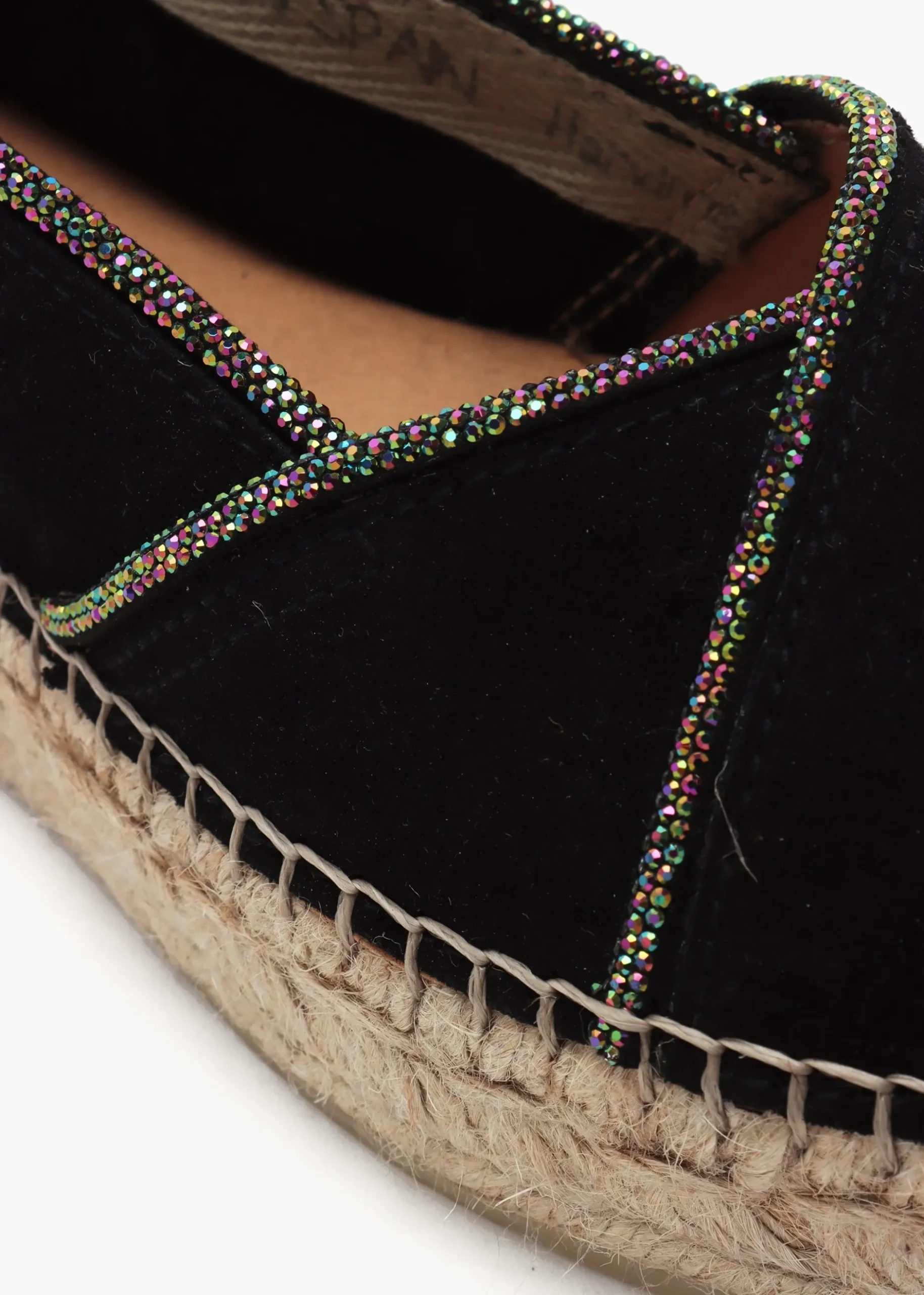 The classic espadrille from Daniel Footwear has been revamped for the New Season. The ‘Idiamante’ espadrille flats are crafted from a premium suede upper, unlined featuring jute trim and a rubber sole. An easy to wear slip on style featuring a diamante embellished asymmetric top-line. The round toe and flatform sole make up the silhouette. Signature Daniel branding is seen to the foot-bed.