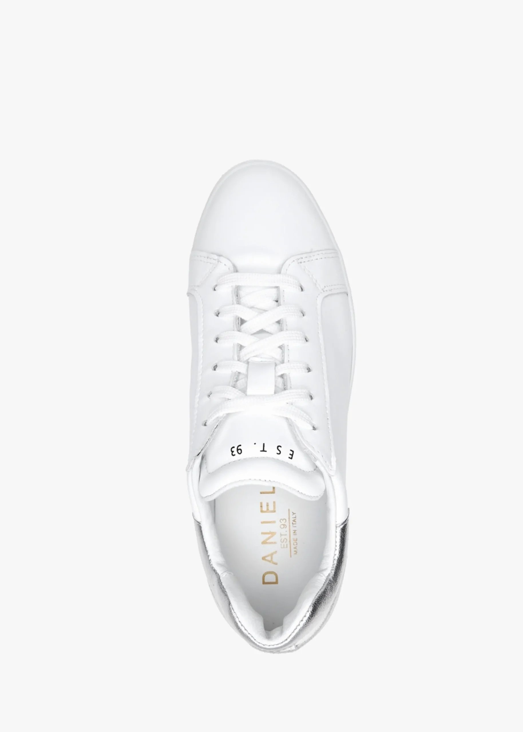 The ‘Sibley’ trainers are a continuity style and part of the most clicked collection from Daniel Footwear. These off-duty trainers are crafted from a premium leather with luxurious leather lining and a chunky flatform rubber sole. The lace up upper creates an easy wear as well as ensuring the perfect fit. Top stitching and raised seaming add detail to the upper as well as contrasting colour flash to the back of the ankle, suede inserts also feature. ‘EST.93’ motif adorns this style, a nod to the year the brand was created. Signature Daniel branding is seen to the foot-bed. These most wanted flatform trainers will see you through Season after Season.