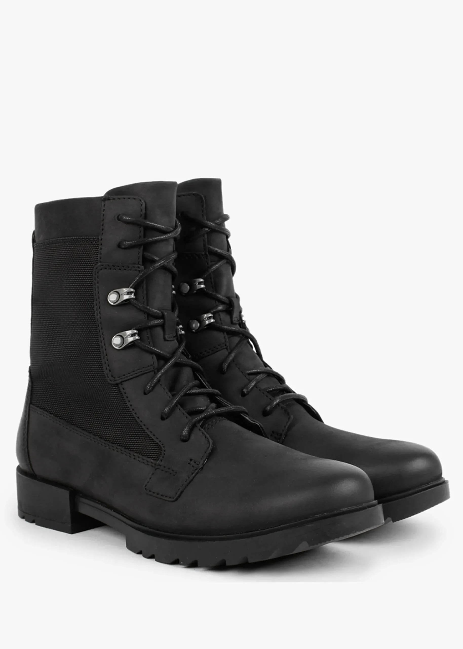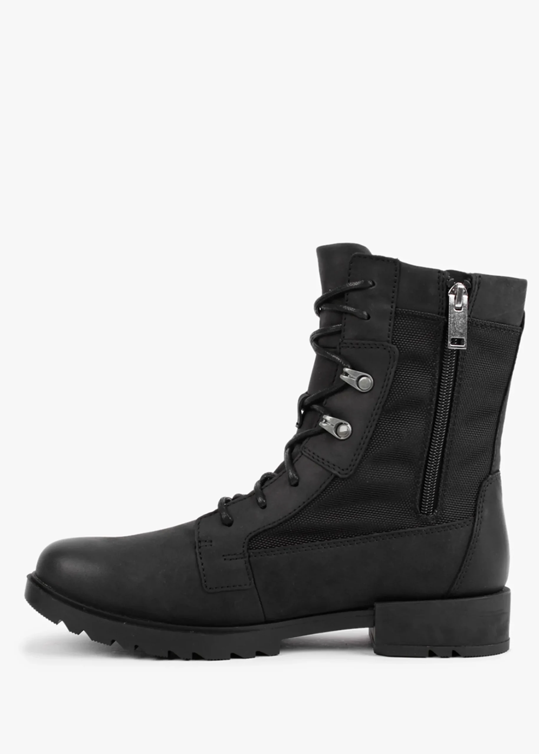 The ‘Emelie II’ tall ankle boots are part of the New Season collection from Sorel. This classic military style is crafted from a premium waterproof leather upper with canvas lining and a comfy rubber sole. Zip fastening to the inner leg creates an easy wear and the lace up upper ensures the perfect fit. Contrasting ballistic nylon textile inserts add detail as well as tonal top stitching and raised seaming. Signature Sorel branding is seen throughout.