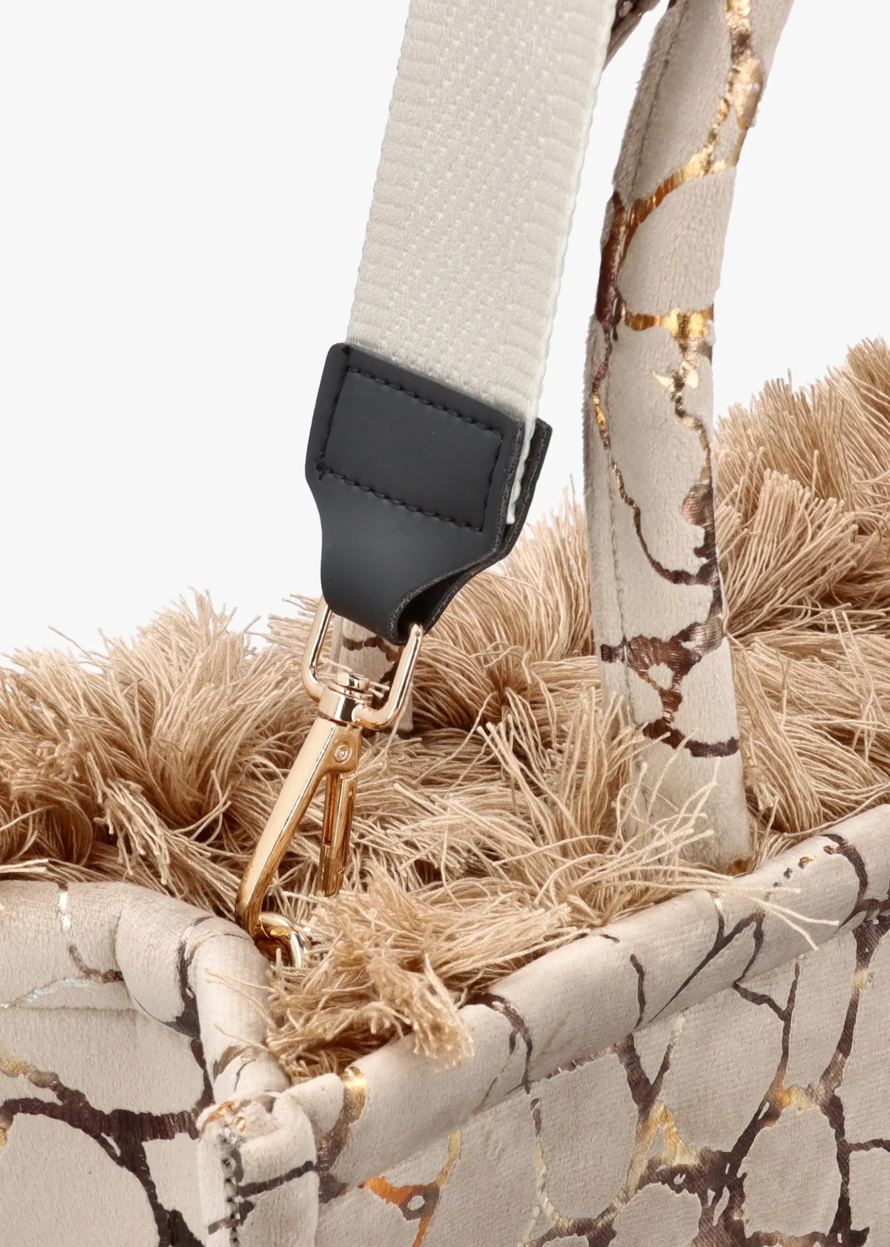 The ‘Ammoudi’ large tote bag from SORENA is designed in Greece and inspired by dreamy Mediterranean Summers. This spacious style is crafted from premium textile fabric with velvet look lining, gold tone hardware and fringe trim detail. Secure top zip fastening reveals the main compartment featuring handy inner zip pocket. Carry by the top handles or the detachable logo shoulder strap. Signature SORENA GREECE brand tabs are seen both inside and out.