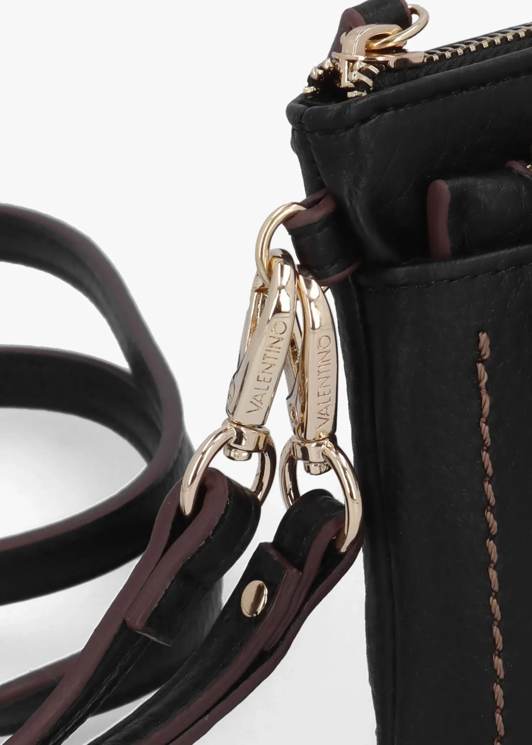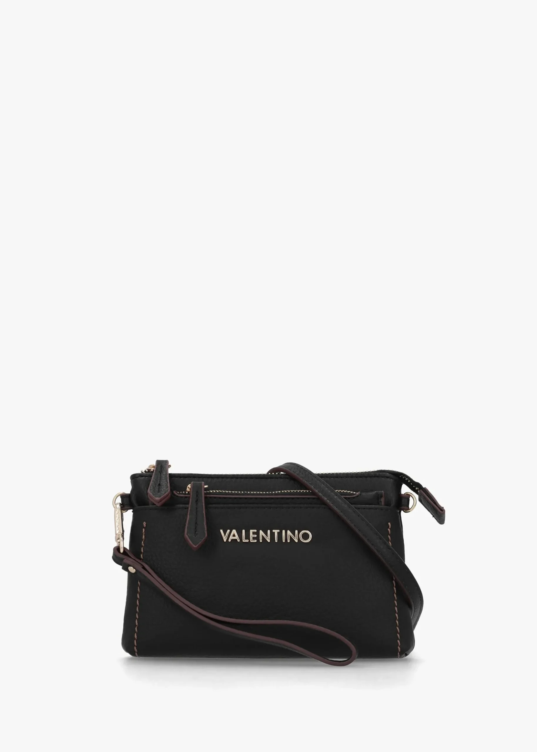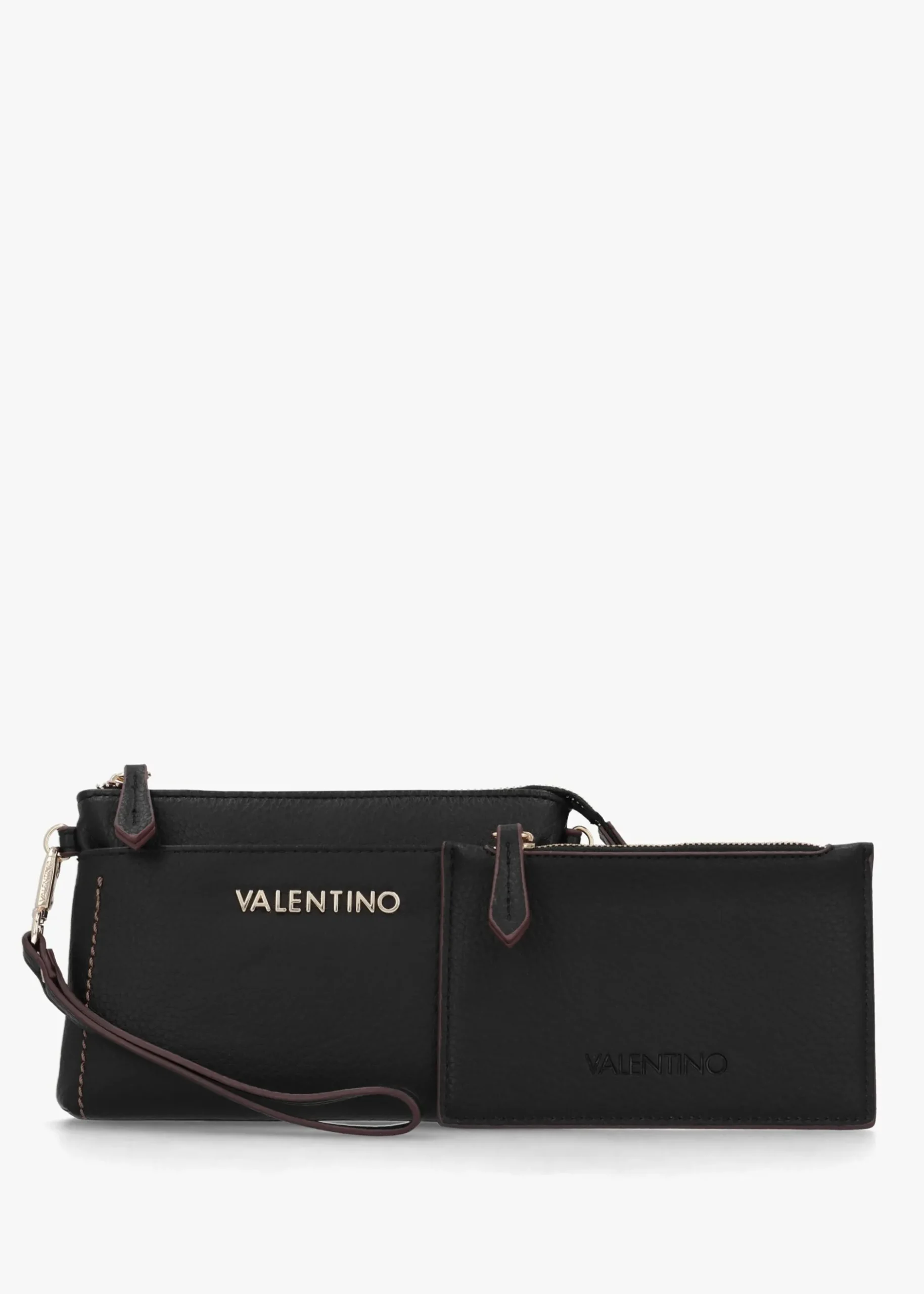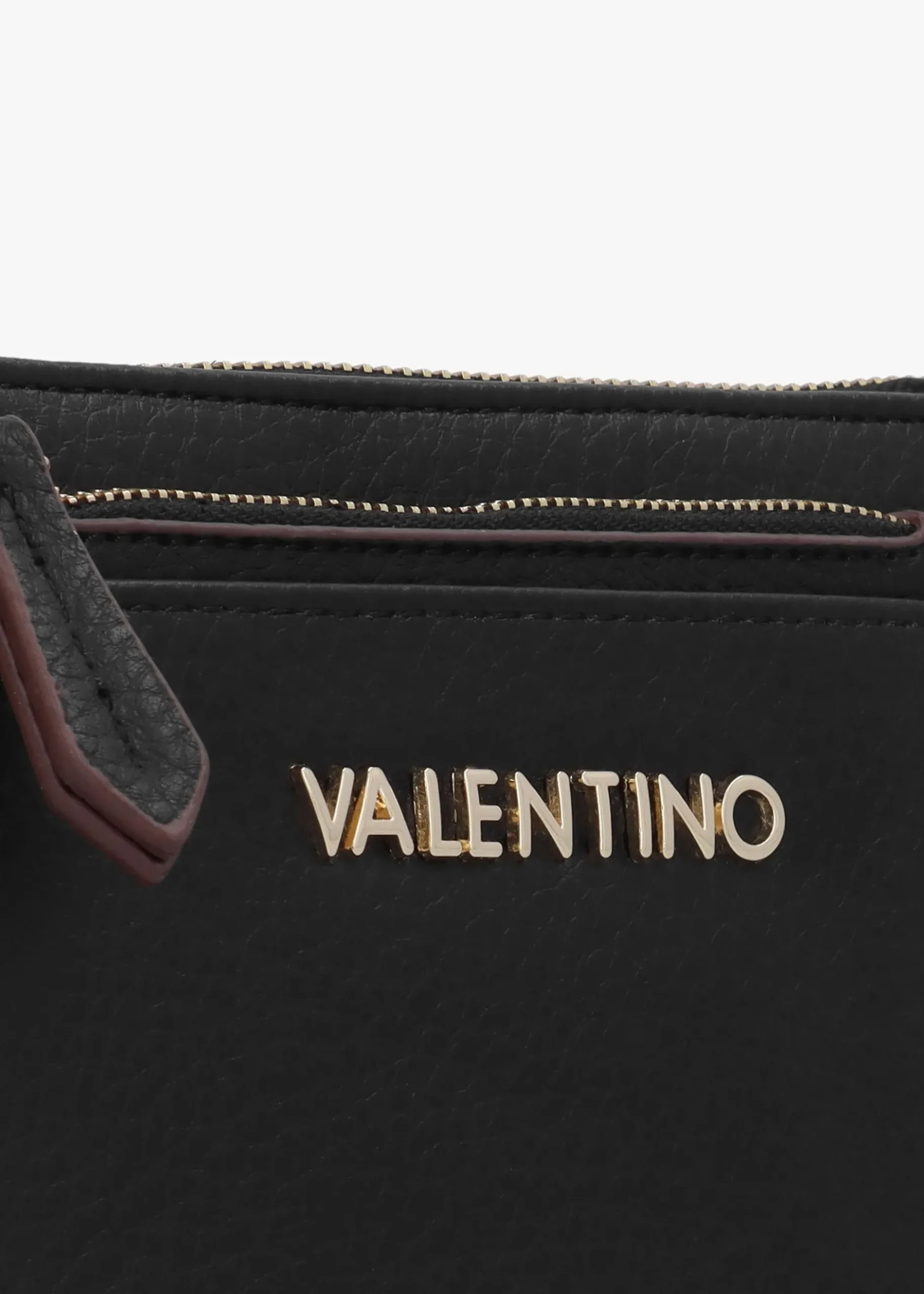 The ‘Samantha’ wallet on a strap from Valentino is a versatile style. Crafted from premium pebbled PU with polished gold tone accents. The secure top zip fastening reveals the single main compartment with multiple inner card slot pockets. Exterior front slot pocket with removable additional wallet features as well as exterior zip pocket. Use as a classic wallet or carry by the detachable cross-body or wristlet strap. Signature Valentino branding adds detail.