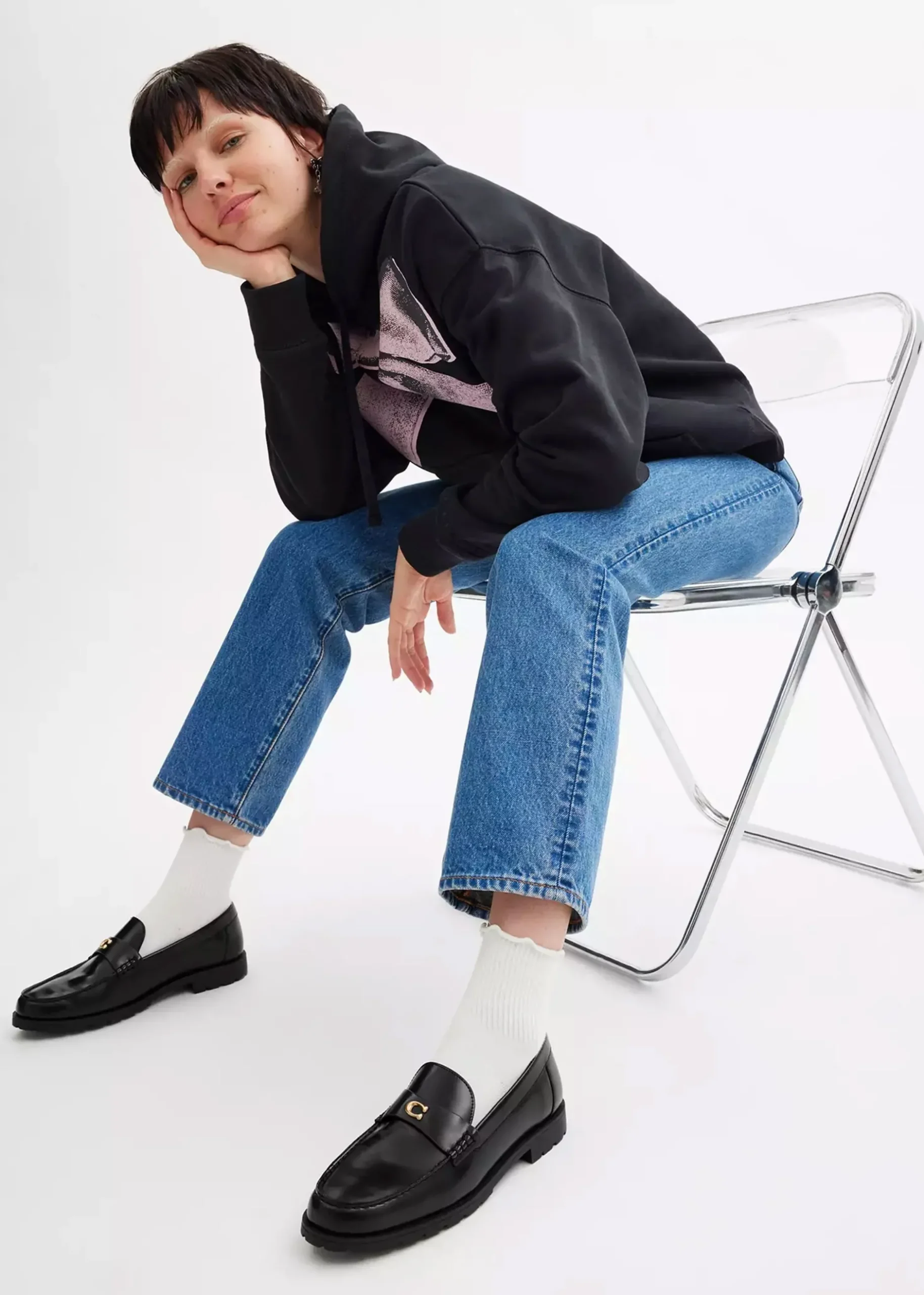 The wear anywhere ‘Jocelyn’ loafers are part of the New Season collection from COACH. Crafted from a premium smooth leather upper with part leather lining and a tracked rubber sole. An easy to wear slip on silhouette. Classic gold tone ‘C’ logo motif adds detail to the upper. Signature COACH branding is seen to the footbed.