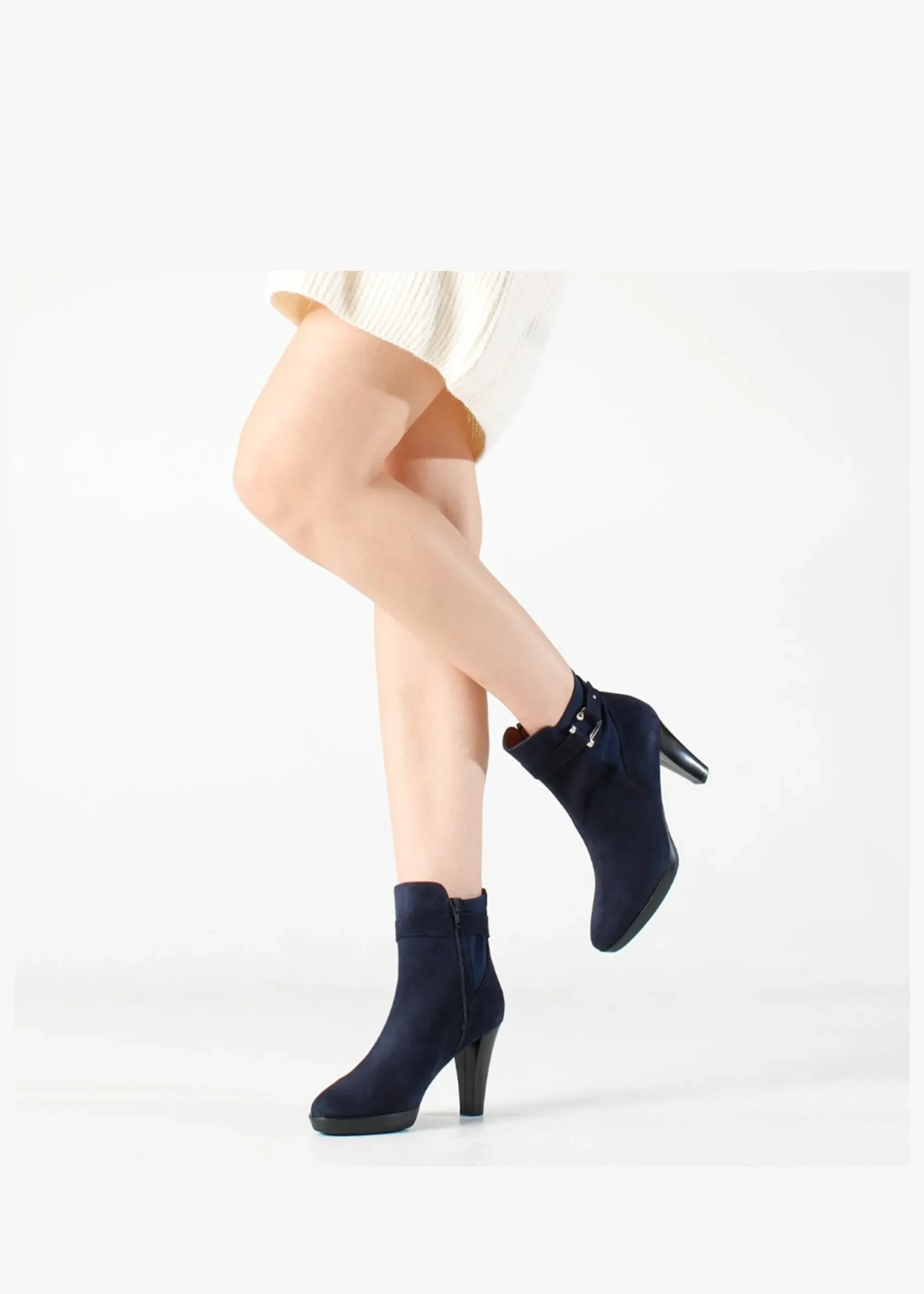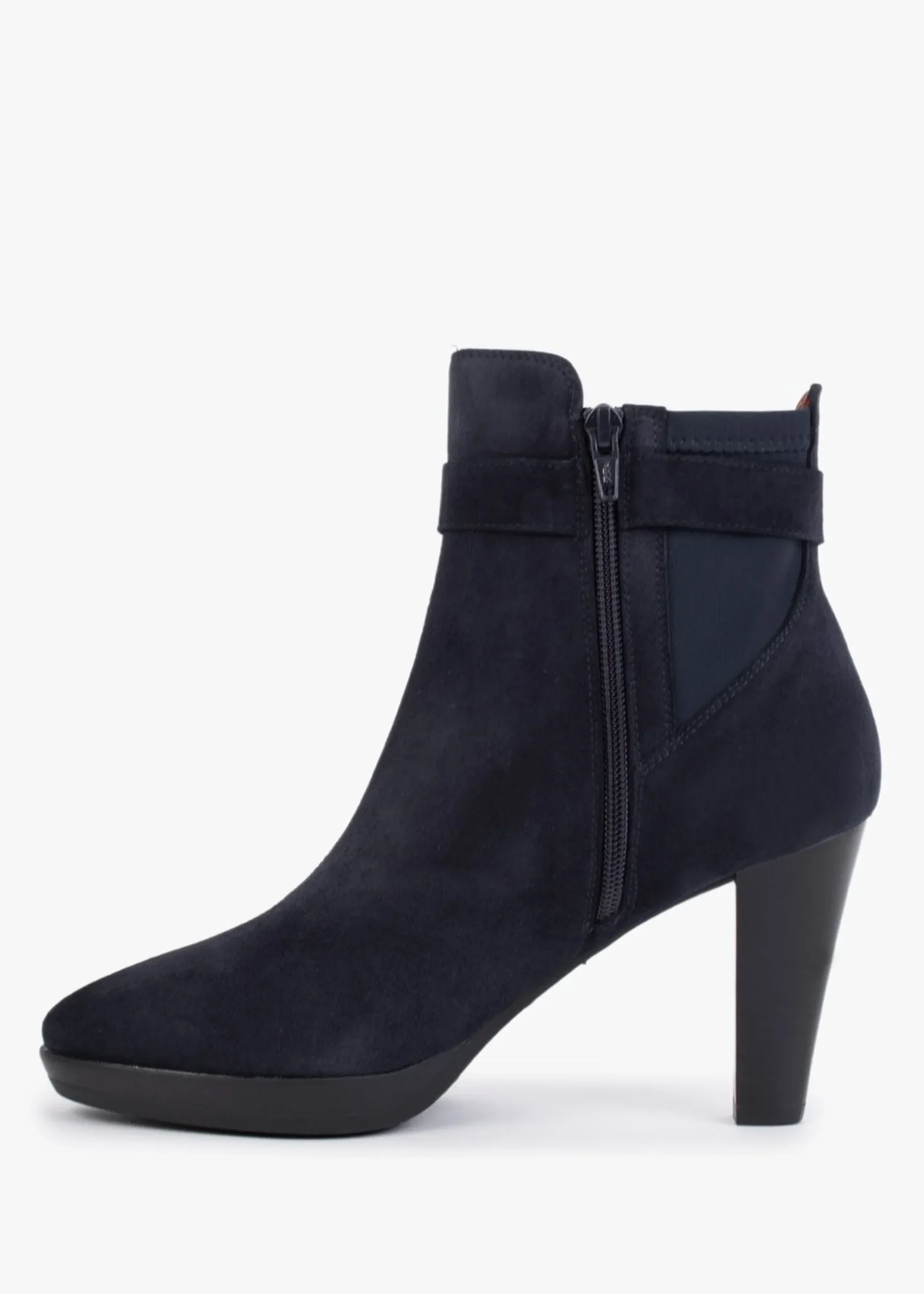Add the ‘Joyfully’ ankle boots from Daniel Footwear to your New Season wardrobe. Crafted from a premium suede upper with luxurious leather lining and a comfy rubber sole. Zip fastening to the inner leg creates an easy wear. Elasticated inserts add detail as well as buckle and ankle strap. The low platform and block heel make up the silhouette. Signature Daniel branding is seen to the foot-bed.
