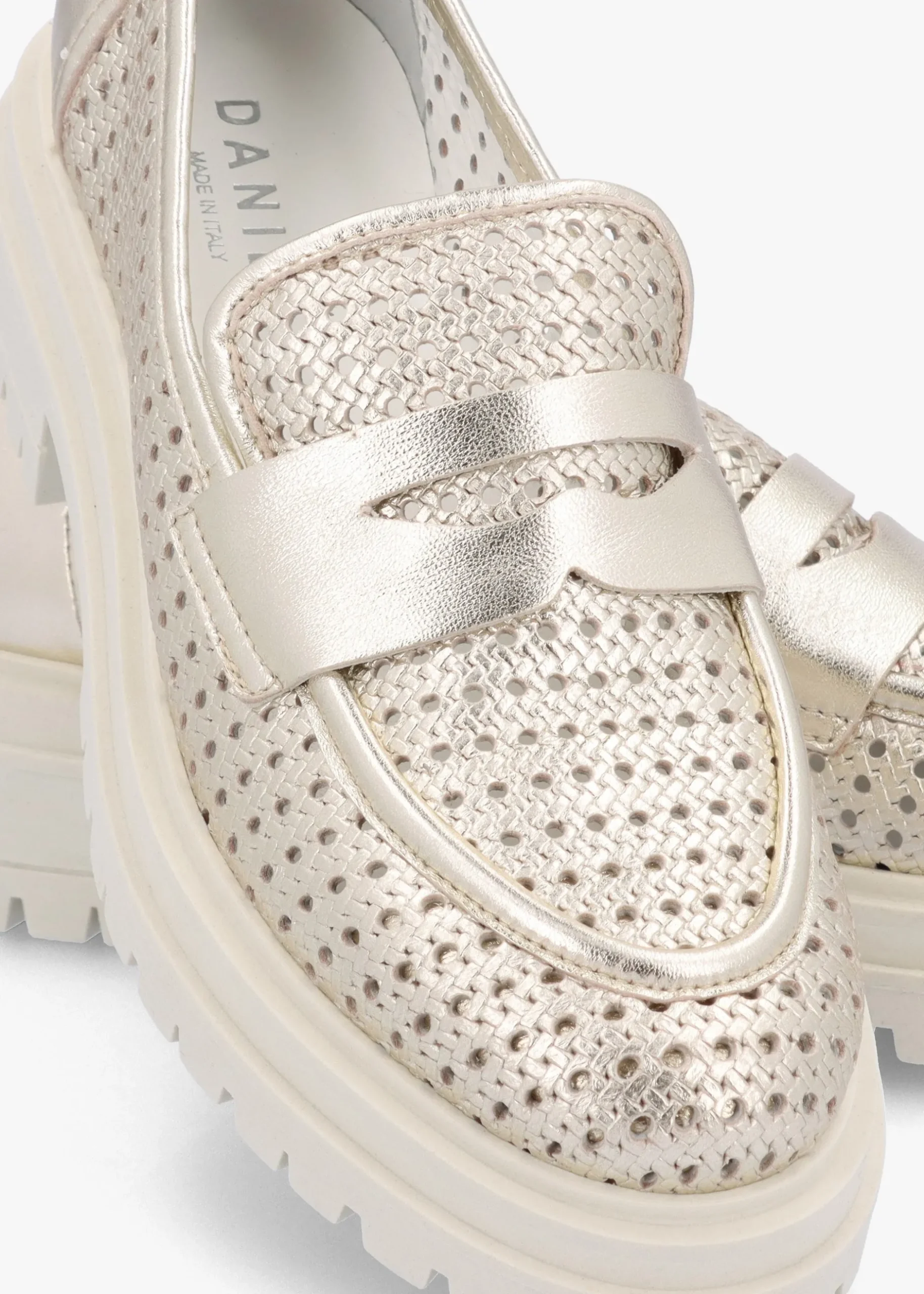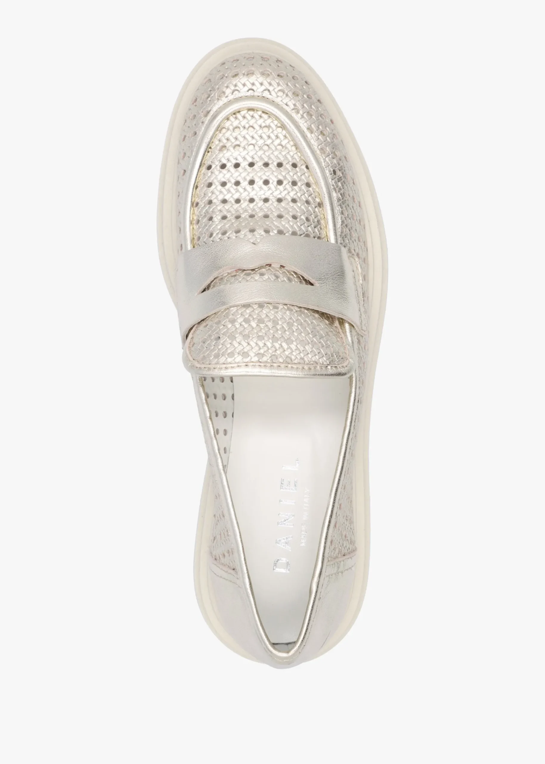 Ditch your heels and fashion the ‘Nattie’ loafers from Daniel Footwear this New Season. The perfect everyday style crafted from a premium leather upper in a perforated woven design with leather lining and a chunky rubber sole. An easy to wear classic slip on style. Signature Daniel branding is seen to the foot-bed.
