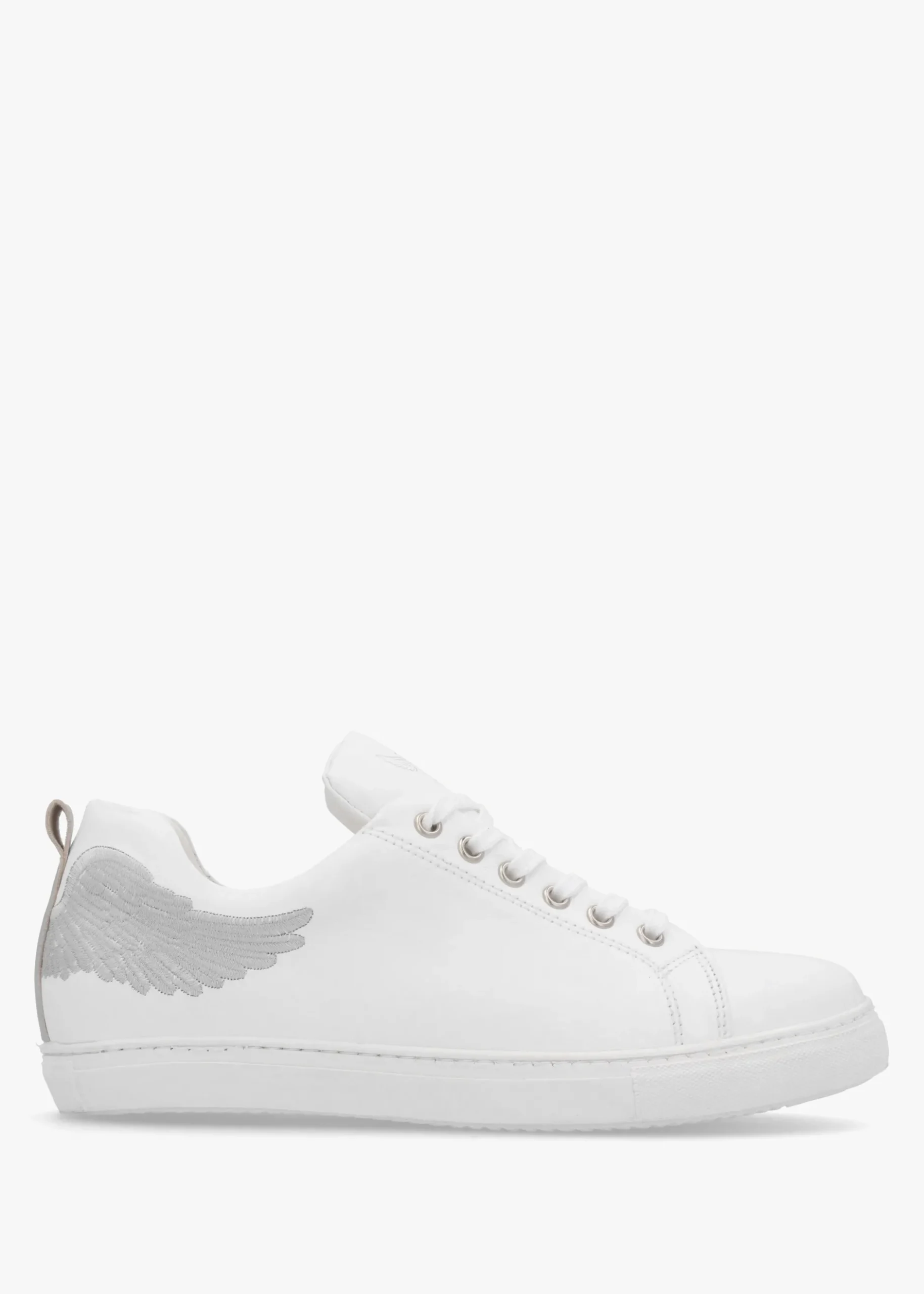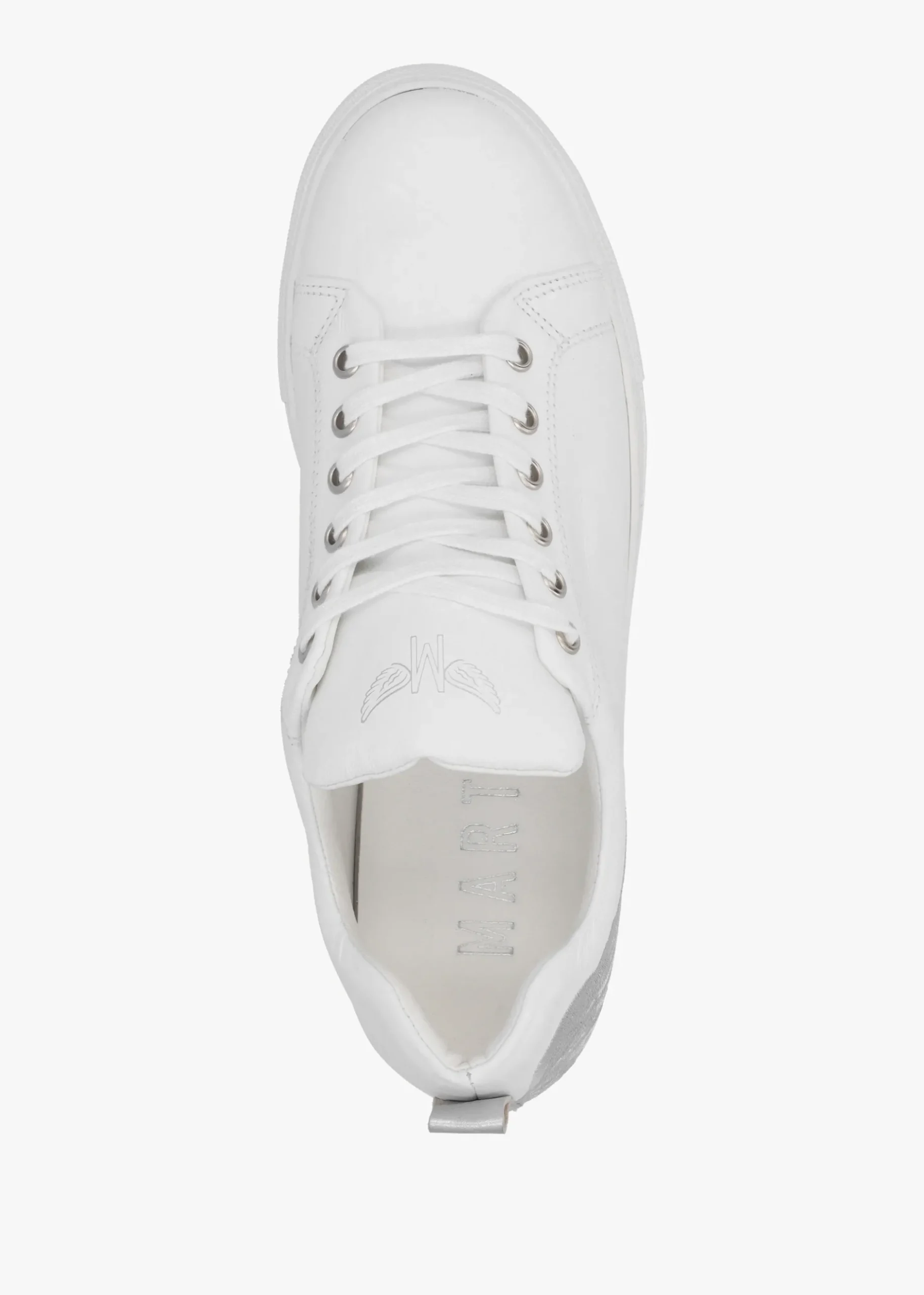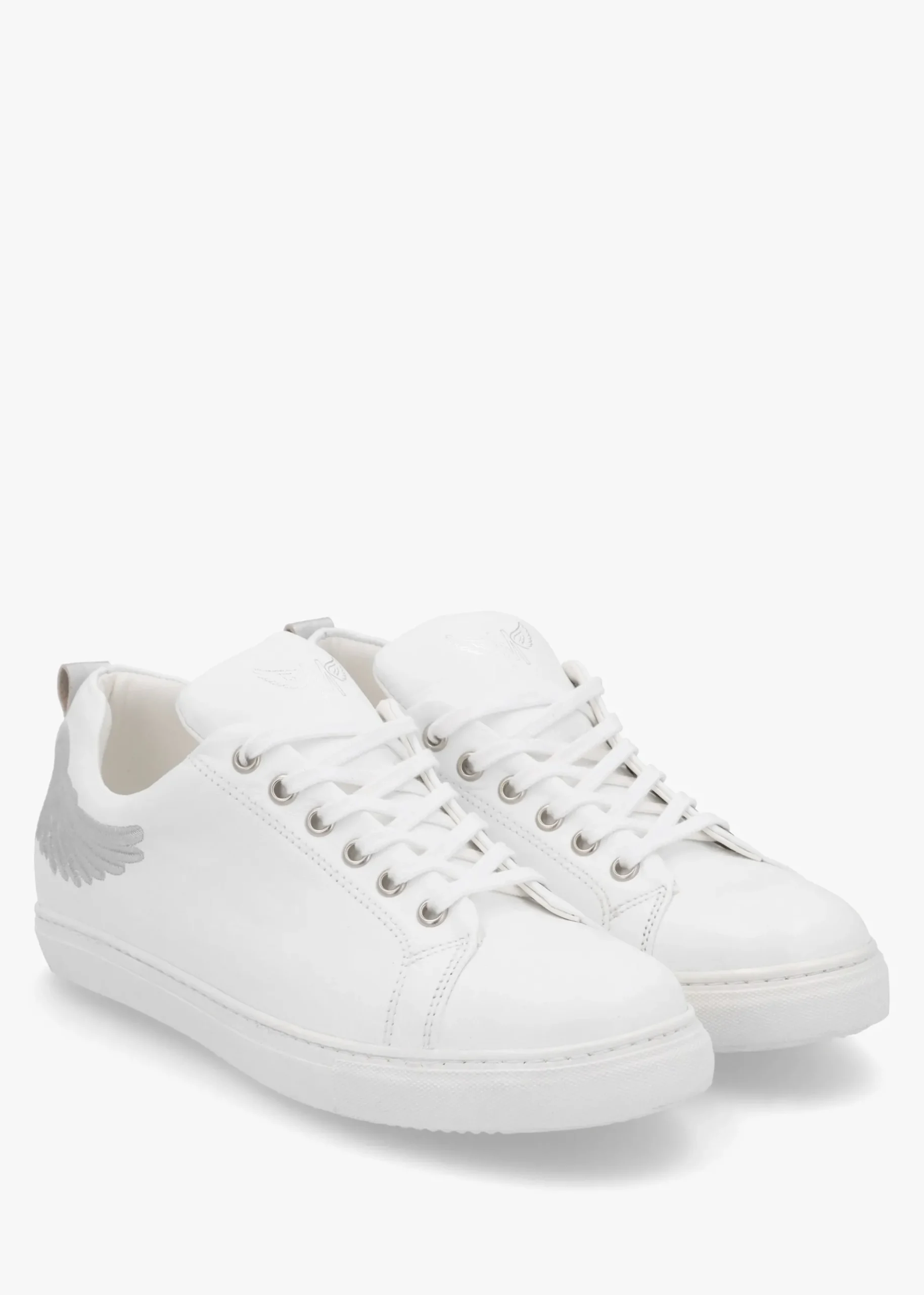 The ‘Angels Ease’ trainers are part of the New Season collection from Marté. This off-duty style is crafted from premium Italian soft nappa leather certified by the ‘Leather Working Group’ and features a comfy rubber sole. The lace system to the upper ensures the perfect fit. Embroidered wing design adds detail as well as contrasting silver pull tab and classic logo to the tongue. Signature Marté branding is seen to the foot-bed.