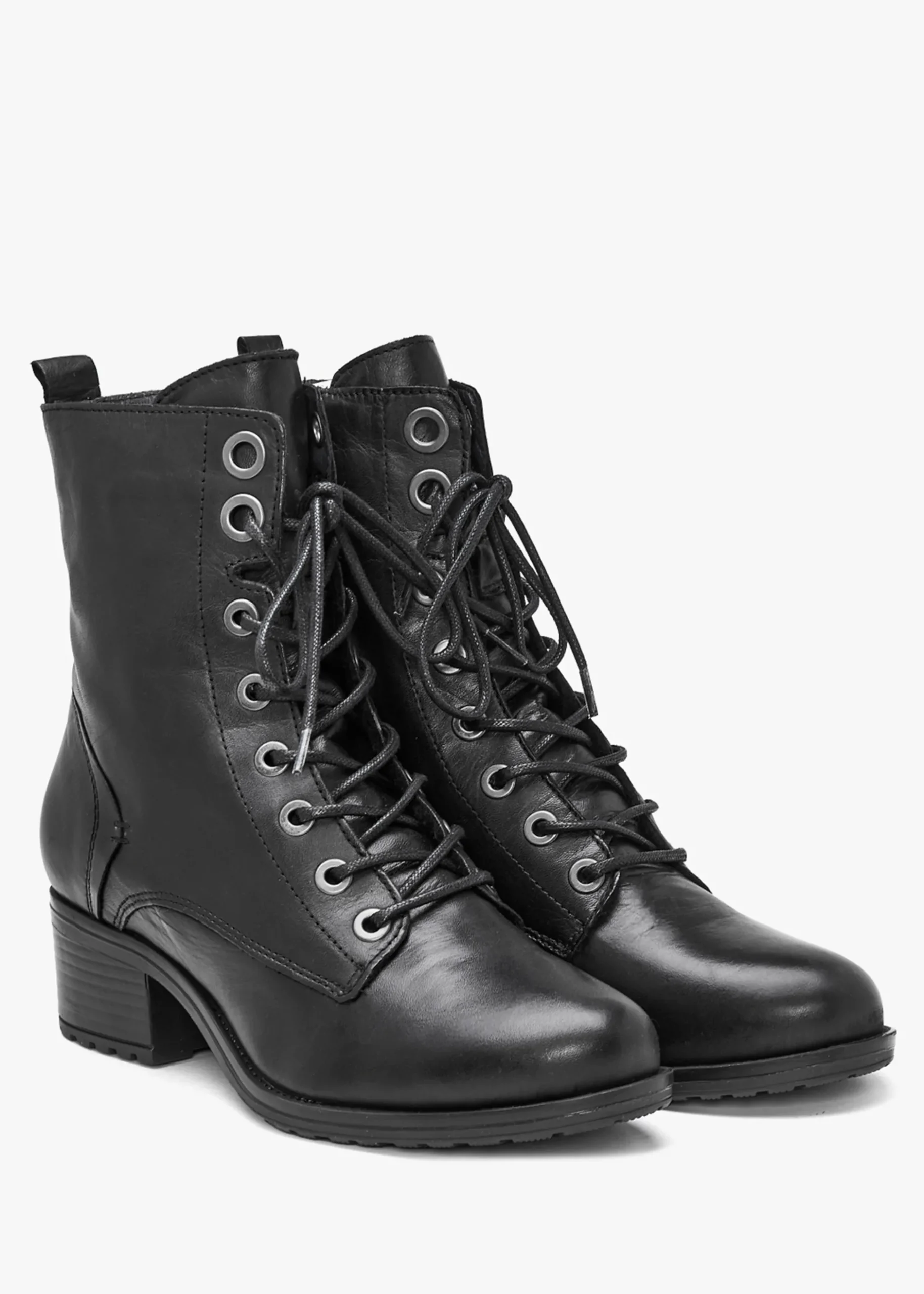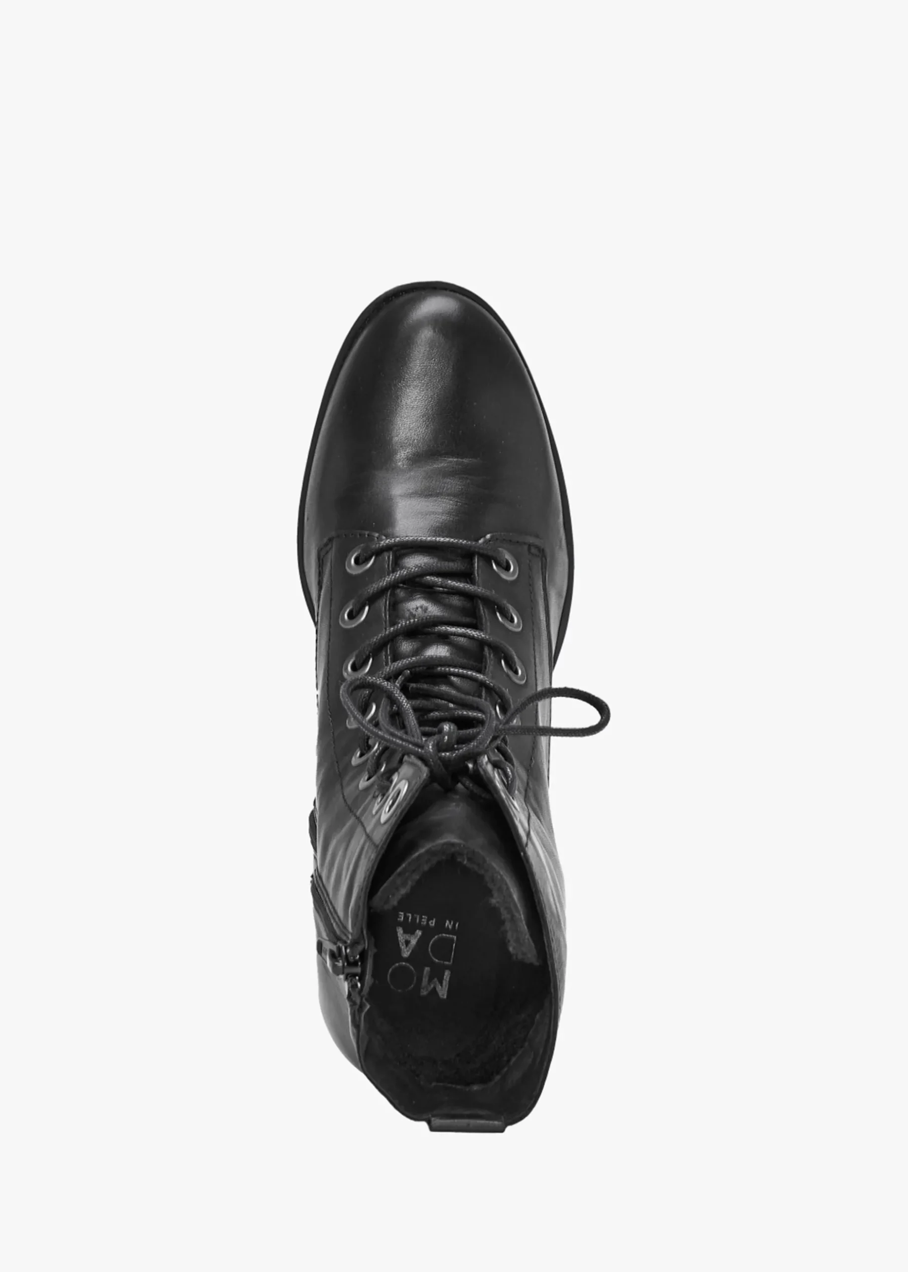 The ‘Bezzie’ ankle boots are part of the New Season from Moda In Pelle. This everyday style is crafted from a premium leather upper with part leather lining and a rubber sole. The inner side zip fastening creates an easy wear and the lace up upper ensures the perfect fit. Tonal top stitching and raised seaming add detail to the upper. The classic round toe and low block heel. Signature Moda In Pelle branding is seen to the foot-bed.