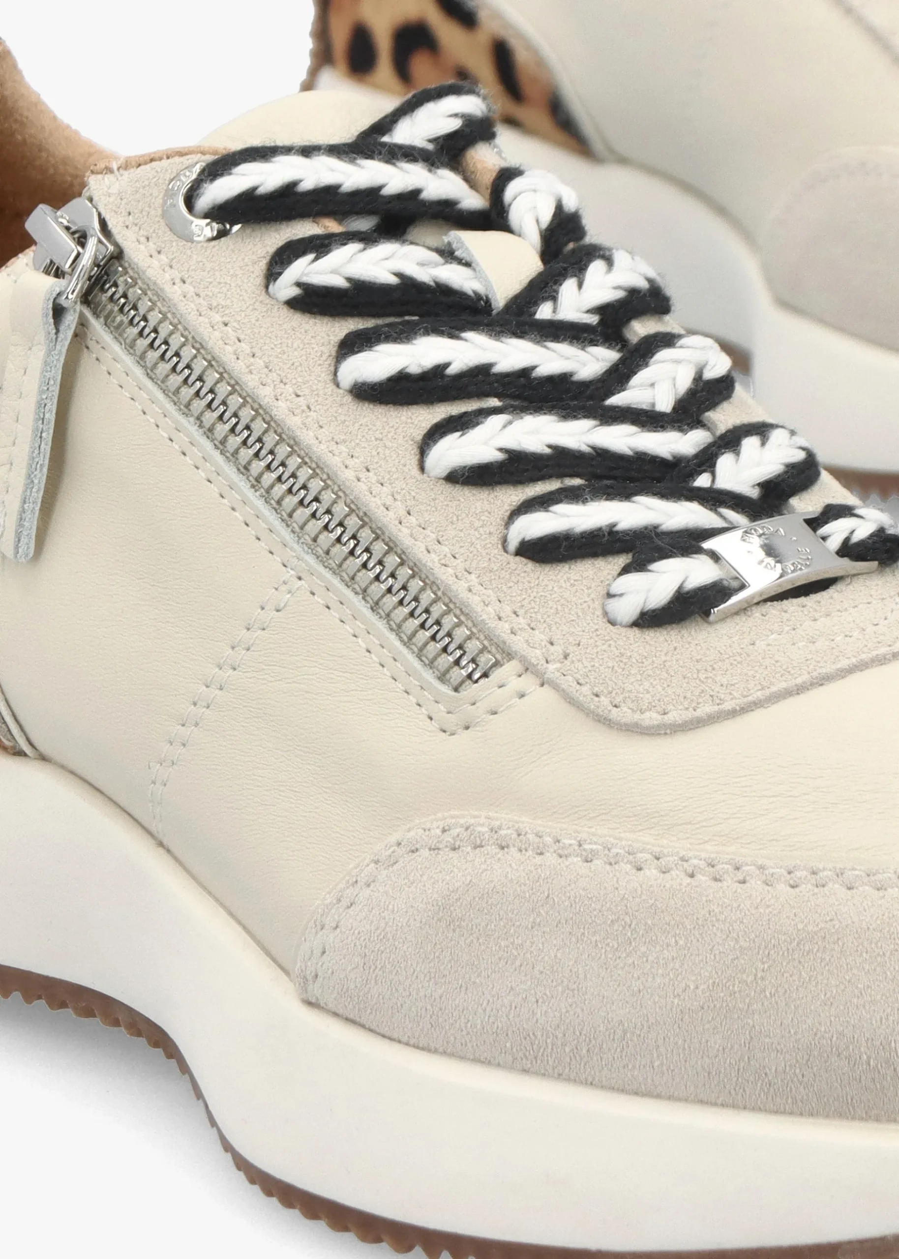 New from Moda In Pelle this Season the ‘Delphinea’ trainers. This fashion sporty style is crafted from a premium leather and suede upper with textile lining and a rubber sole. The lace up upper ensures the perfect fit and side zip fastening creates an easy wear. Contrasting leopard pony hair insert adds detail as well as pull tab and logo rivet to the ankle. Signature Moda In Pelle branding is seen to the footbed.