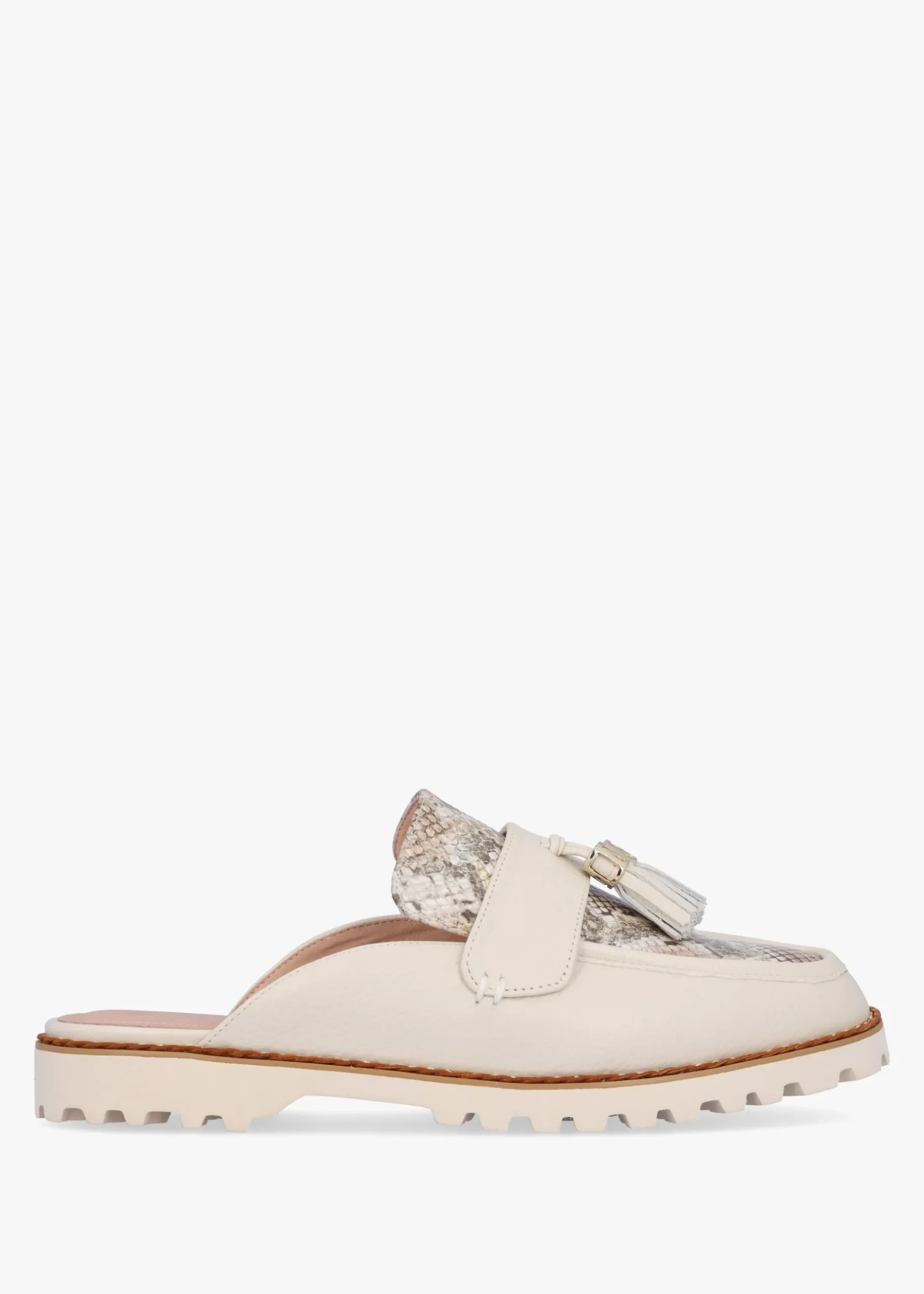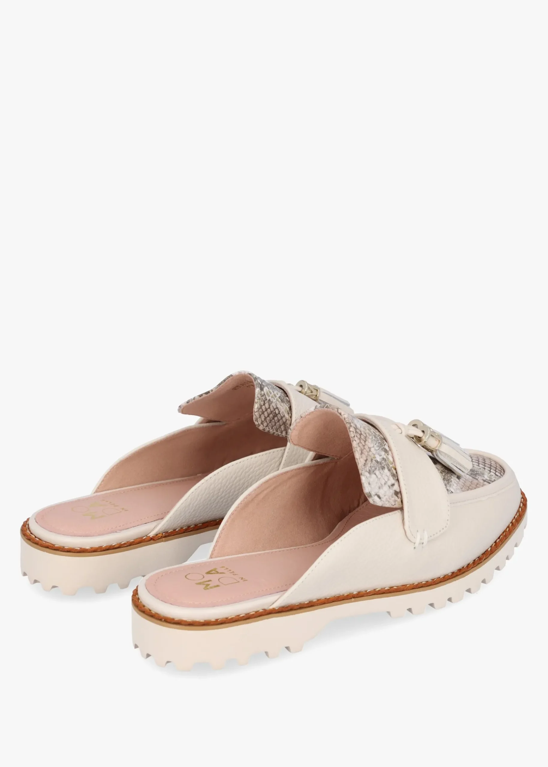 Add the ‘Etana’ backless loafers from Moda In Pelle to your New Season wardrobe. This Summer style is crafted from a premium tumbled leather upper with part leather lining and a comfy tracked rubber sole. An easy to wear slip on backless style. Tassel adds detail to the upper as well as contrasting reptile insert. Signature Moda In Pelle branding is seen to the foot-bed and sole.