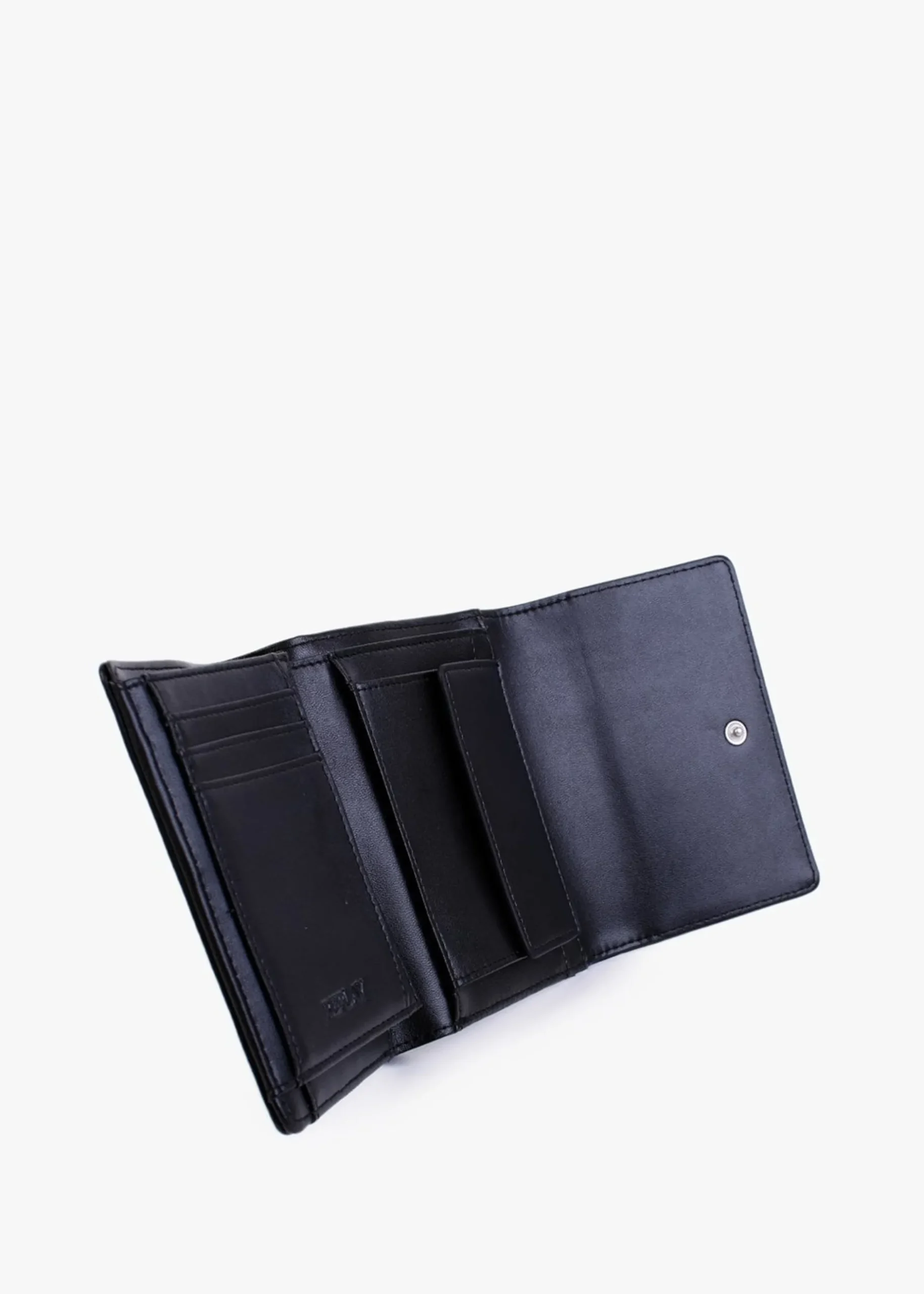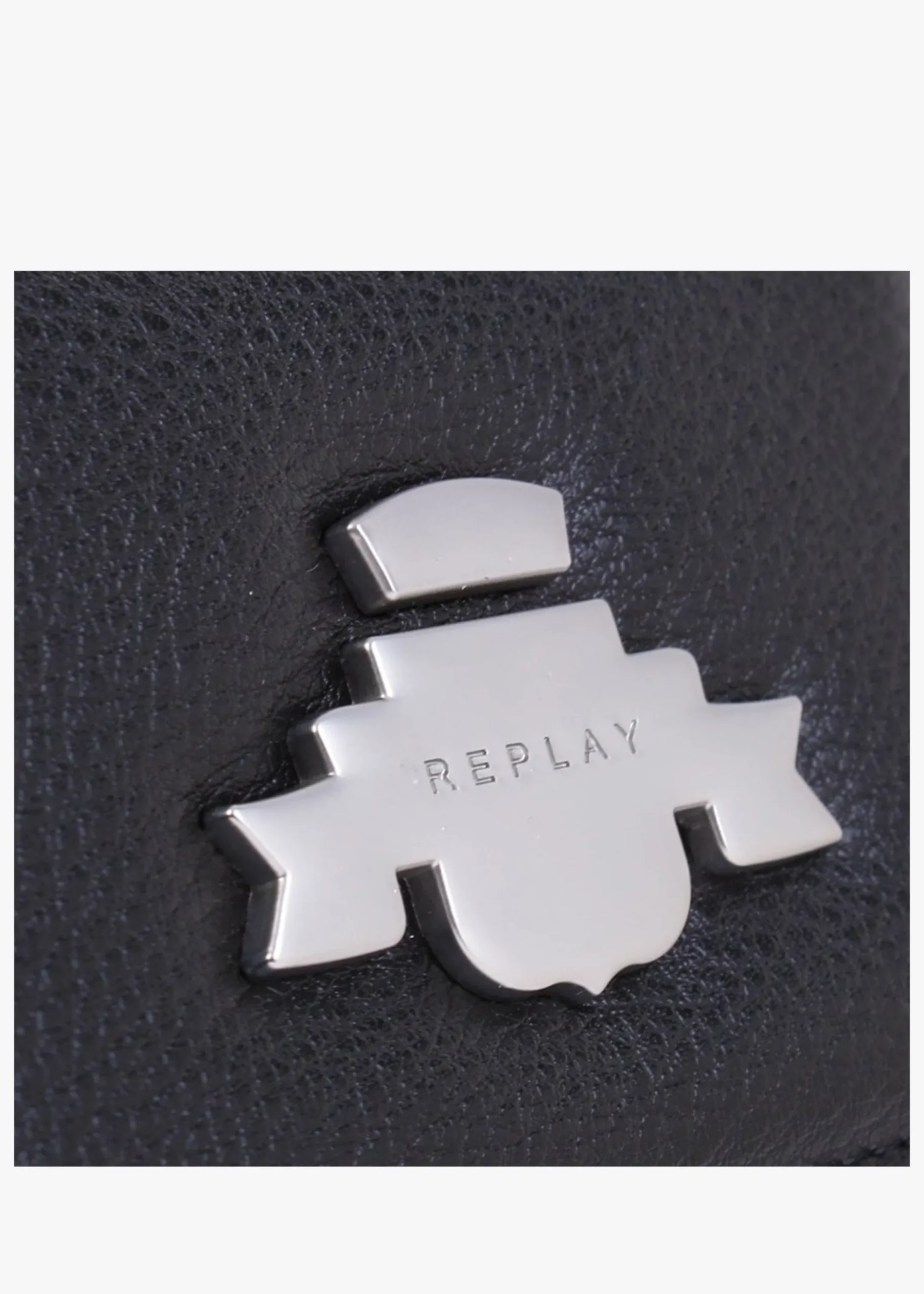 Keep all your coins notes and cards in check this New Season with this ‘Trifold’ wallet from Replay. This everyday accessory is crafted from a premium PU with silver tone hardware. The secure adjustable popper front flap fastening reveals multiple compartments. Embossed hardware adds detail to the front of the wallet. Signature Replay branding is seen throughout.