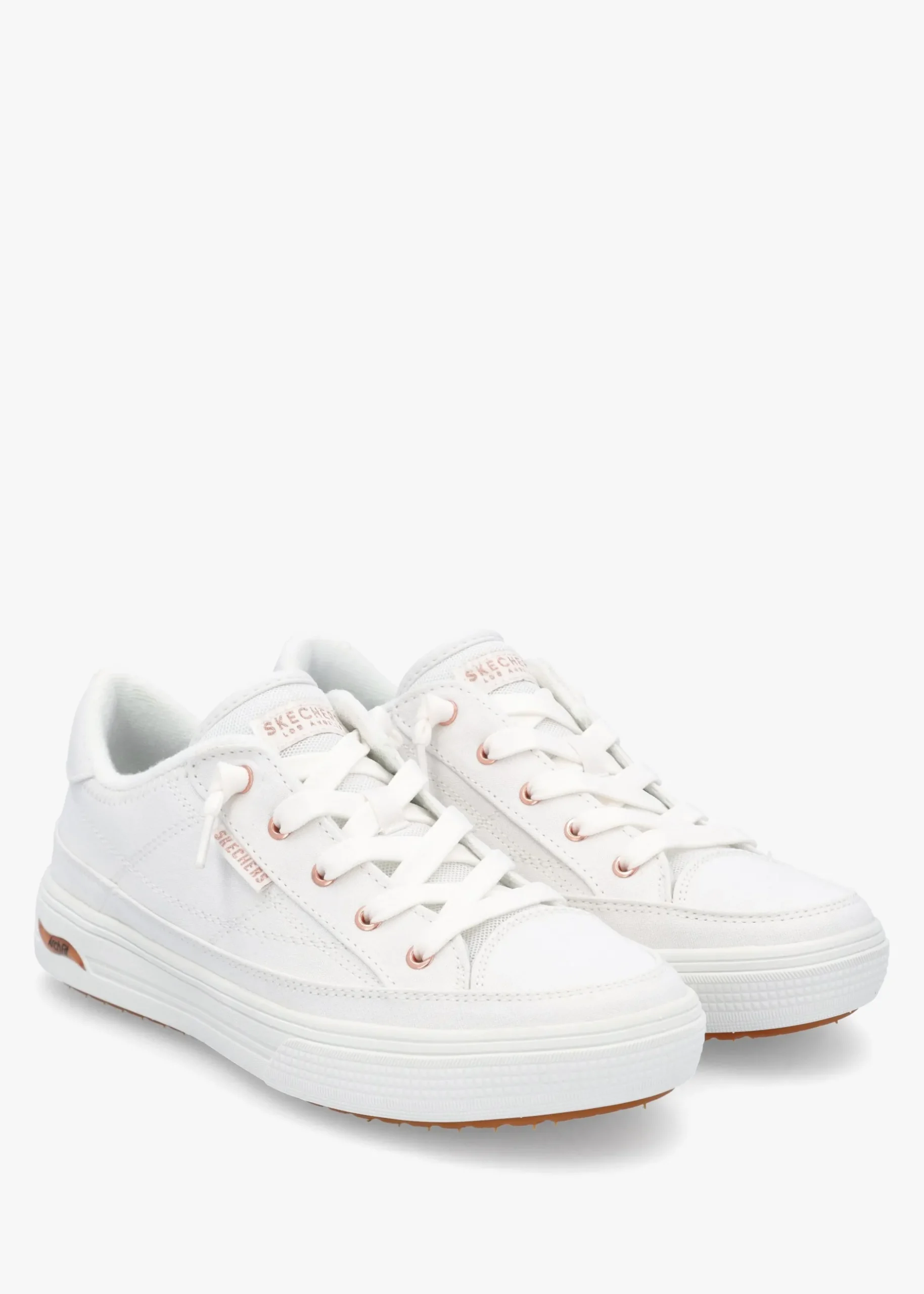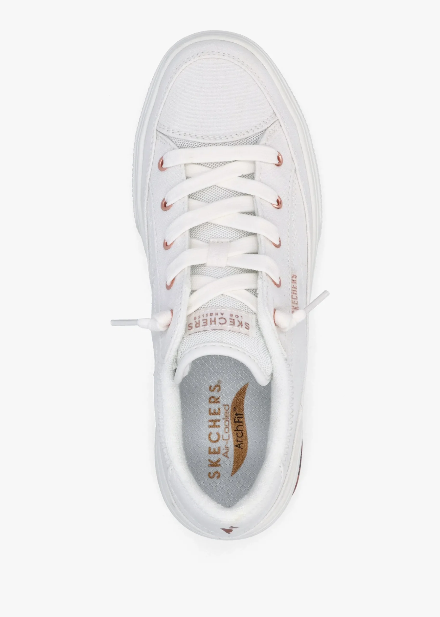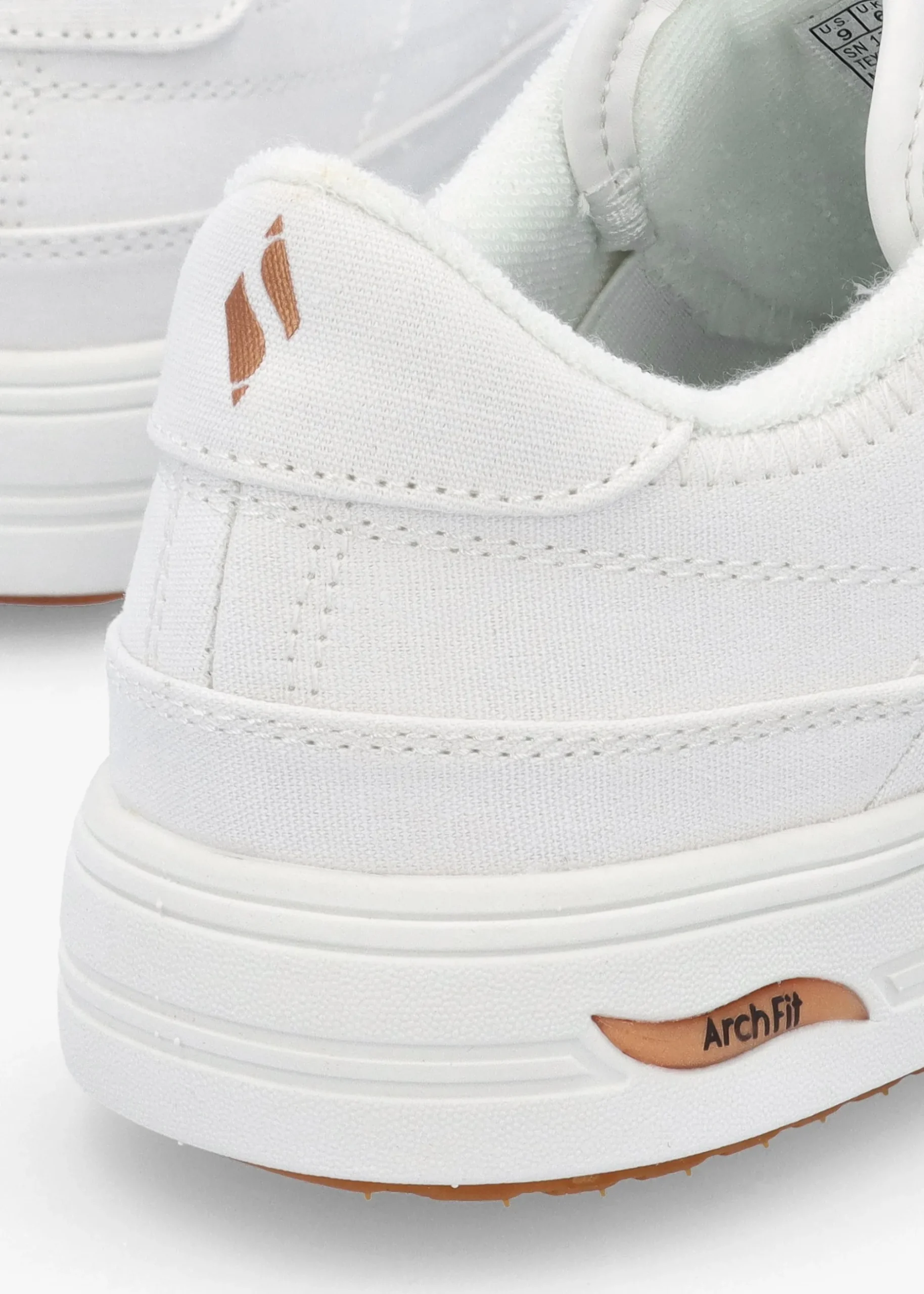 Add the women’s ‘Vegan Arch Fit Meet Ya There’ trainers from Skechers® to your off-duty wardrobe. This New Season style is crafted from a premium canvas upper with lightweight cushioned midsole, Arch Fit® removable insole and a flexible traction sole. An easy to wear slip on style featuring No Tie Fit™ laces. Signature Skechers® branding is seen throughout.