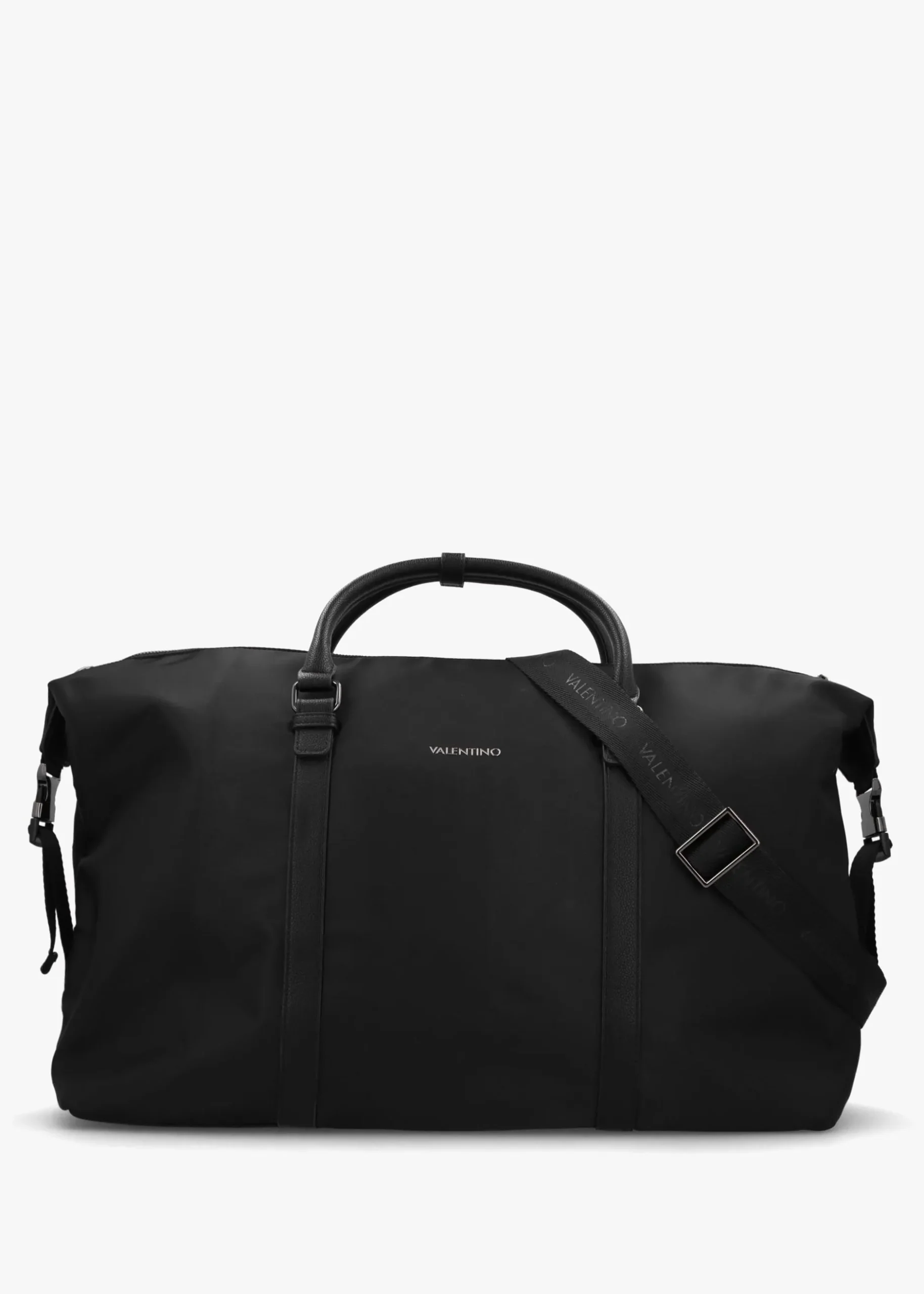 The large men’s ‘Infinity’ duffle bag from Valentino is the perfect weekend away bag. This New Season style is crafted from premium nylon with PU and webbed logo trim. The secure top zip fastening reveals the spacious main compartment with handy inner zip and slot pockets, exterior zip pocket also features. Carry by the top handles or the detachable webbed logo strap. Clip fastening sides add detail. Signature Valentino branding is seen throughout.