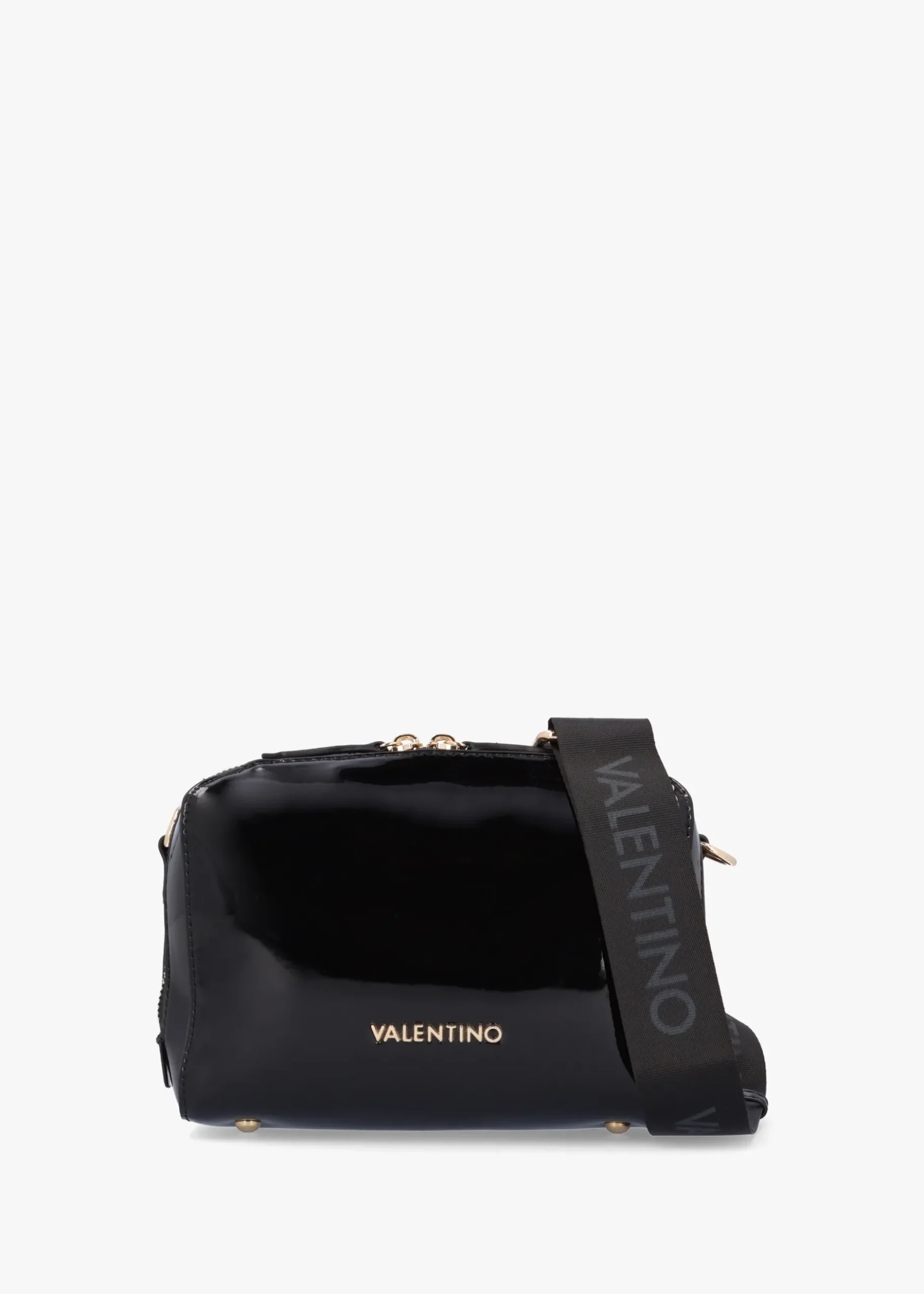 The ‘Pattie’ camera bag is part of the New Season collection from Valentino. This everyday style is crafted from premium patent PU with gold tone accents. The secure top zip fastening reveals the main compartment with handy inner zip and slip pocket, exterior slip pocket also features. Carry by the detachable logo webbed strap on the shoulder or across the body. Signature Valentino branding is seen throughout.