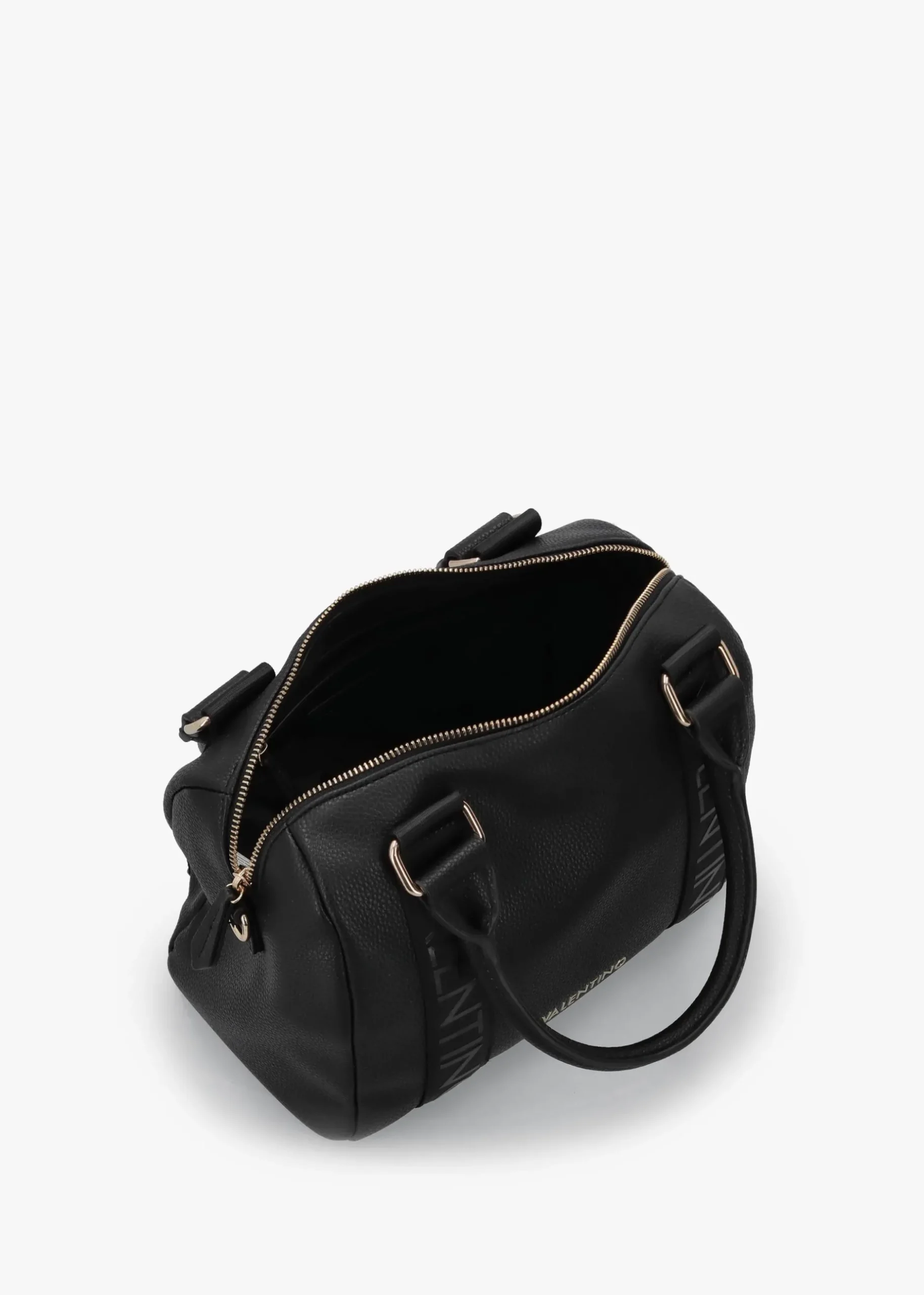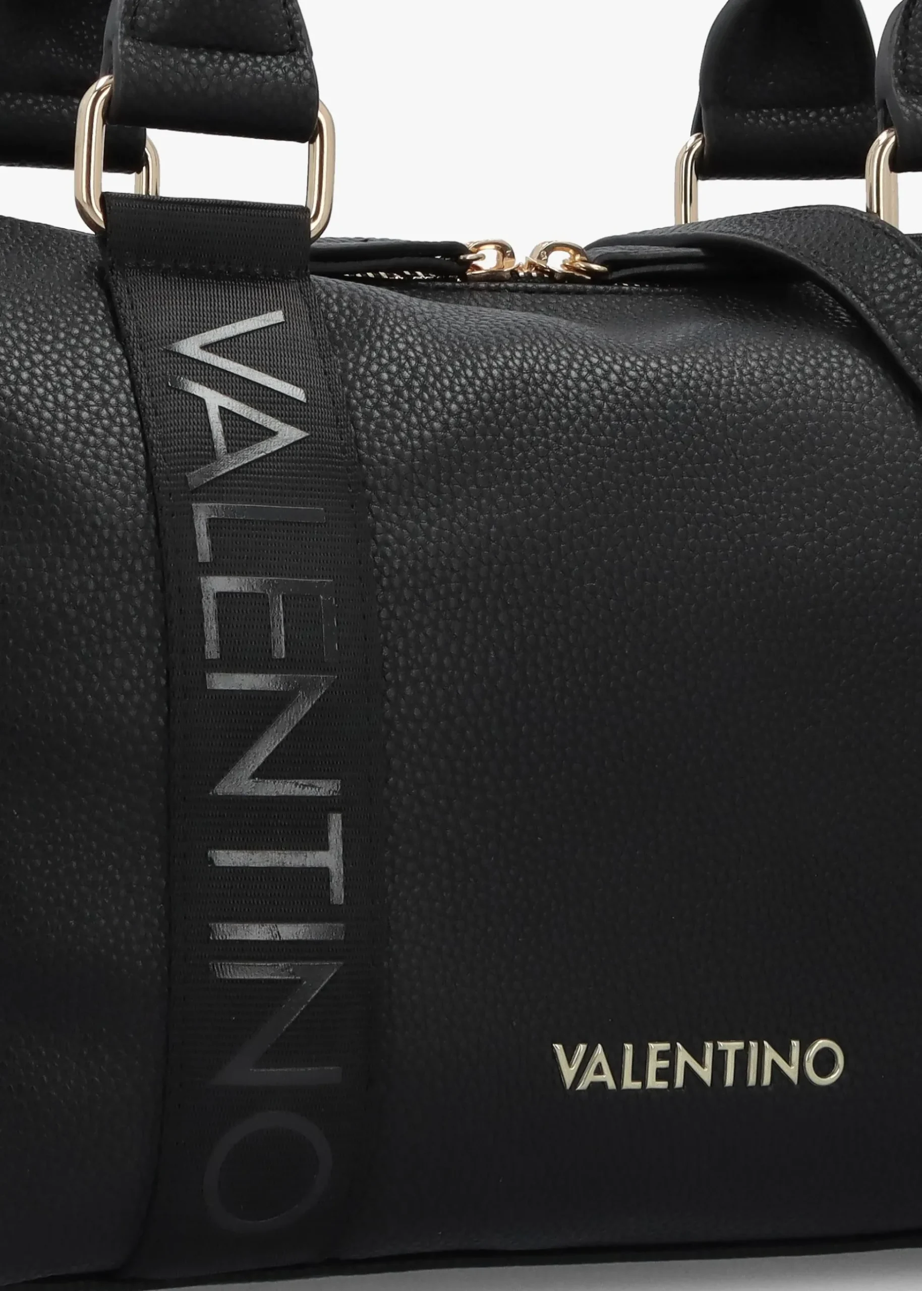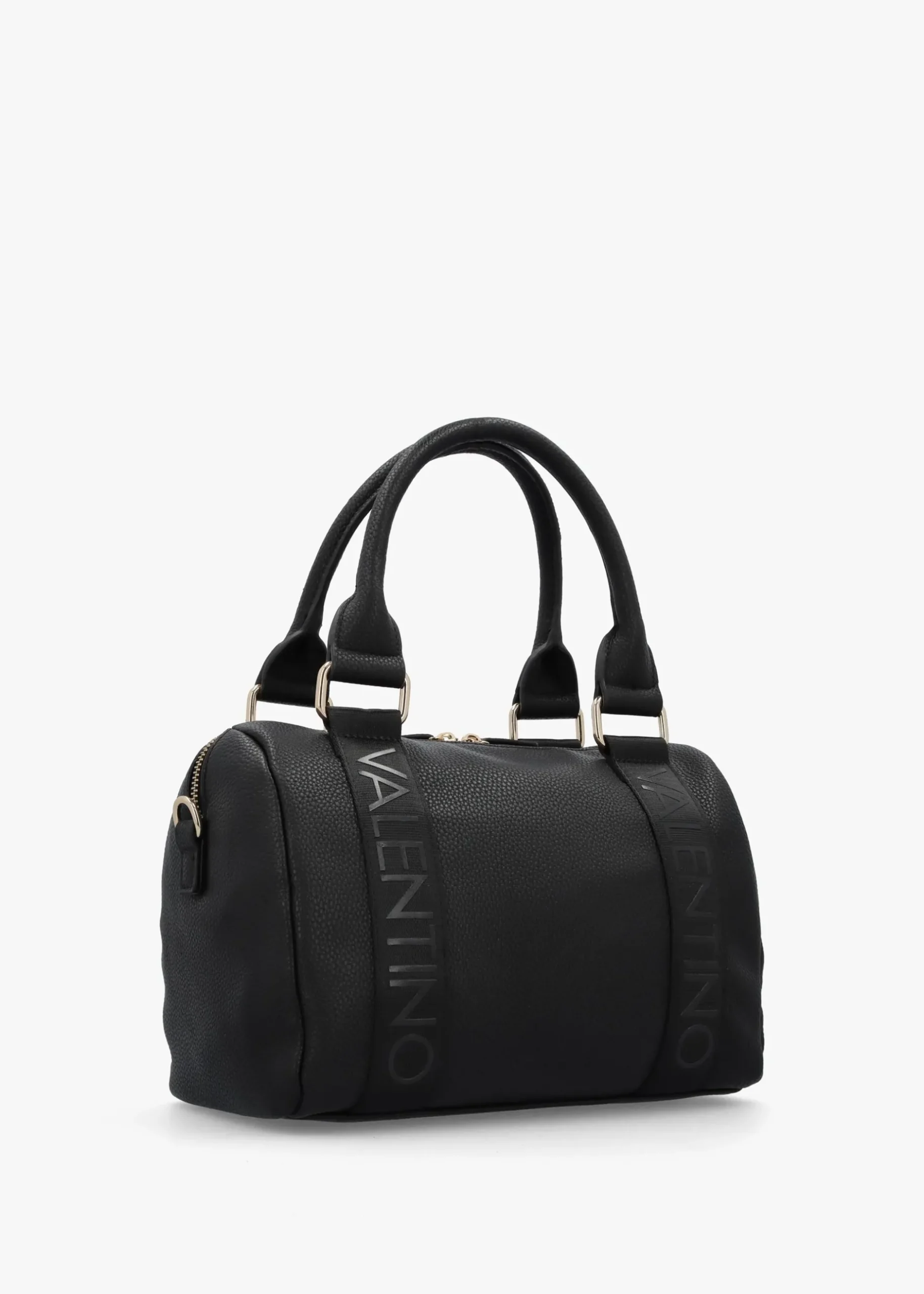Add the ‘Twig’ barrel bag from Valentino to your bag collection. This New Season carryall style is crafted from premium pebbled PU made from part recycled materials with polished gold tone accents. The secure top zip fastening reveals the single main compartment and features handy inner zip and slot pockets for all your smaller essentials. Tonal webbed logo detail features both front and back of the bag. Signature Valentino branding is seen throughout.