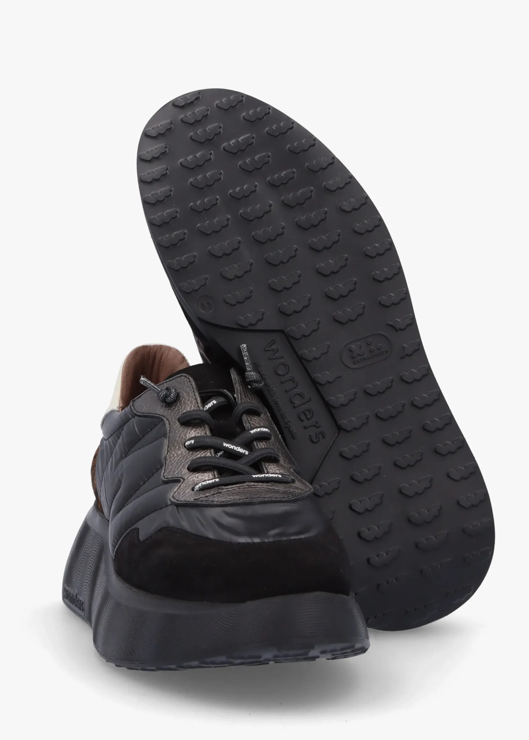 Add the New Season women’s ‘Roma’ trainers from Wonders to your off-duty wardrobe. This casual style is crafted from a premium leather, suede and nylon upper with leather lining and an extra light but chunky rubber sole. An easy to wear slip on style featuring elasticated laces to the upper. Signature Wonders branding is seen throughout.