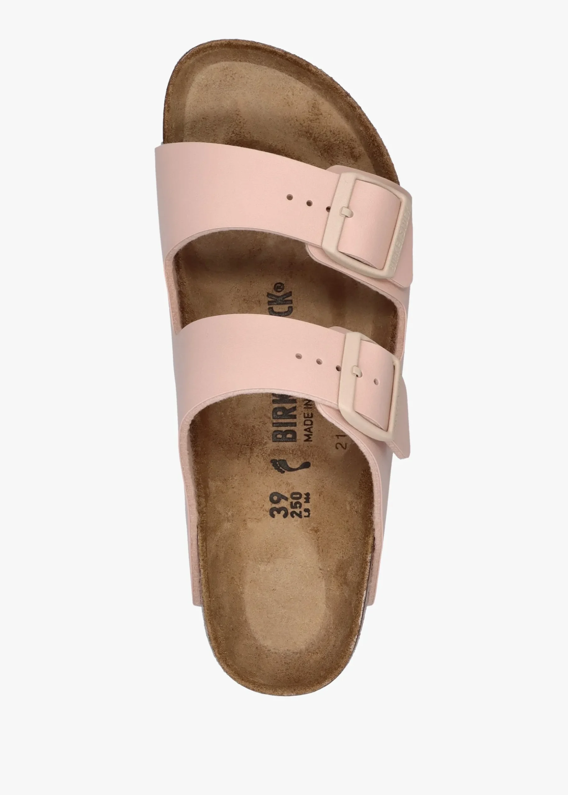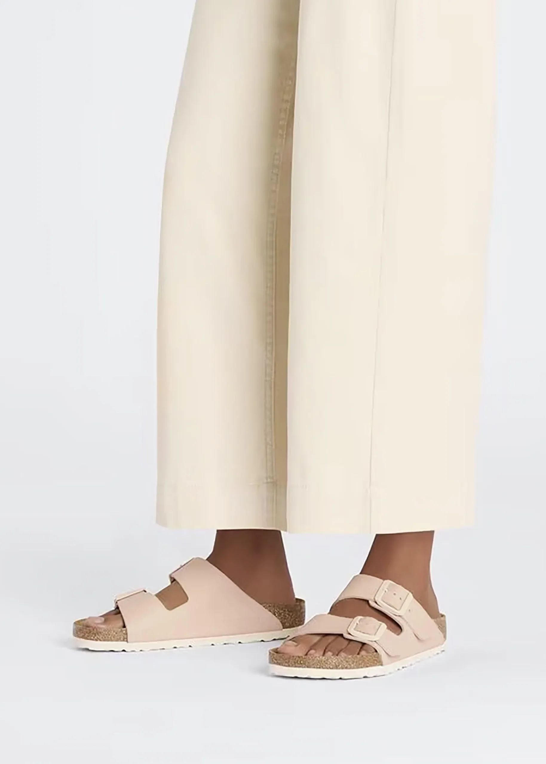 The women’s ‘Arizona’ mules from Birkenstock are a fashion staple. This classic style is crafted from the skin-friendly, hard-wearing synthetic material Birko-Flor®, with leather insole and an EVA sole. The cork footbed has been contoured to conform to the shape of your foot – with arch support and an extra layer of cushioning for optimum comfort. An easy to wear slip on mule featuring two strap upper with classic ‘Birkenstock’ branded buckle fastening. Signature Birkenstock branding is seen throughout.