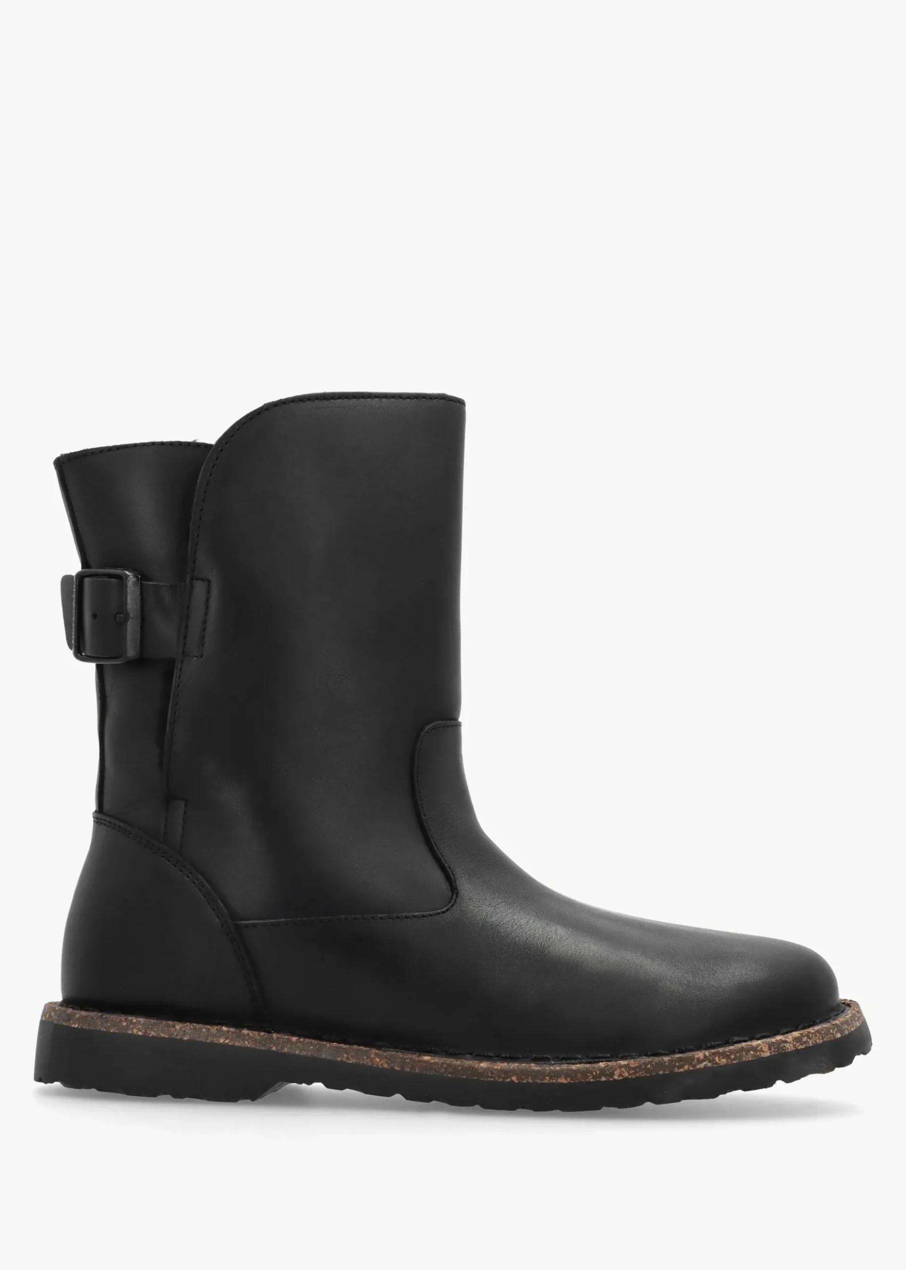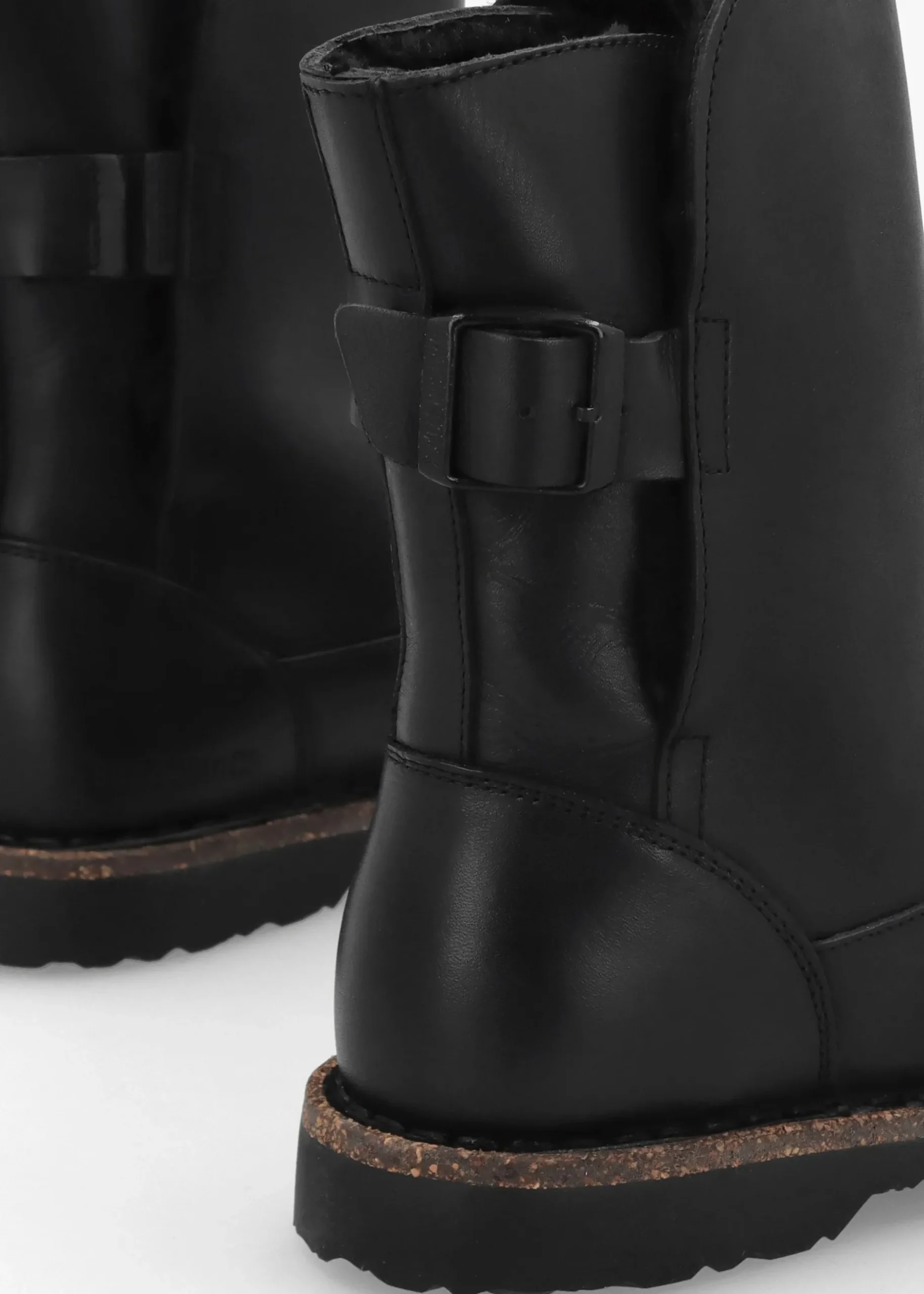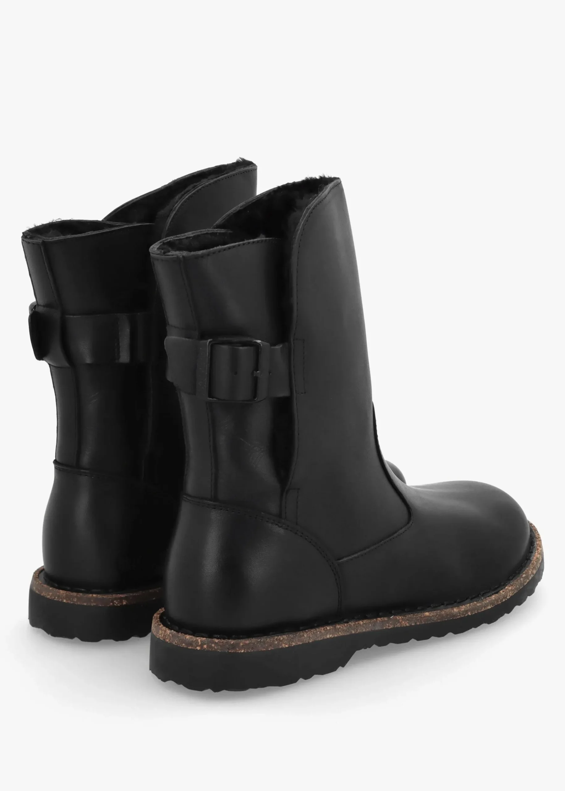 New from Birkenstock this Season the women’s ‘Uppsala’ boots. This perfect Winter style is crafted from a premium leather upper with cozy shearling lining, removable anatomically shaped cork-latex footbed and a light synthetic sole. An easy to wear pull on style featuring adjustable logo adorned buckle fastening strap. Signature Birkenstock branding is seen throughout.