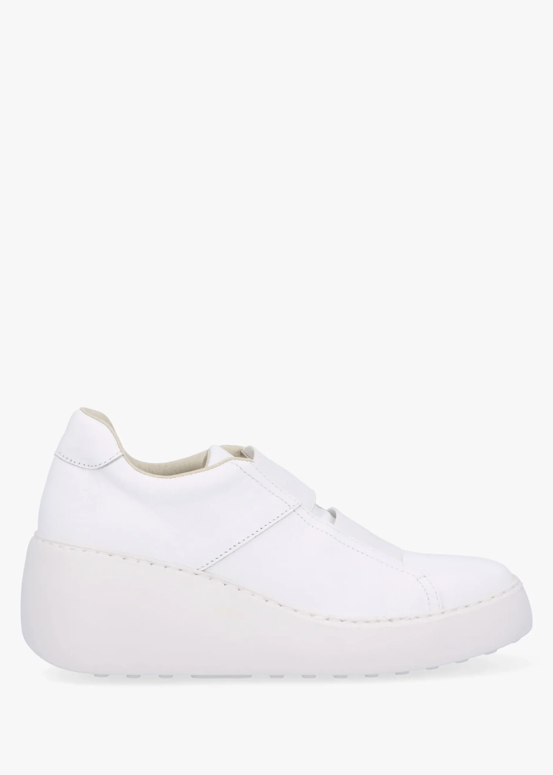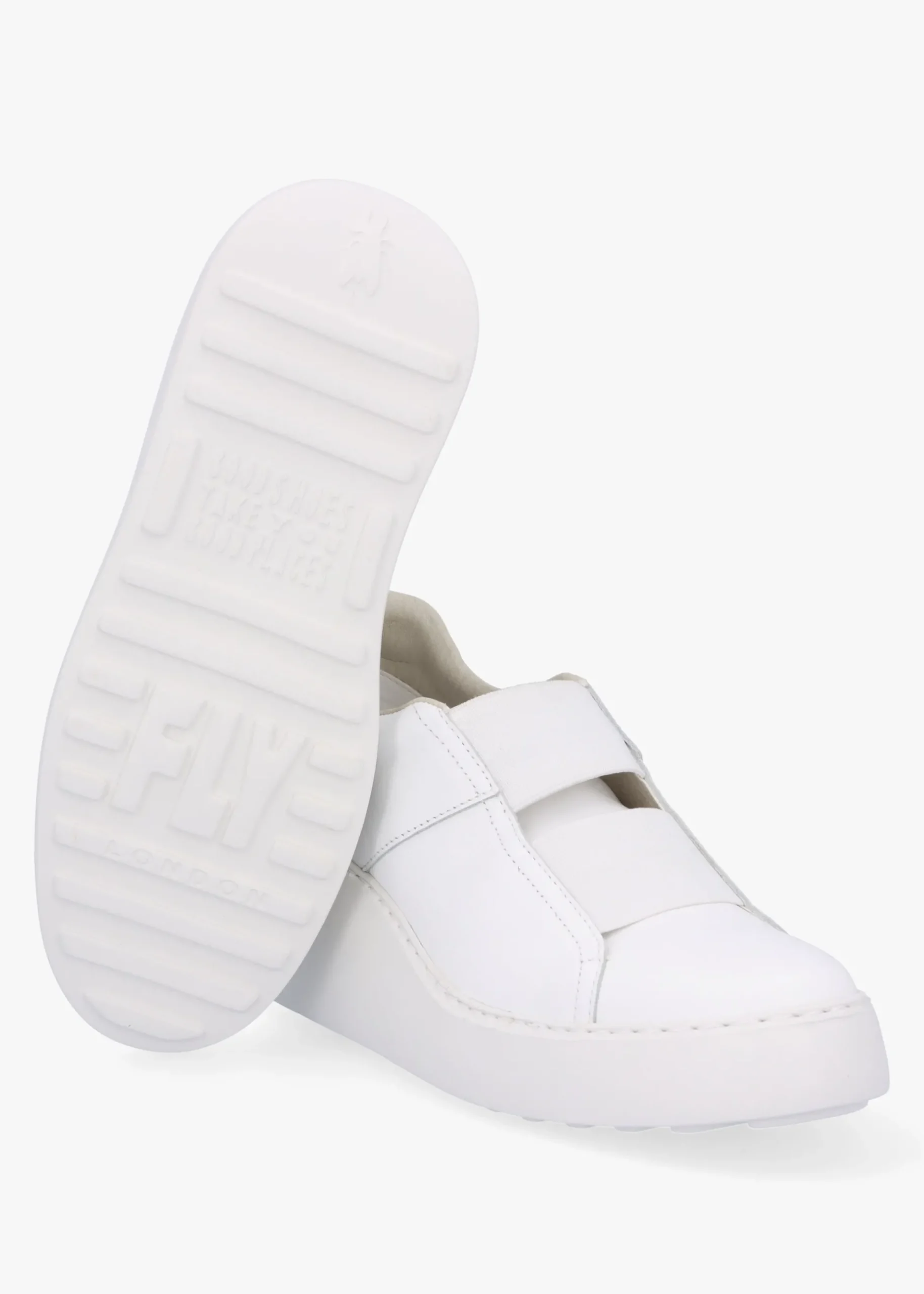 The ‘Dito II’ trainers from Fly London are a fashion sporty style and a welcome addition to your off-duty wardrobe. This New Season style is crafted from premium leather with part leather lining and rubber sole. The round toe and wedge sole make up the silhouette. An easy to wear slip on style featuring elasticated inserts to the upper. Classic embossed logo adds detail. Signature Fly London branding is seen throughout.