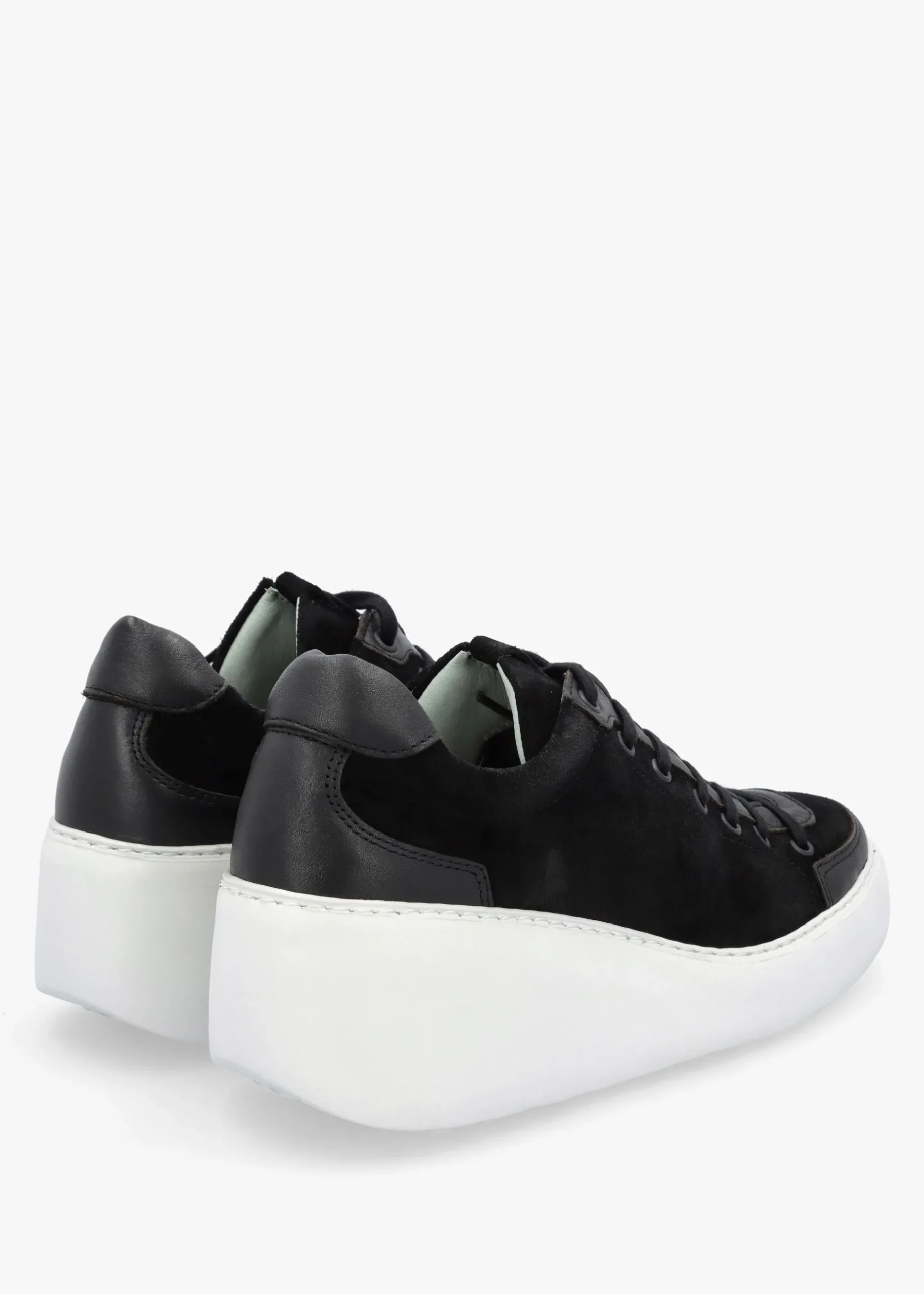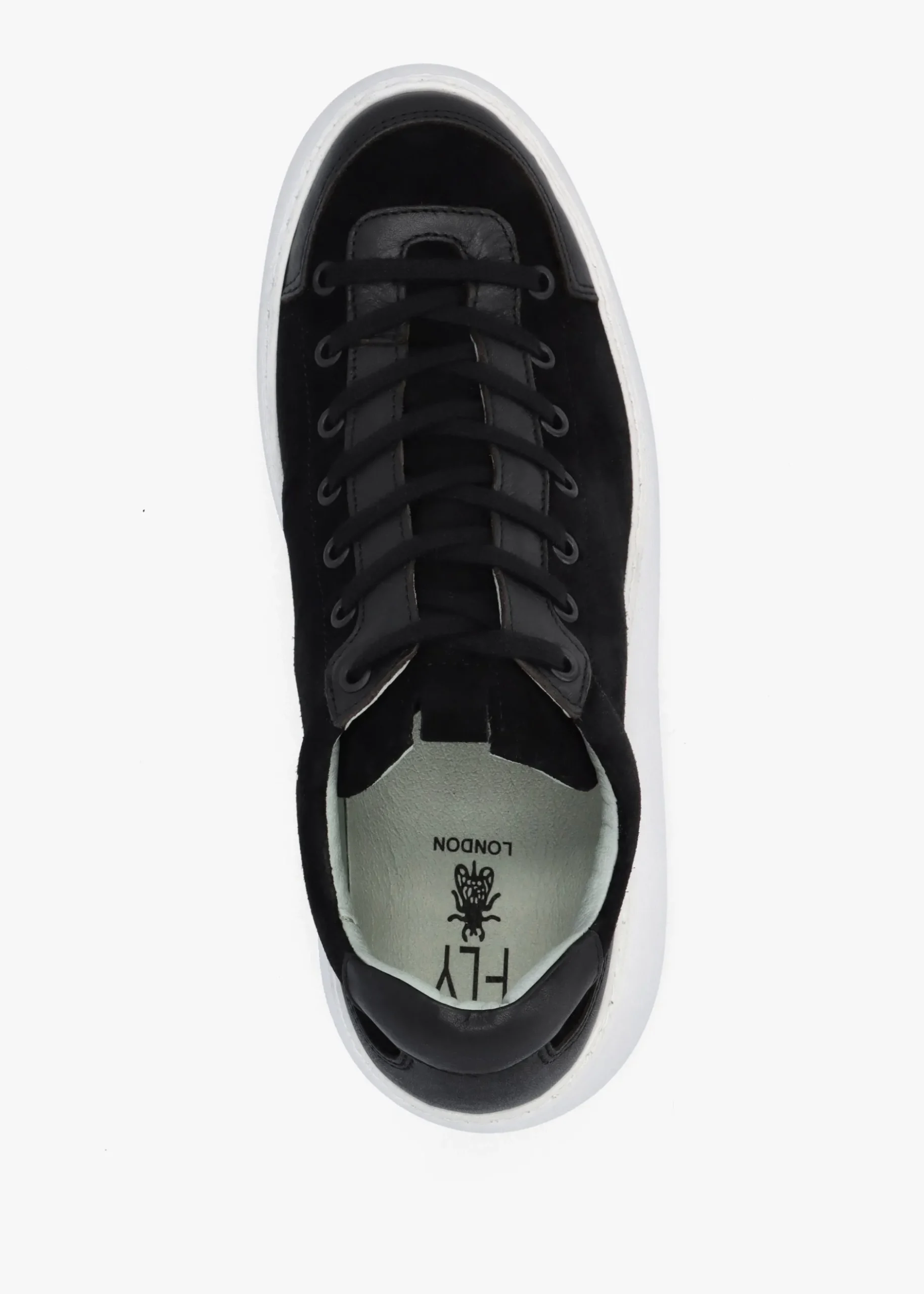 The ‘Dufy’ wedge trainers from Fly London are a fashion sporty style. These New Season trainers are crafted from a premium suede upper with contrasting leather trim, leather lining, cushioned footbed and a rubber sole. The lace up upper ensures the perfect fit. Classic debossed ‘Fly’ logo adds detail. Signature Fly London branding is seen to the footbed and sole.