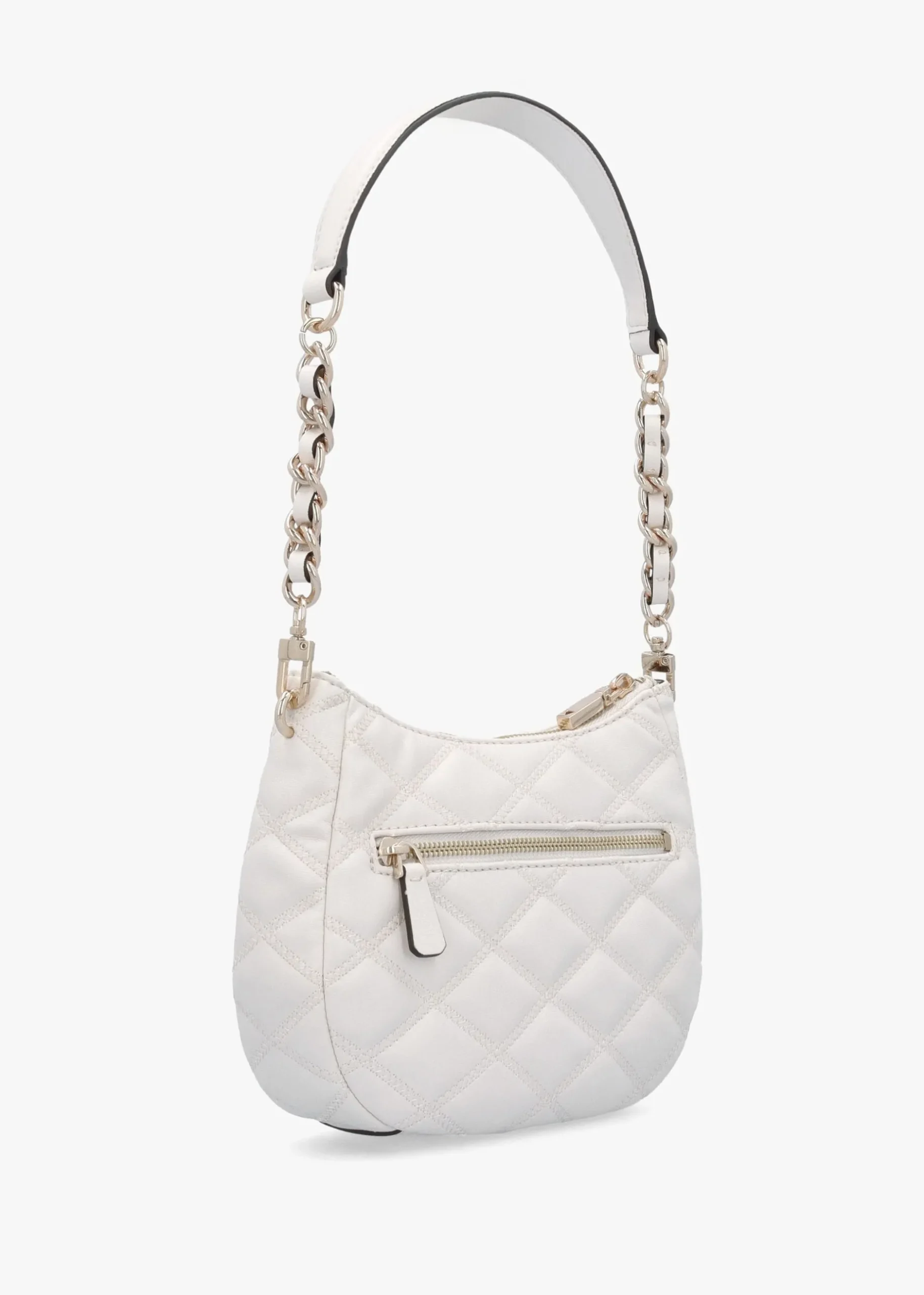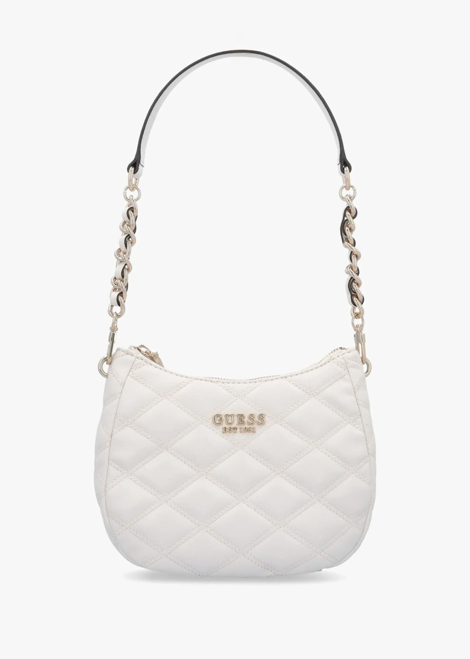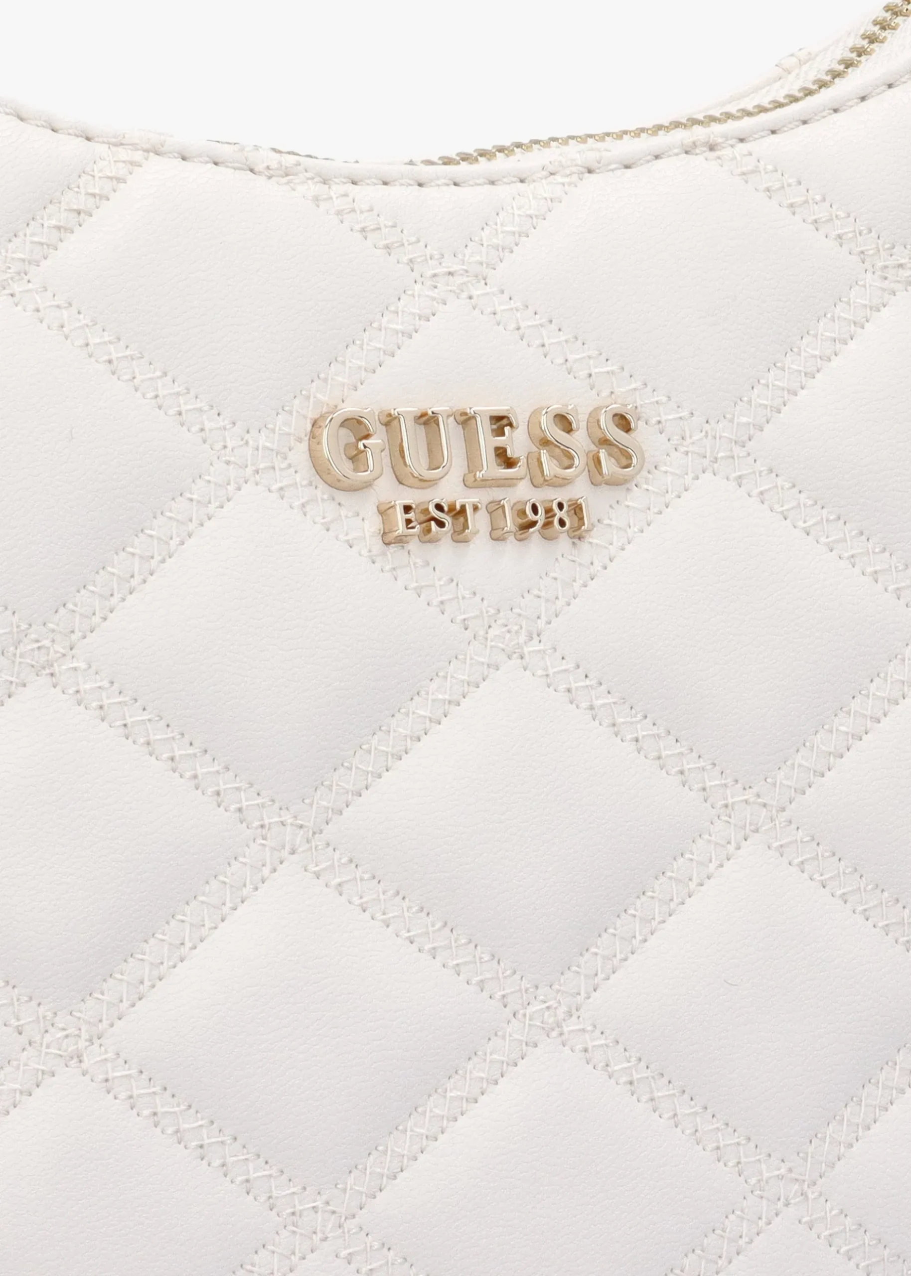 New from GUESS this Season the ‘Tamsin’ shoulder bag. A versatile day to night style crafted from premium PU in a classic quilted design with logo lining and polished gold tone accents. The secure top zip fastening reveals the single main compartment with handy inner zip and slot pockets; exterior zipper pocket also features. Carry by the shoulder strap. Signature GUESS branding adds detail throughout.
