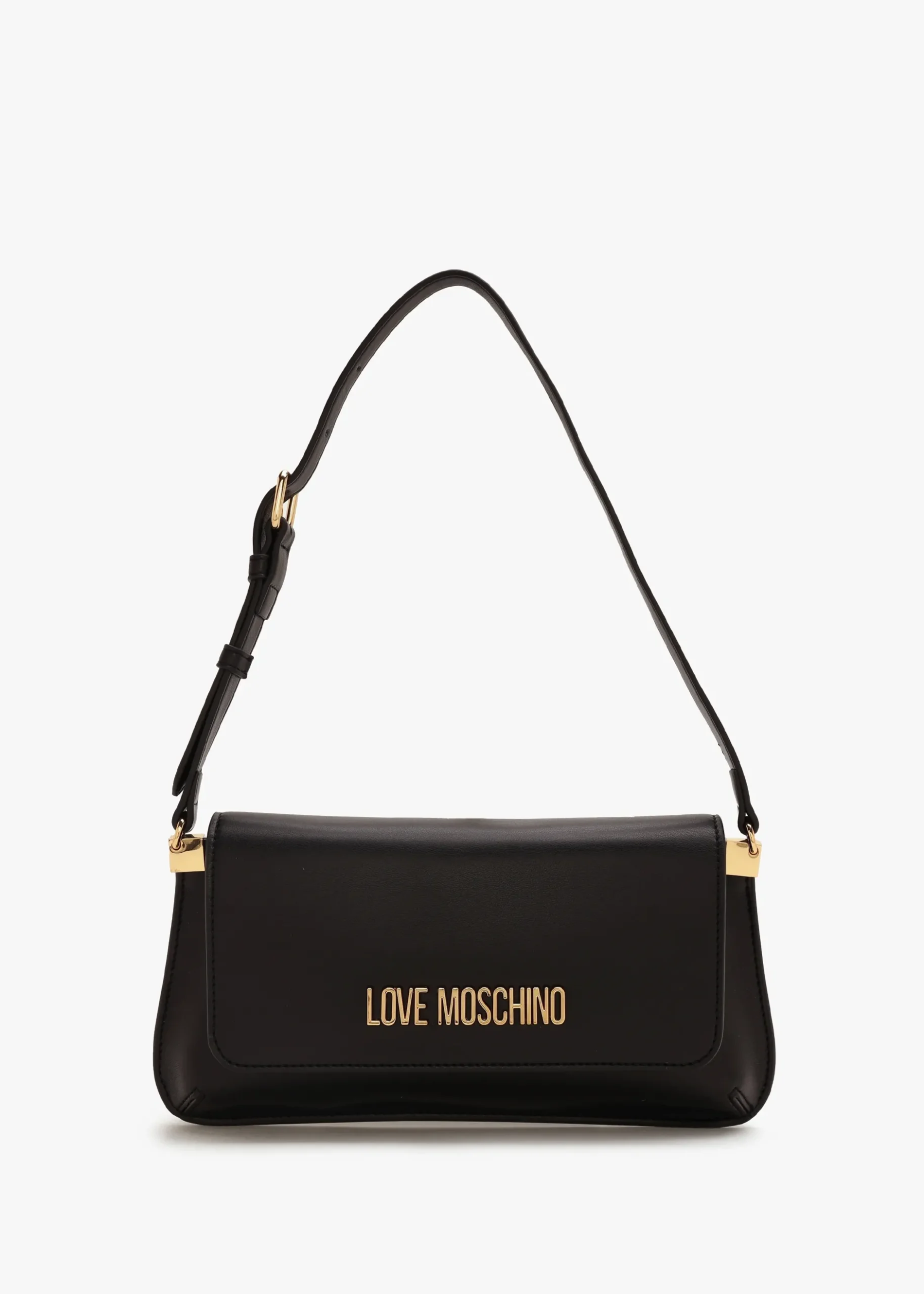 Add the ‘Logo Daily’ shoulder bag from Love Moschino to your handbag collection. This New Season style is crafted from premium smooth PU with polished gold tone accents. The secure magnetic snap front flap reveals the single main compartment with handy inner slot pocket. Carry by the adjustable Pu strap on the shoulder. Signature Love Moschino branding is seen throughout.