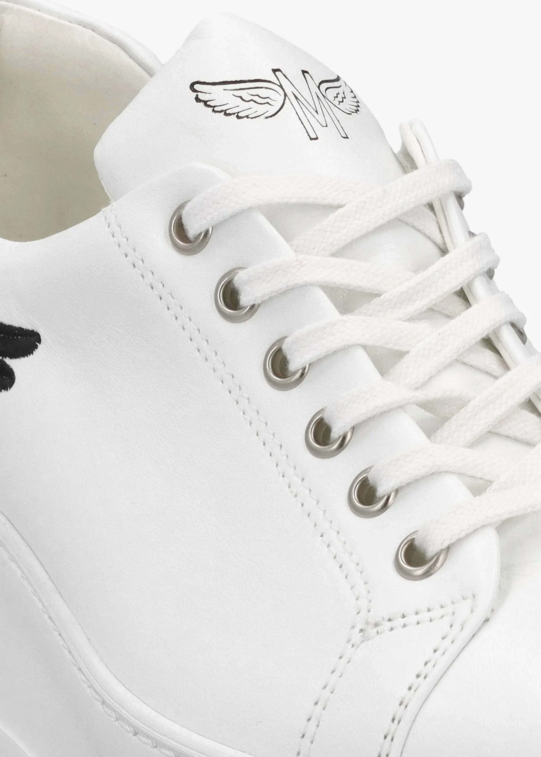 The ‘Angels Rise’ trainers are part of the New Season collection from Marté. This off-duty style is crafted from premium Italian soft nappa leather certified by the ‘Leather Working Group’ and features an extra light rubber flatform sole. The lace up system ensures the perfect fit. Embroidered wing design adds detail as well as contrasting pink pull tab and classic logo to the tongue. Signature Marté branding is seen to the foot-bed.
