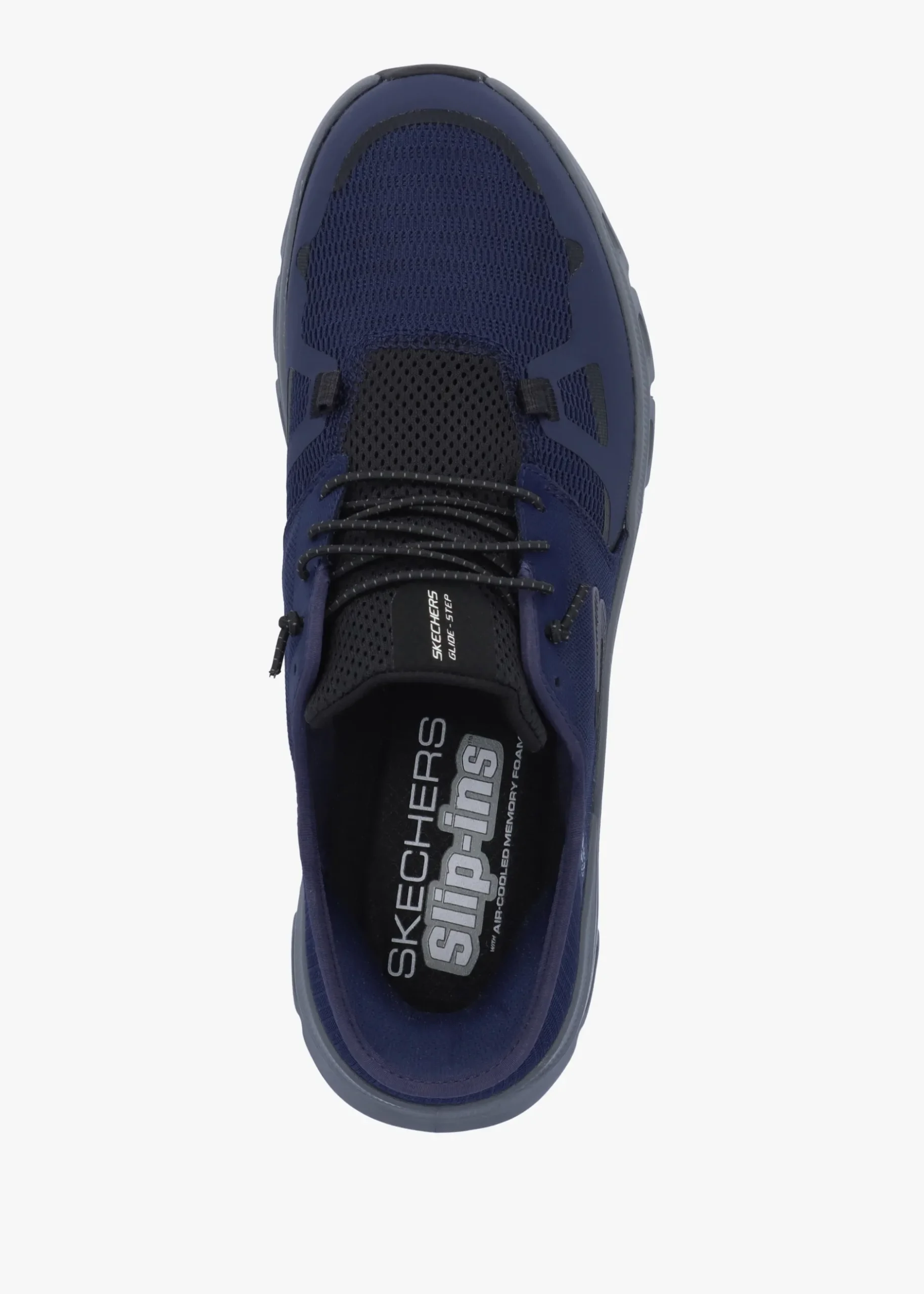 Add the men’s ‘Slip Ins Glide-Step Pro’ trainers from Skechers® to your off-duty wardrobe. This vegan style is crafted from an engineered knitted upper with Skechers® exclusive heel pillow™, Skechers® air-cooled memory foam® insole and a glide-step® midsole. The stretch laces create an easy wear. Signature Skechers® branding is seen throughout.