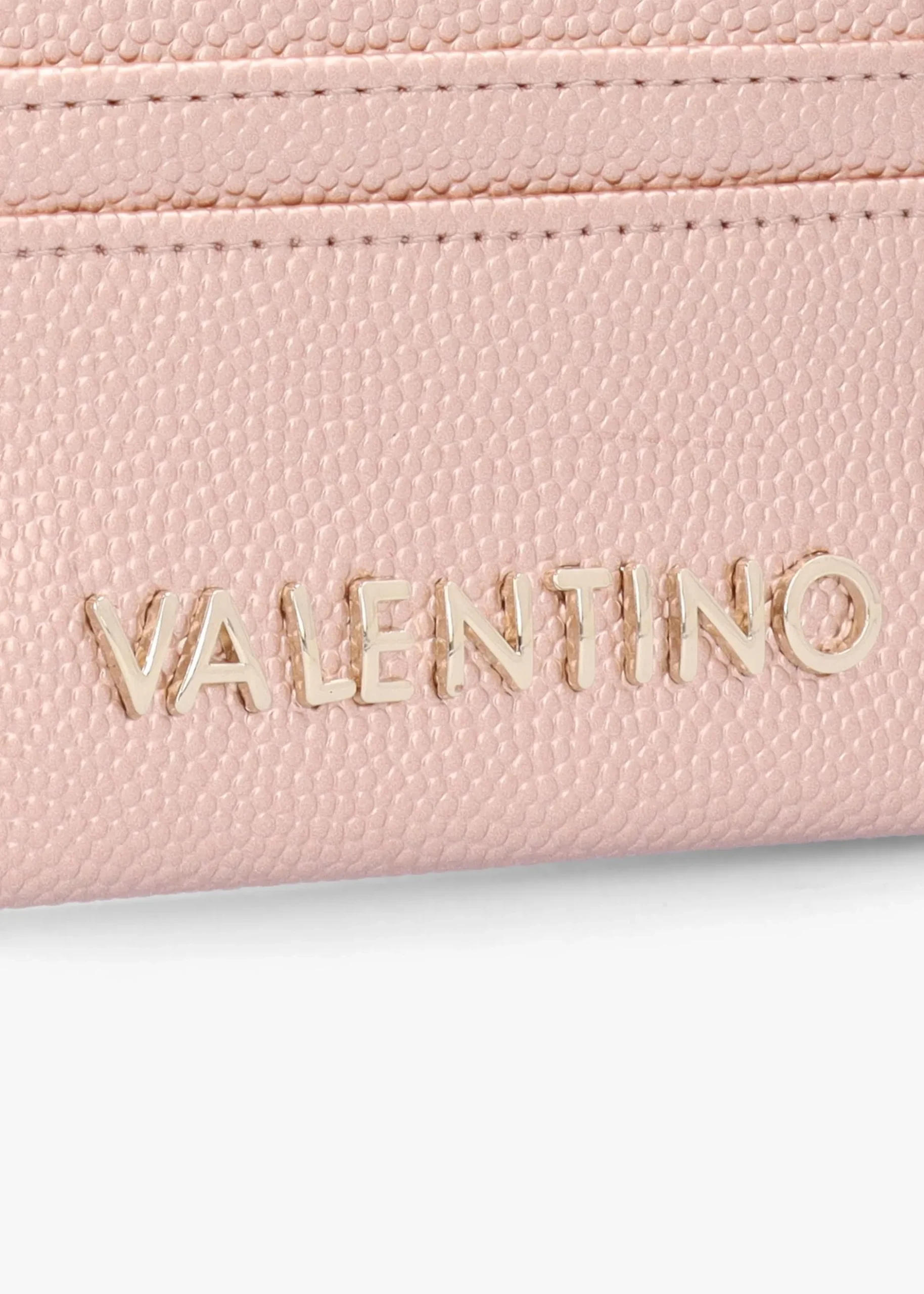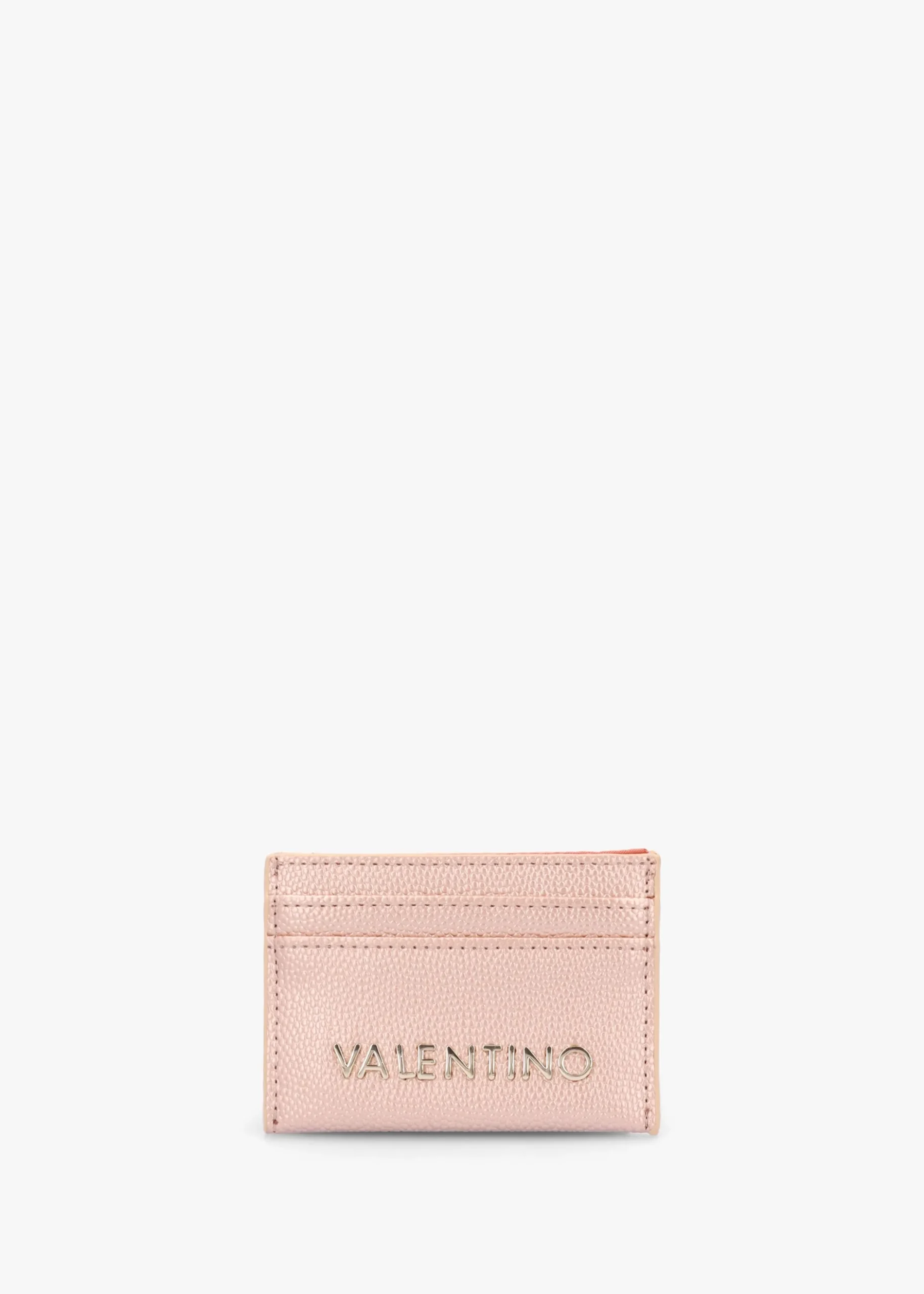Keep all your cards in check this New Season with the ‘Divina’ card case from Valentino. This everyday neat style is crafted from premium pebbled faux leather with gold tone accents. Signature Valentino branding is seen throughout.