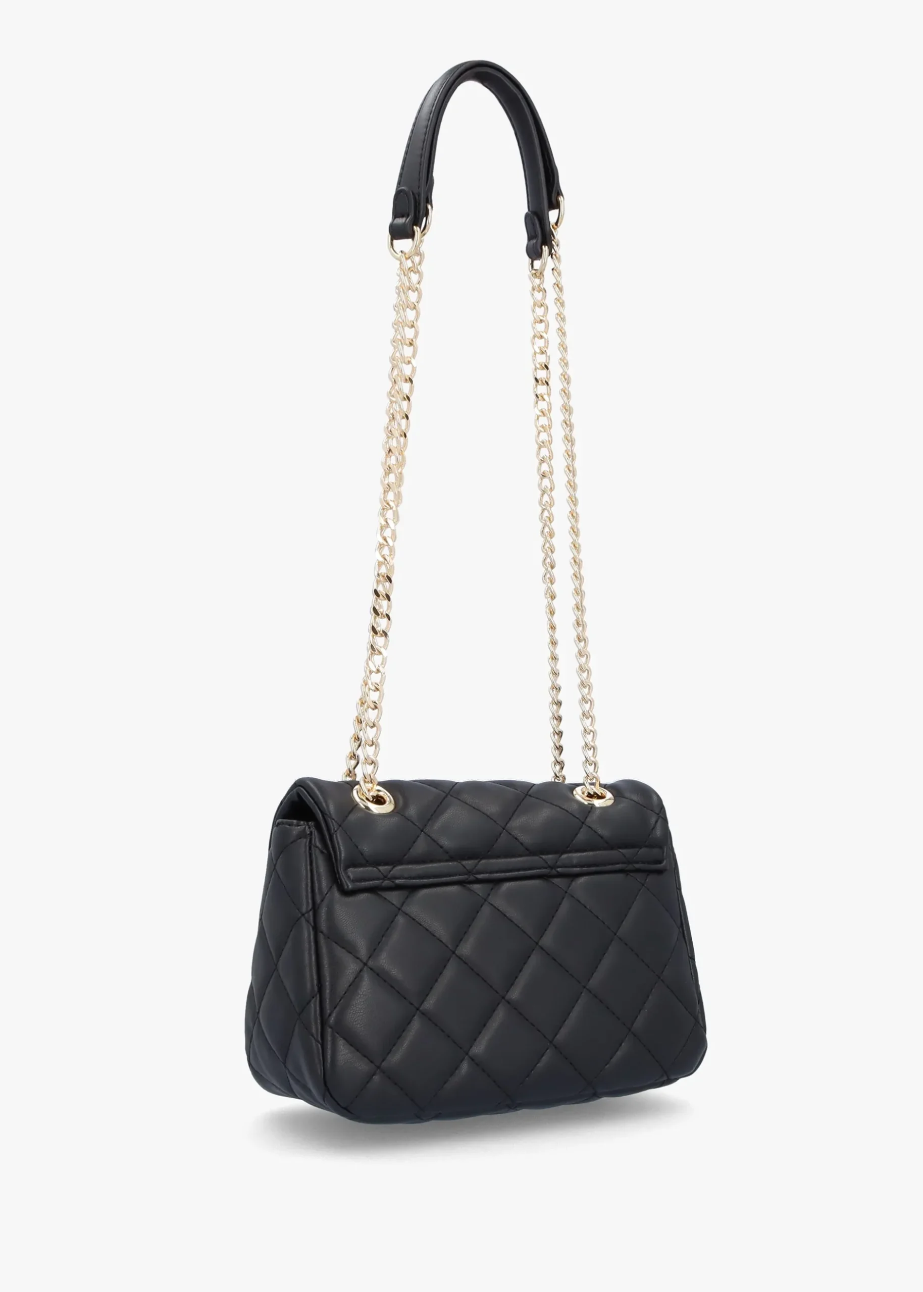 Buy the ‘Mini Ocarina Quilted’ shoulder bag from Valentino. This day to dark style is crafted from premium PU made from part recycled materials in a classic quilted design with polished gold tone accents. The secure push lock front fastening reveals the main compartment with handy inner zip and slot pocket, Carry by the adjustable chain and PU strap on the shoulder or across the body. Signature Valentino branding is seen throughout.