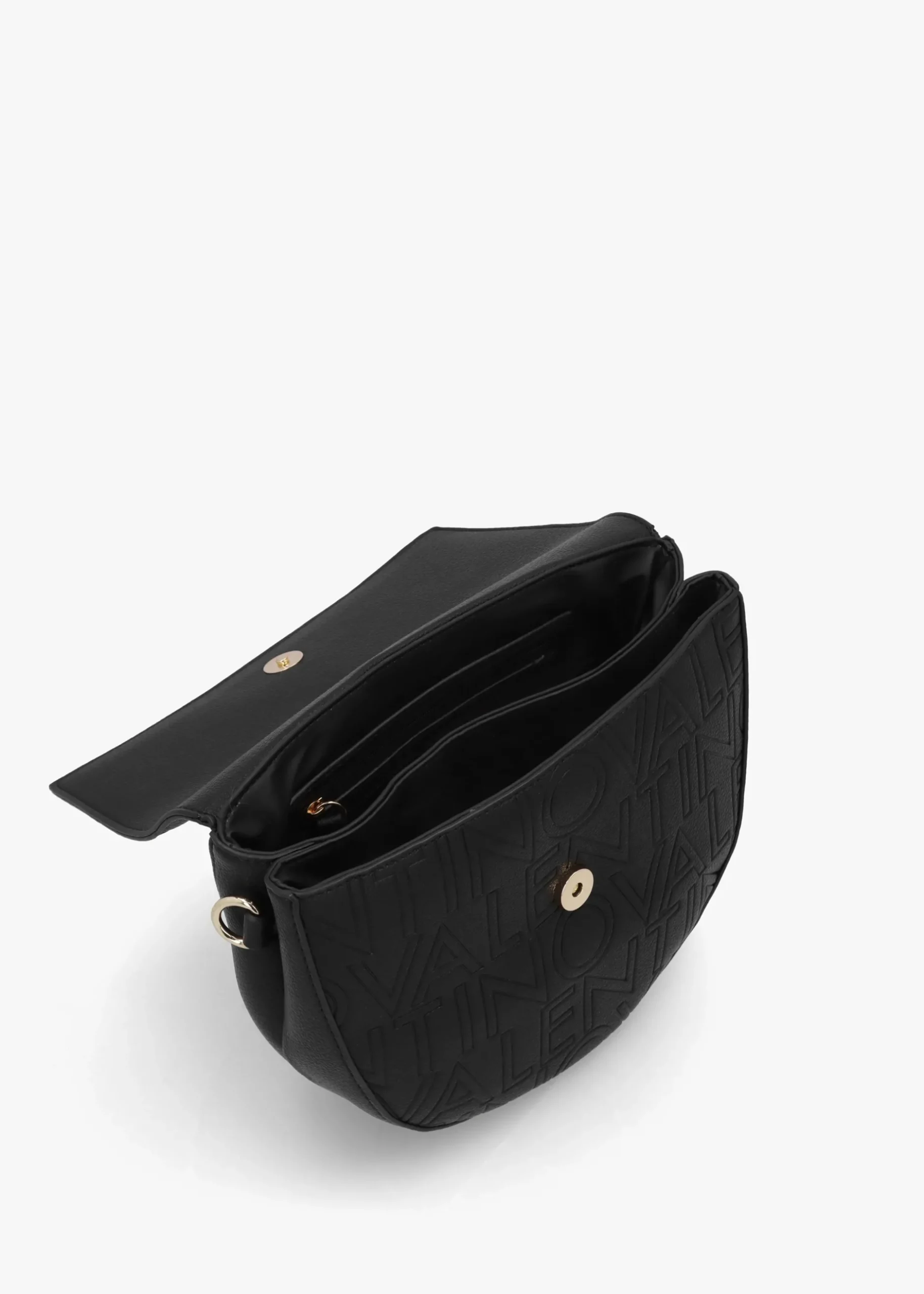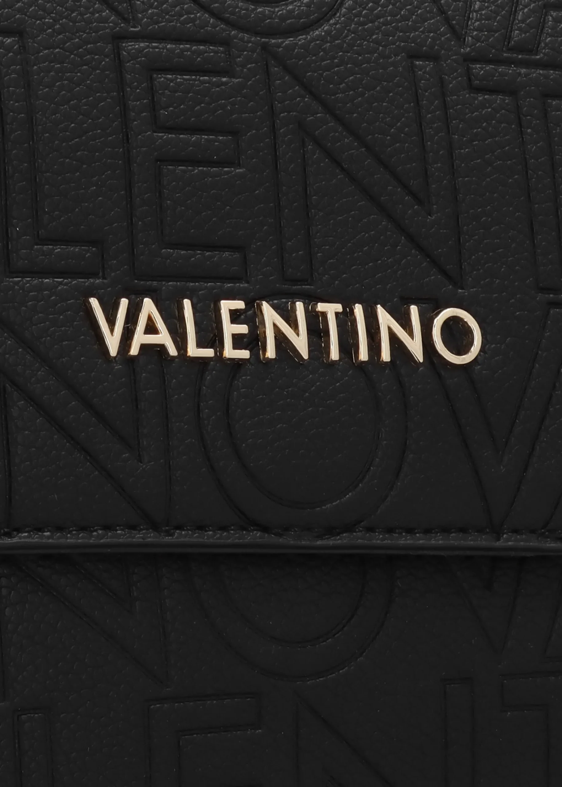 The ‘Pansy’ satchel from Valentino is the perfect day bag style. Crafted from premium pebbled PU in a repeat logo design with polieshed gold tone accents. The secure magnetic snap front flap reveals double compartment featuring handy inner zip and slot pockets. Carry either of the detachable straps. Signature Valentino Bags branding is seen throughout.