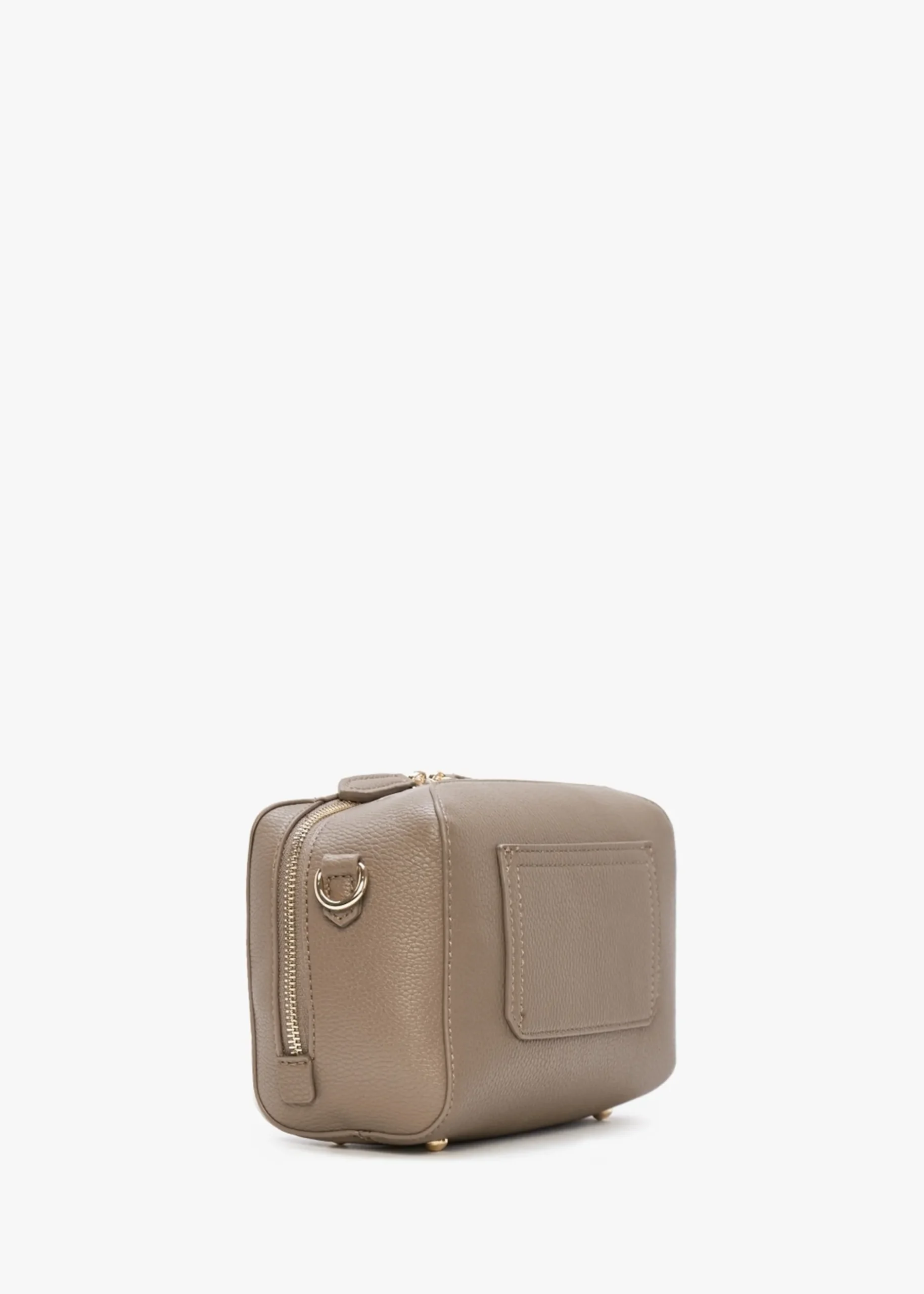 The ‘Pattie Haversack’ cross-body bag is part of the New Season collection from Valentino Bags. This everyday style is crafted from premium pebbled PU with gold tone accents. The secure top zip fastening reveals the main compartment with handy inner zip pocket, exterior slot pocket also features. Carry by the detachable logo guitar strap on the shoulder or across the body. Signature Valentino Bags branding is seen throughout.