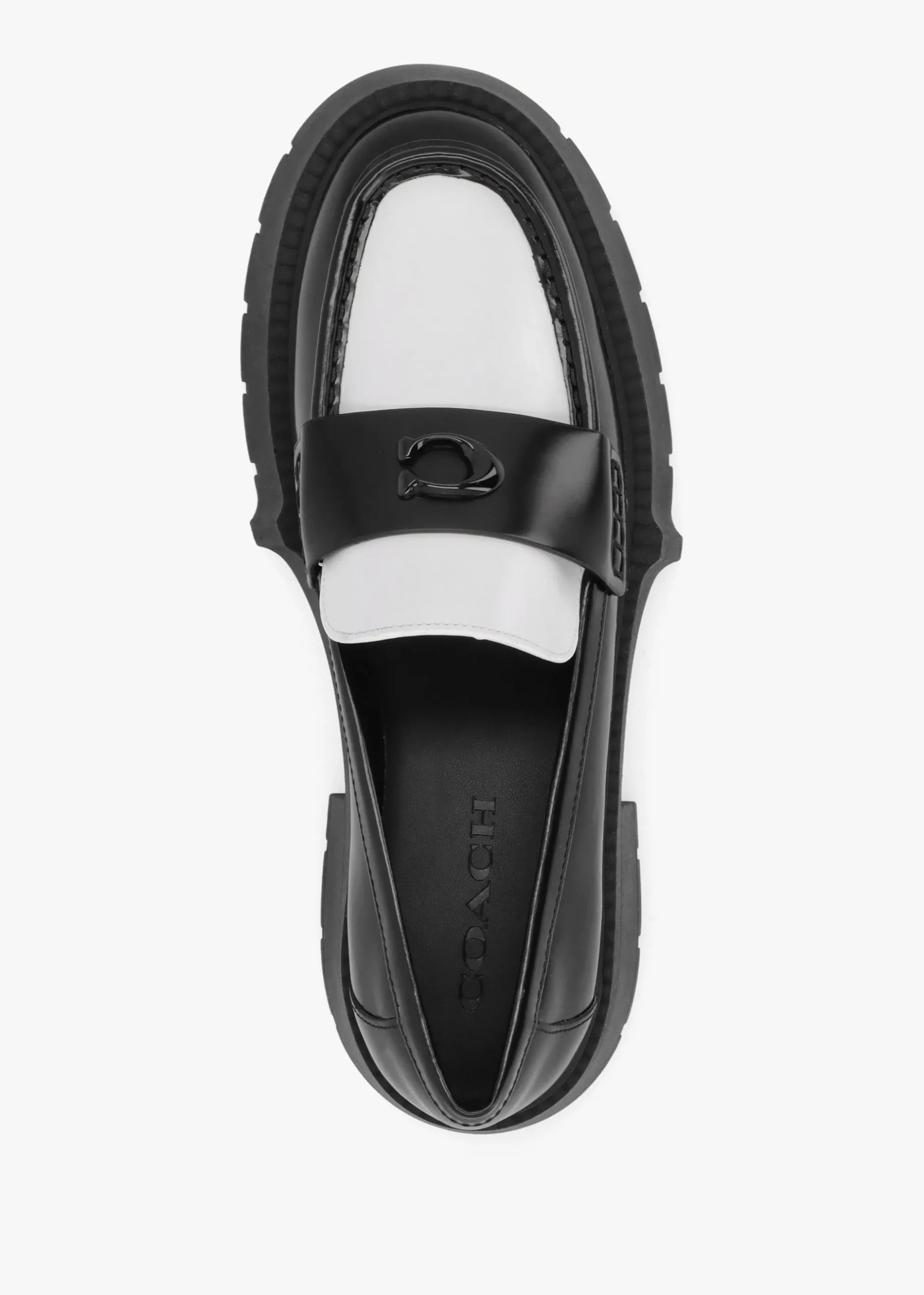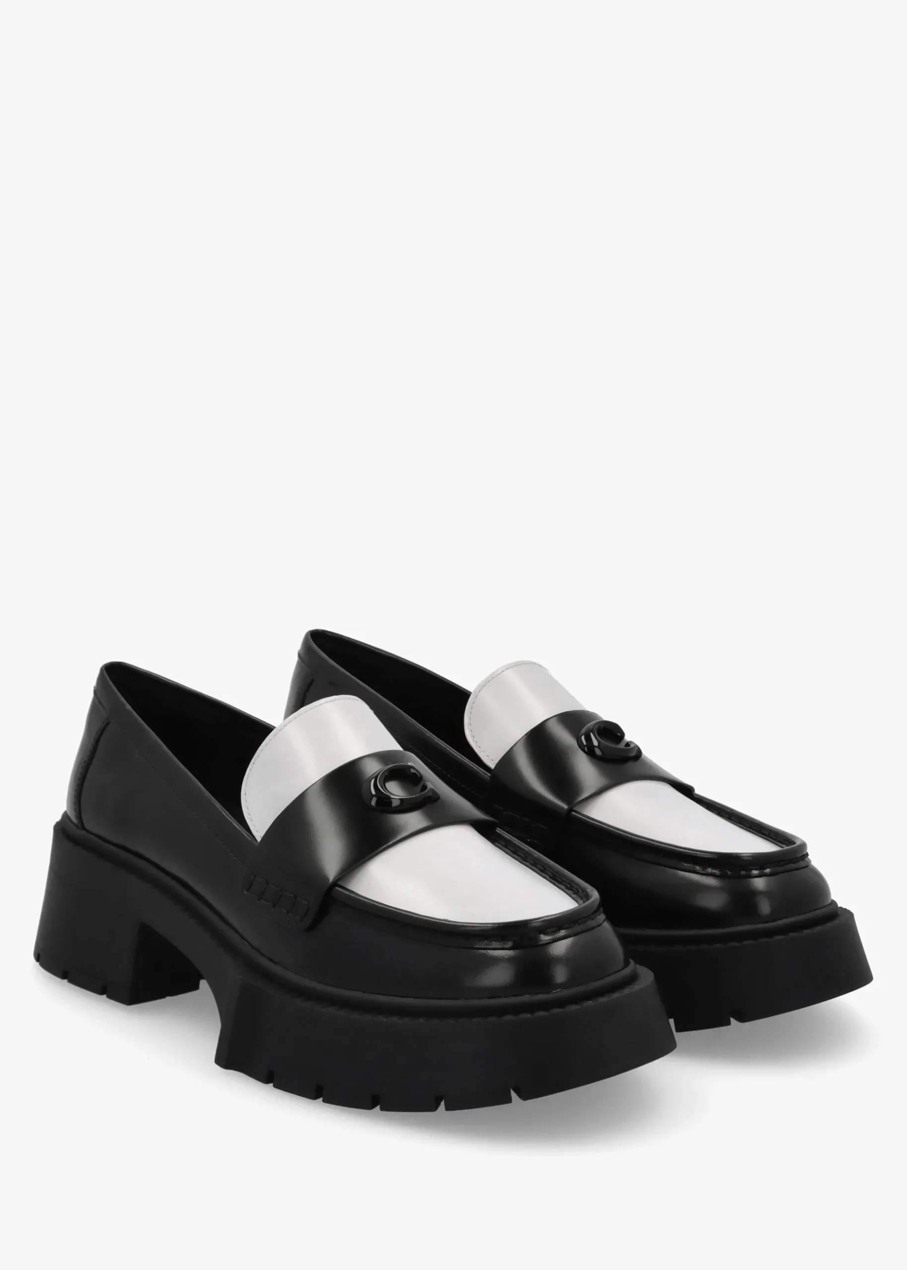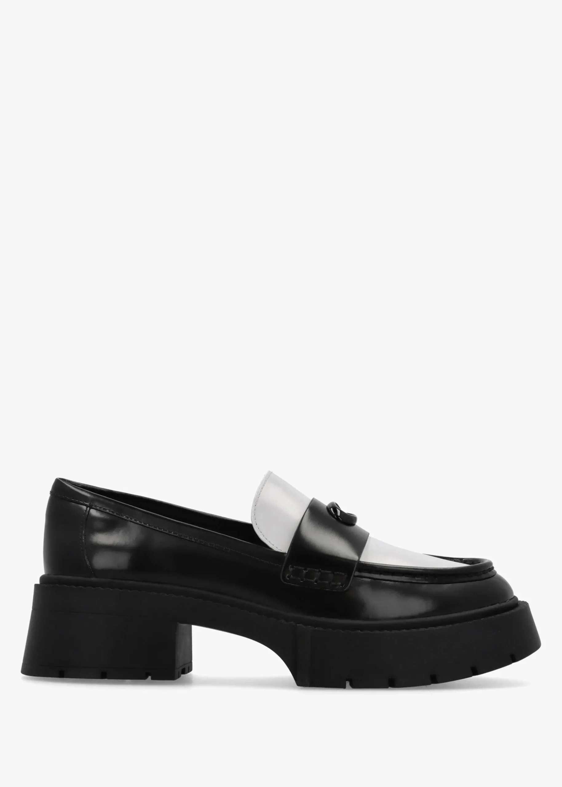 Add the 90’s inspired ‘Leah’ platform loafers from COACH to your New Season wardrobe. A reinvented classic chunky style crafted from premium leather with part leather lining and lug rubber sole. An easy to wear slip on silhouette. Classic tonal ‘C’ logo motif adds detail to the upper. Signature COACH branding is seen to the footbed.