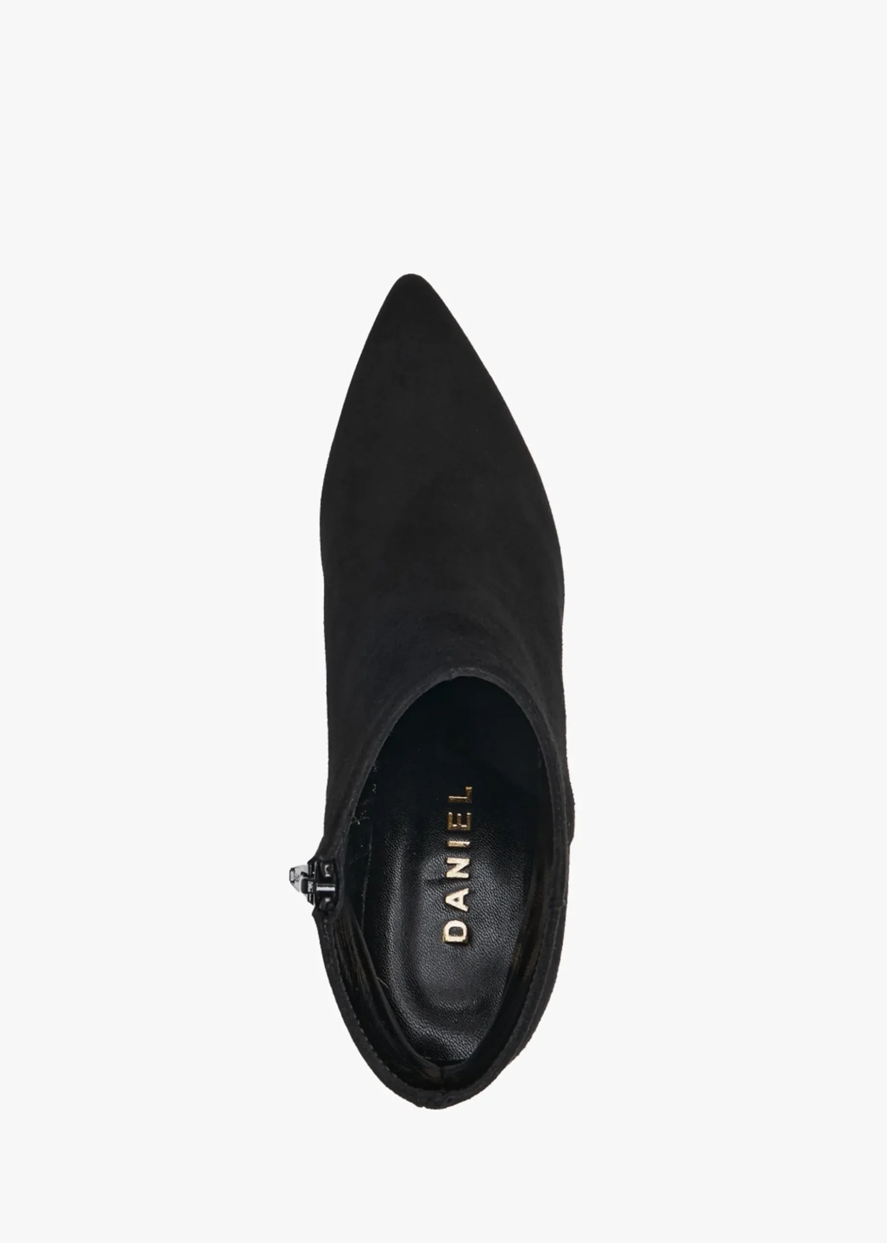 The ‘Alia’ ankle boots are part of the New Season collection from Daniel Footwear. This simple yet chic style is crafted from a premium suede upper with luxurious leather lining and sole. Zip fastening to the inner leg creates an easy wear. The classic pointed toe and mid-block heel make up the silhouette. Signature Daniel branding is seen to the foot-bed.