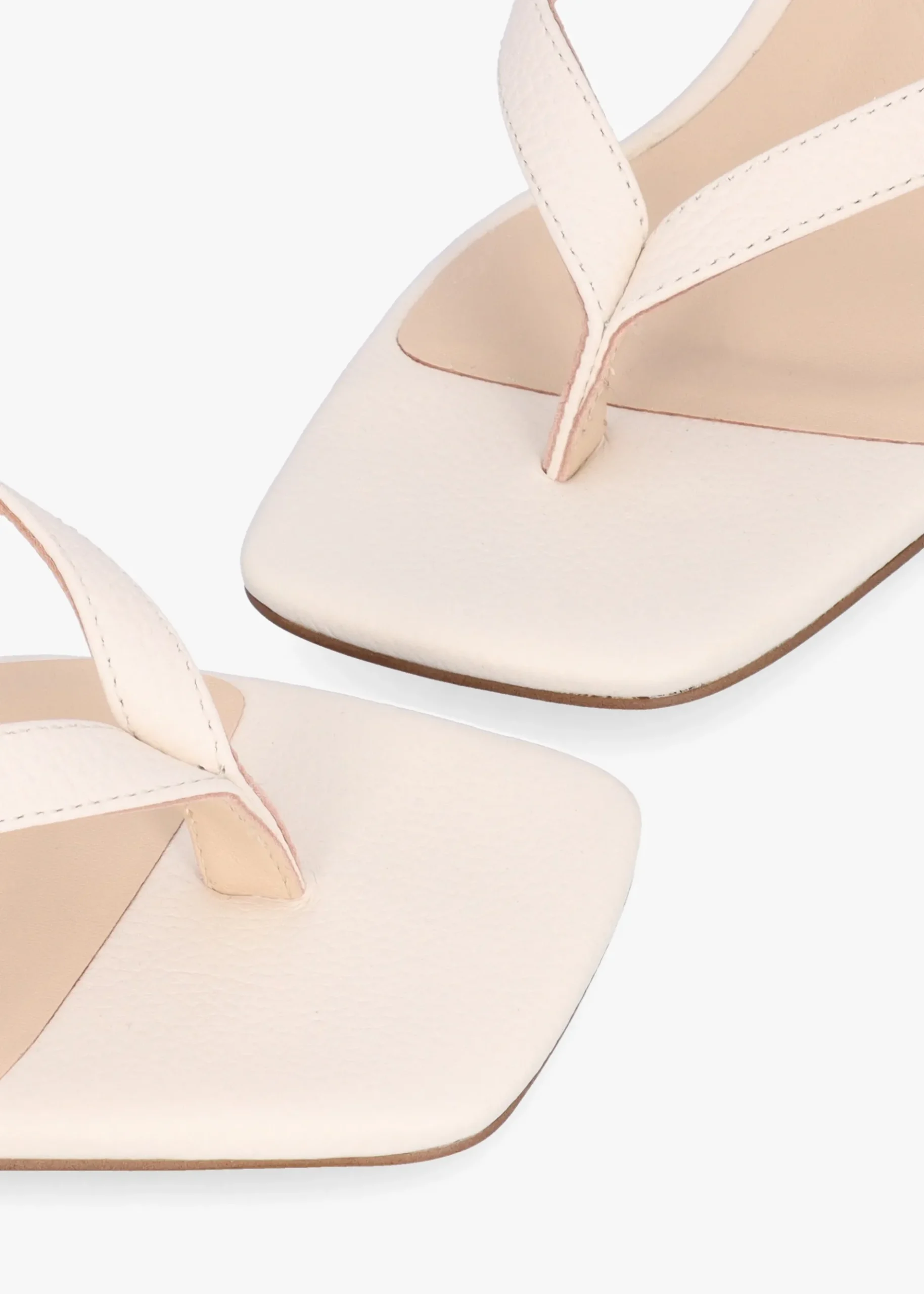 The ‘Eden’ toe post sandals are part of the New Season collection from Daniel Footwear. This versatile day to dark style is crafted from a premium pebbled leather upper with luxurious leather lining and man-made sole. An easy to wear slip on style with classic toe post. This simple yet chic silhouette features shaped kitten heel. Signature Daniel branding is seen to the foot-bed.