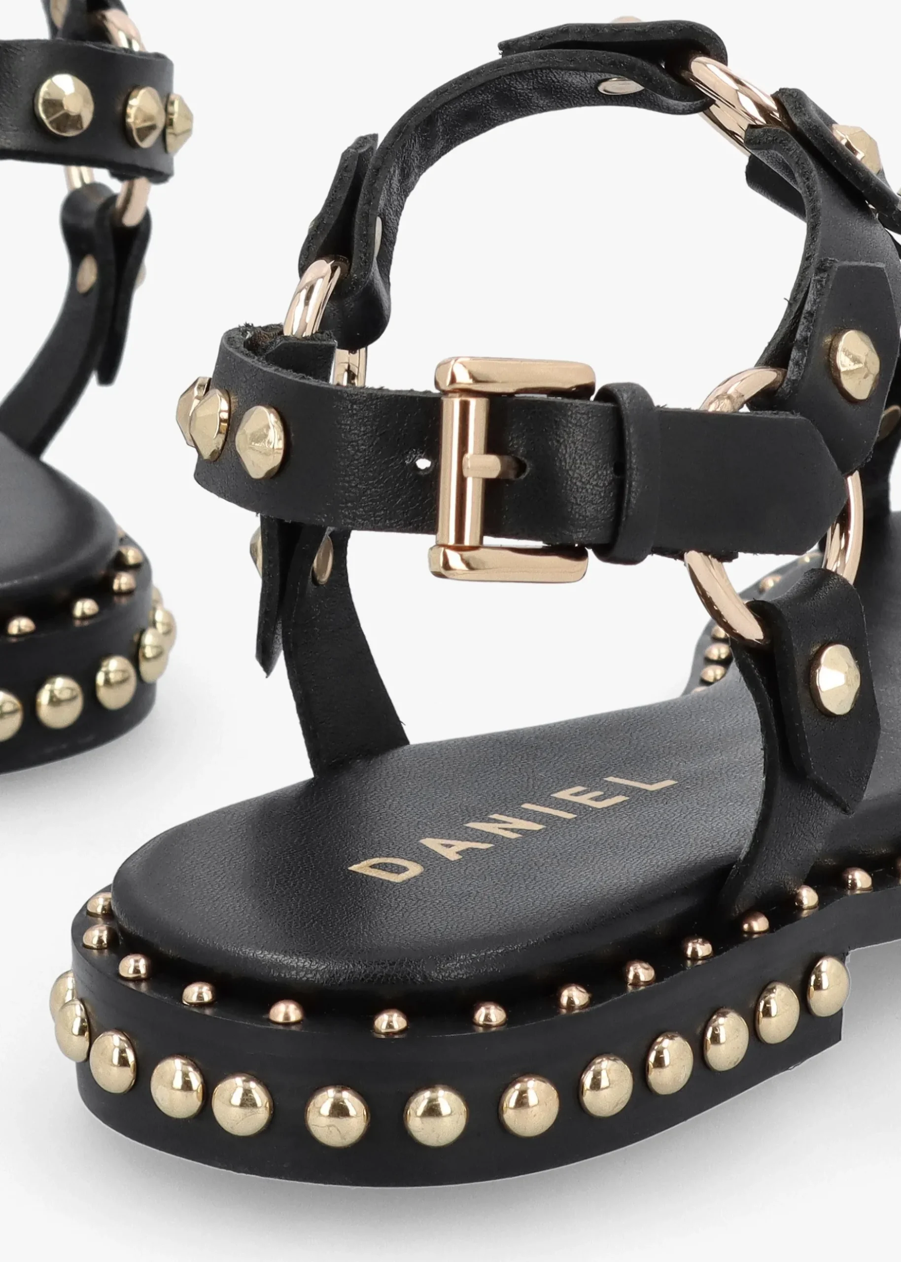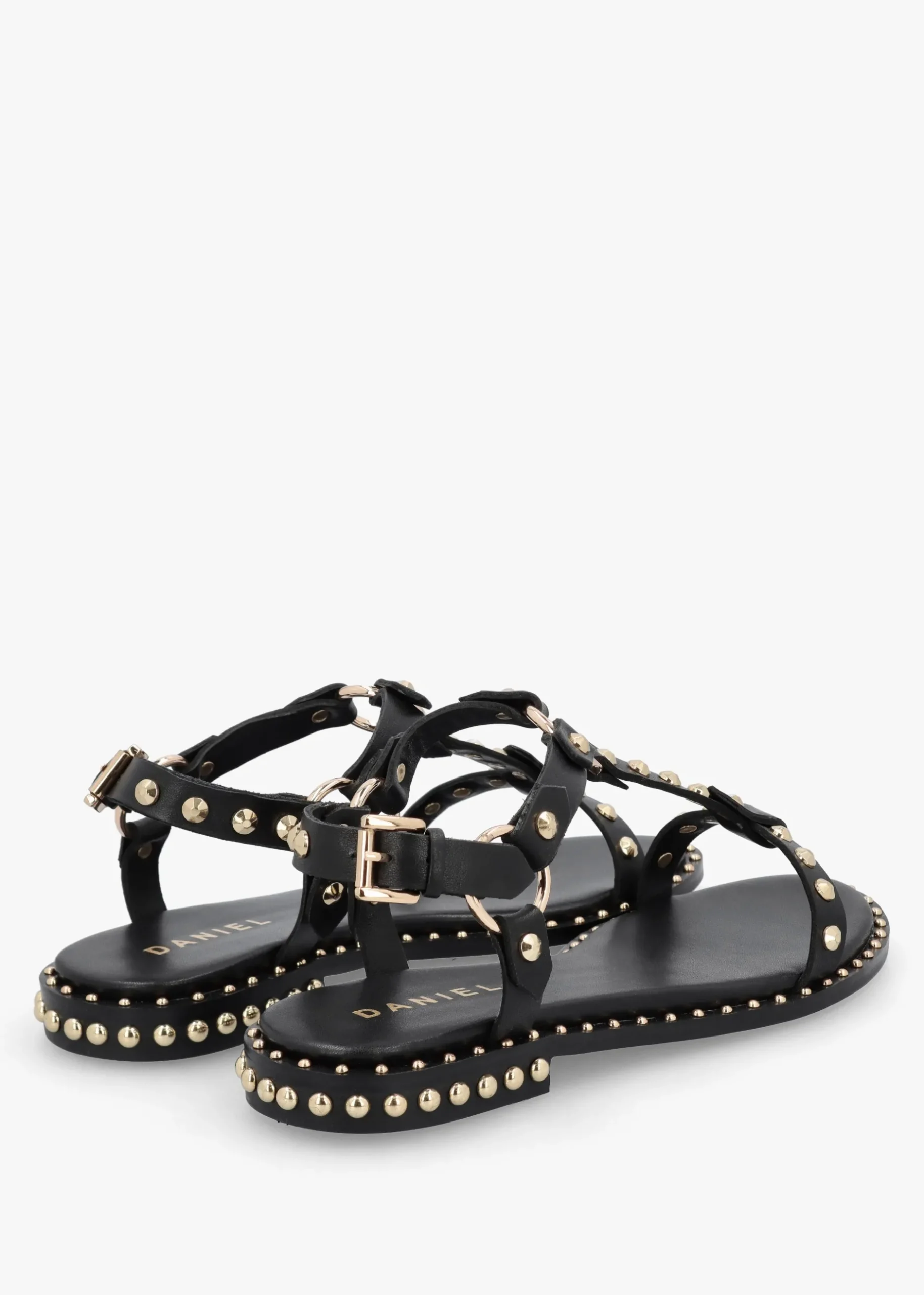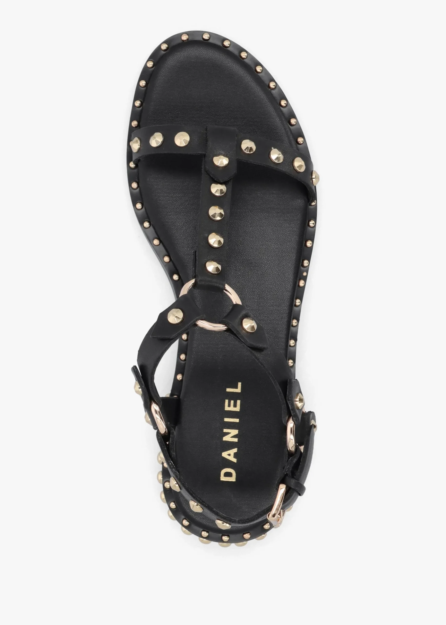 Perfect for the Summer Season the ‘Everlast’ T Bar sandals from Daniel. Crafted from a premium leather upper with luxurious leather lining, cushioned footbed and a man-made sole. The buckle fastening ankle strap creates an easy wear. Studded embellished adds detail to the upper and sole. Signature Daniel branding is seen to the footbed.