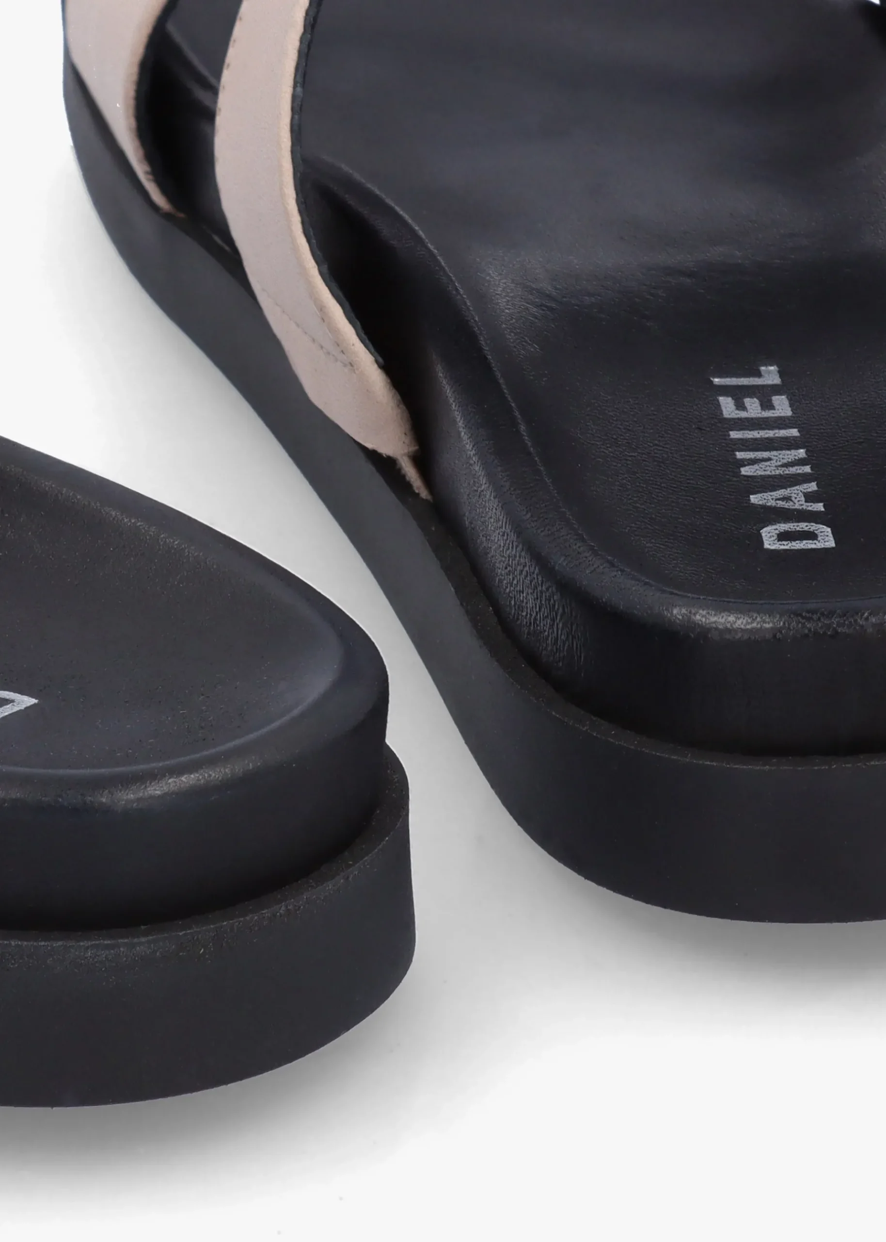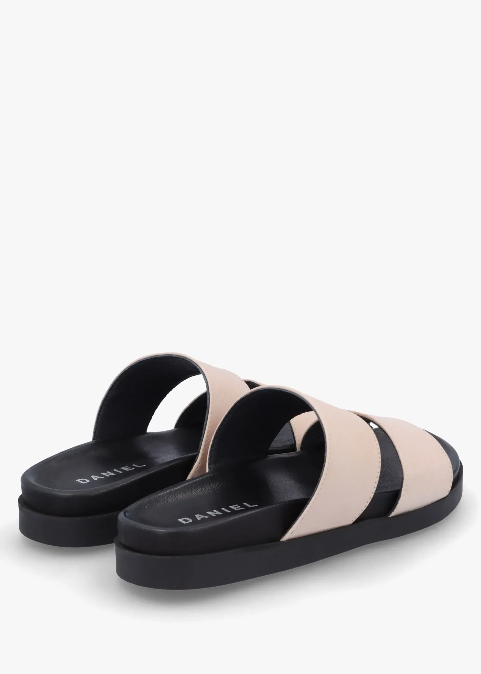 New from Daniel this Season the everyday ‘Imogen’ mules. This simple timeless style is crafted from premium smooth leather with leather lining, cushioned footbed and a rubber sole. An easy to wear slip on versatile style. Signature Daniel branding is seen to the footbed.