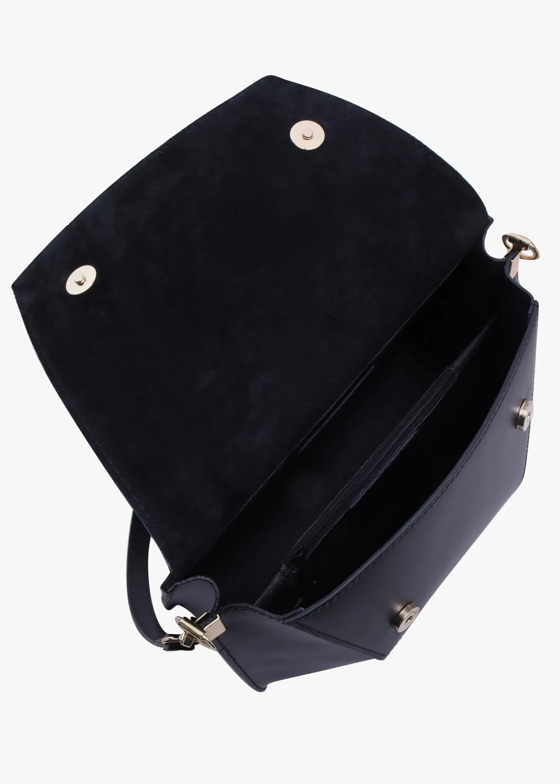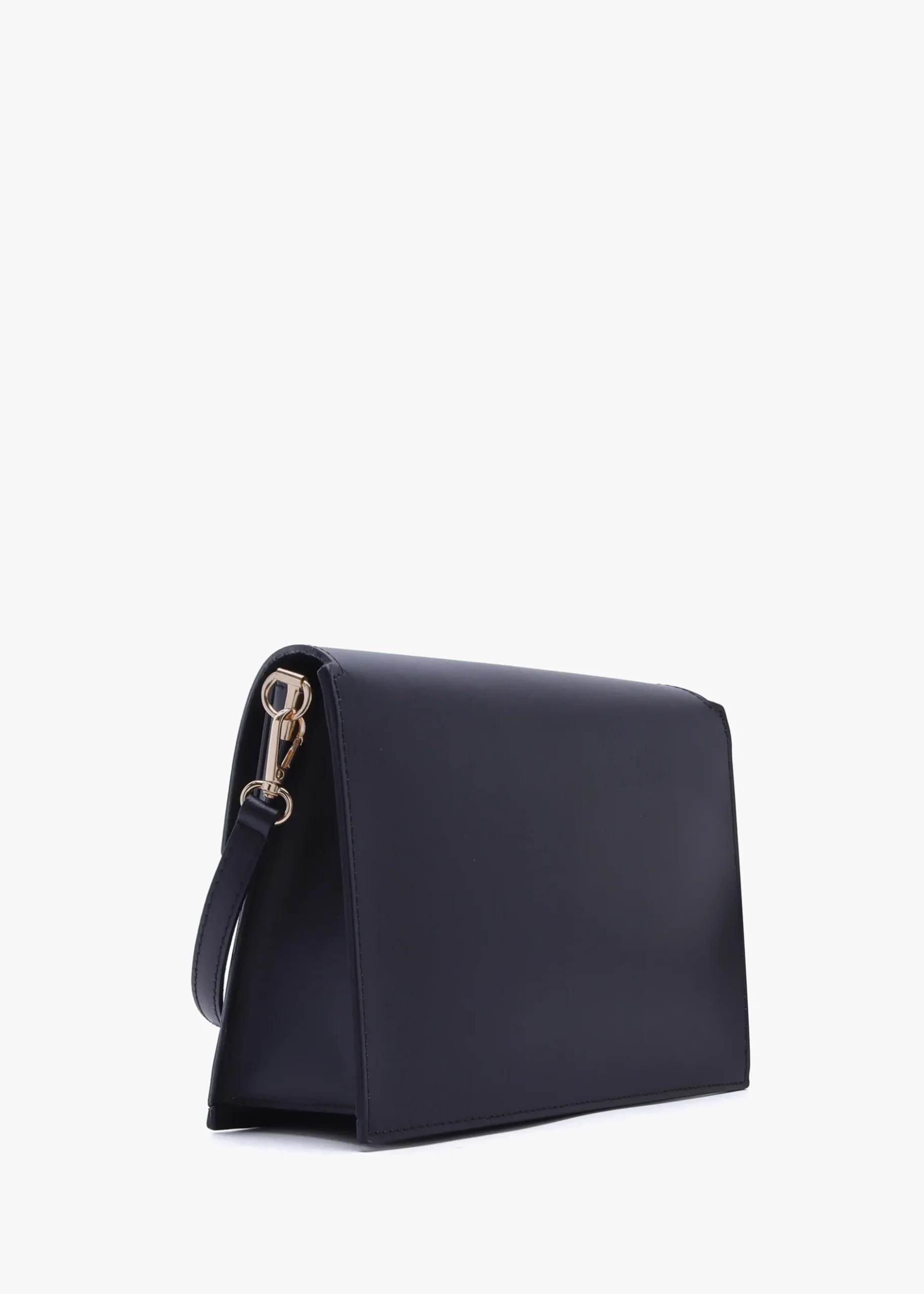 Add the ‘Lucia’ cross-body bag from Lunna Ferracuti For Daniel Footwear to your handbag collection. A larger version of the ‘Leonie’ cross-body by the brand. This New Season style has simple yet chic silhouette. Crafted from premium smooth leather with polished gold tone accents. The secure magnetic snap puzzle shaped front flap reveals a middle zip compartment as well as two other compartments. Carry by the detachable strap on the shoulder or across the body. Signature Lunna Ferracuti For Daniel branding is seen to the inner lining.