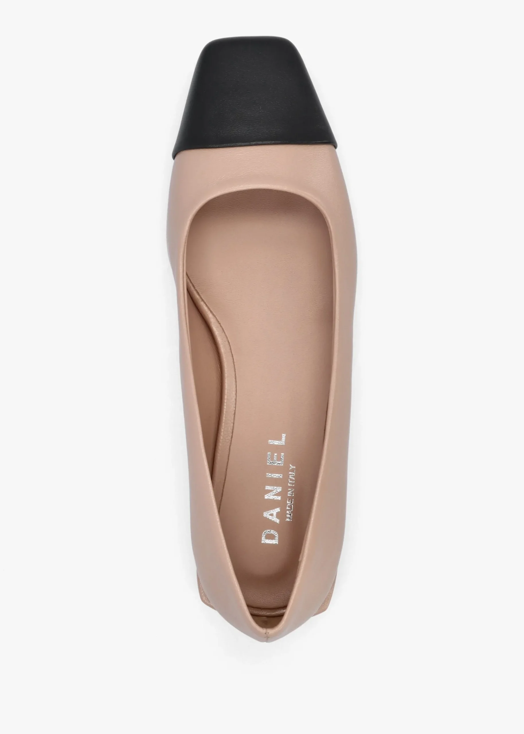 Ditch you heels and fashion the ‘Saria’ pumps from Daniel. This New Season style is crafted from a premium leather upper with luxurious leather lining, lightly cushioned footbed and man-made sole. An easy to wear classic slip-on style. Contrasting square toe cap adds detail. Signature Daniel branding is seen to the footbed.