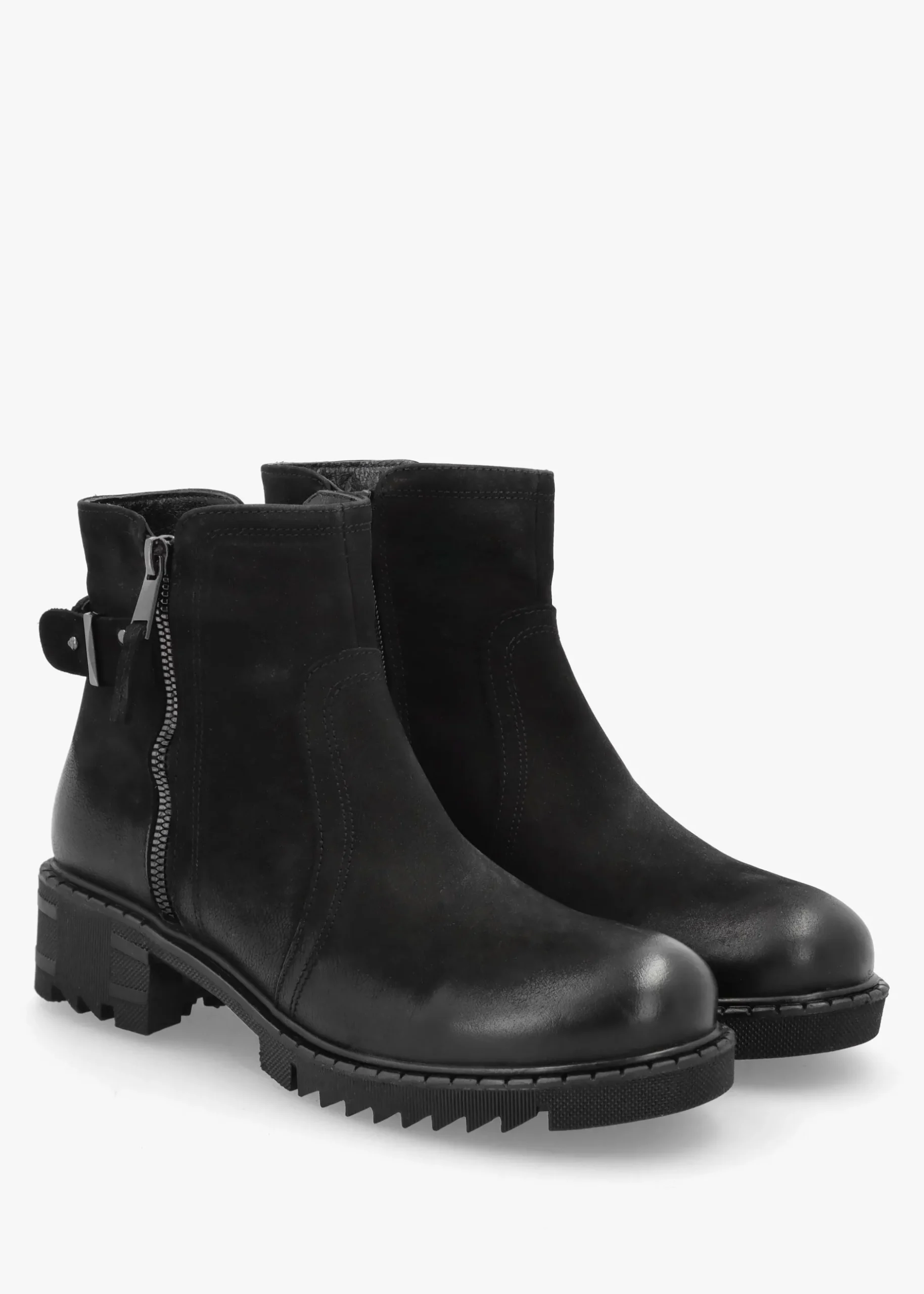The ‘Voluptas’ ankle boots are part of the New Season collection from Daniel. Crafted from a premium leather upper in a subtle distressed design with textile lining and a textured rubber sole. Zip fastening to the inner leg creates an easy wear. Faux exterior zip and buckle strap add detail. The classic round toe and low block heel make up the silhouette.