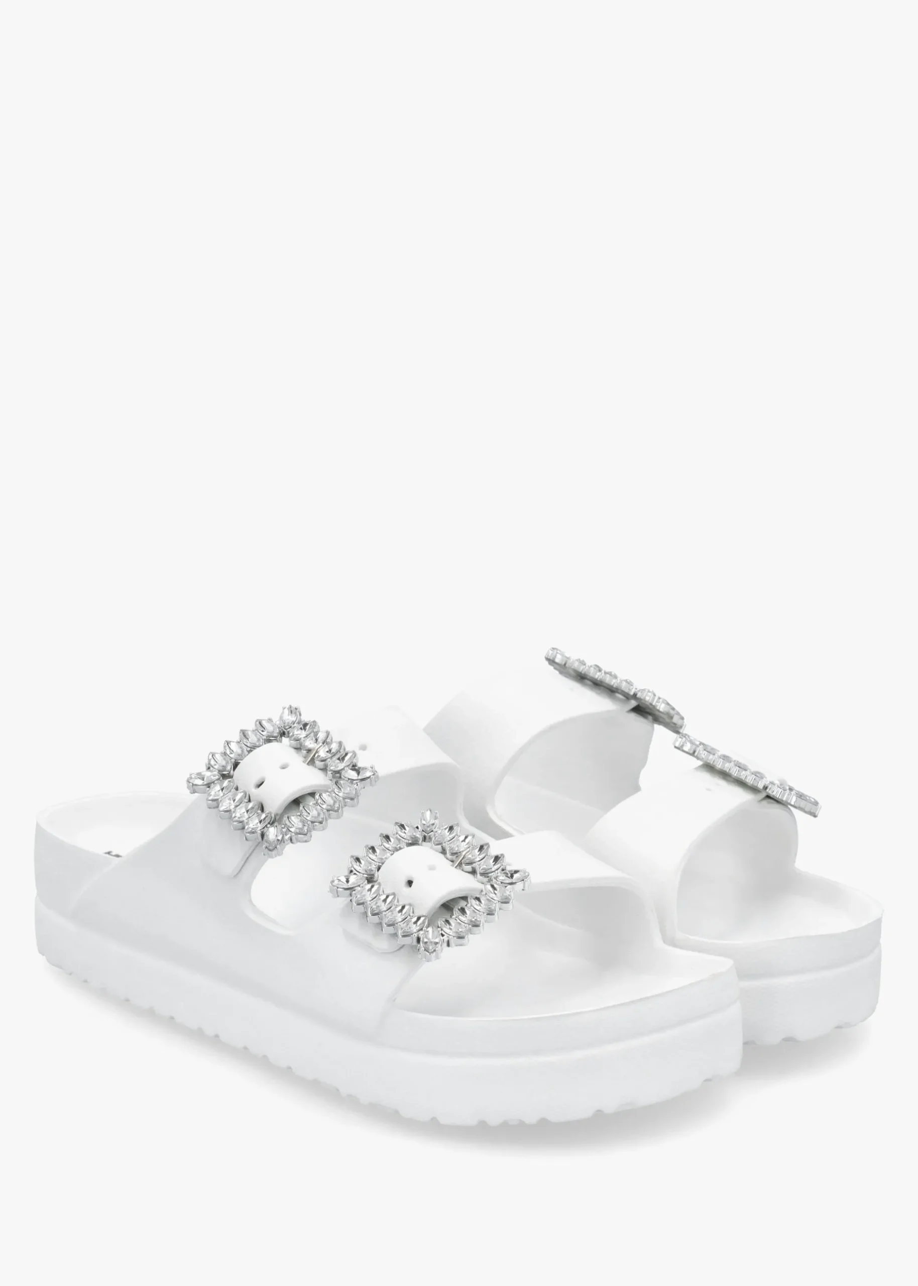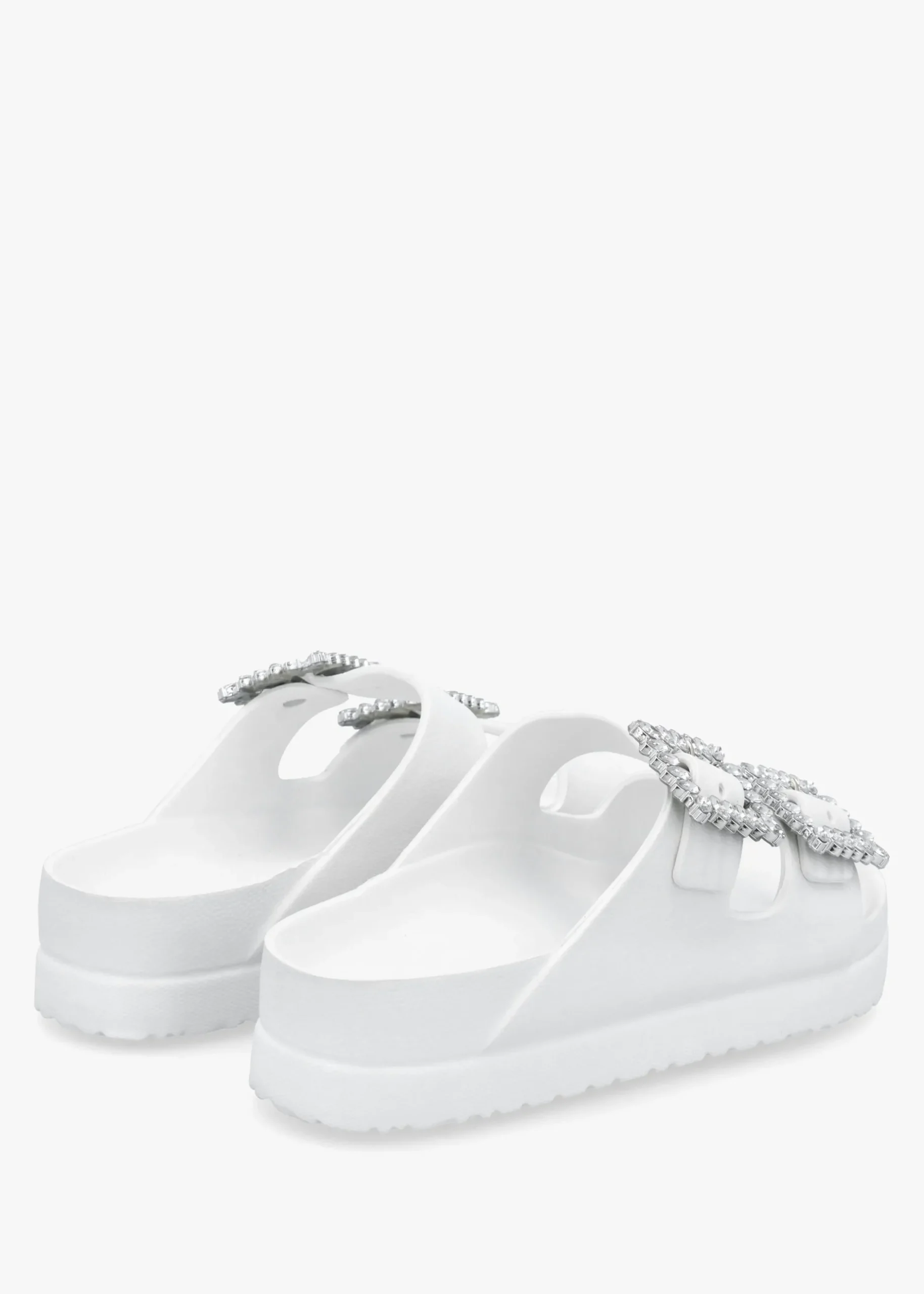 Add these classic mules to your Summer wardrobe, perfect for off-duty and beach days. An easy to wear slip on style featuring two strap upper with statement jewel embellished buckles. Signature Hot Sand branding is seen to the footbed.