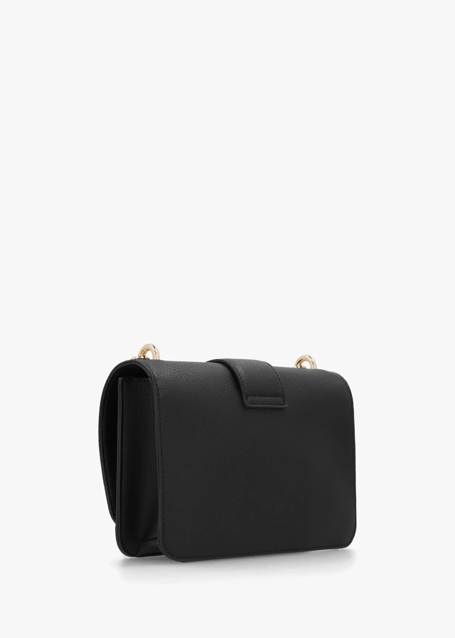 The ‘Love Bug’ shoulder bag from Love Moschino in both elegant and functional in equal measures. This New Season design is crafted from premium pebbled PU with polished gold tone accents. The secure magnetic snap front flap reveals the single main compartment, handy slot pocket also features. Carry by the chunky detachable chain strap on the shoulder. Statement logo lettering hardware adds detail. Signature Love Moschino branding is seen throughout.