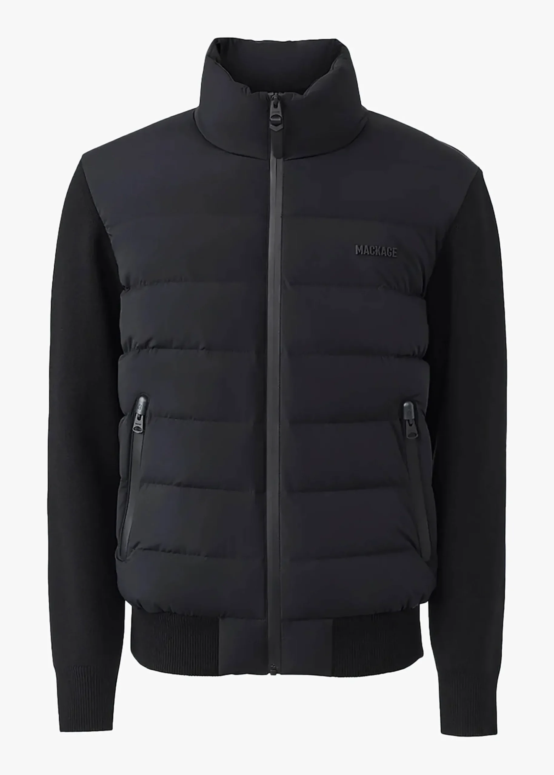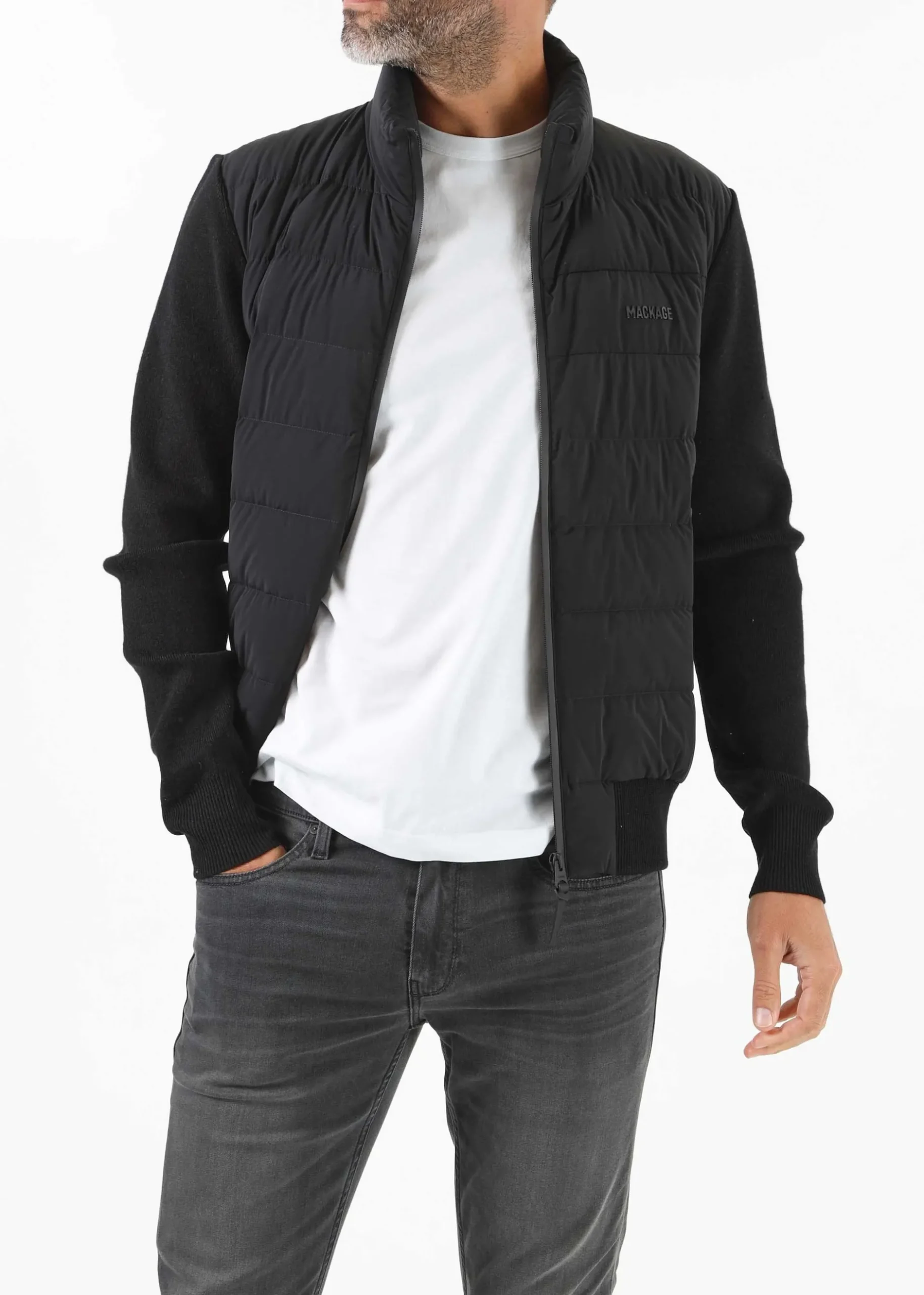 Add the men’s ‘Haney City Hybrid’ jacket from MACKAGE to outerwear collection. This New Season style features a cardigan silhouette that’s filled with lightweight down. Crafted from Agile-360 two-way stretch material with a centre front zip fastening, zipper opening welt pockets and rib knit cuffs and hem. Signature MACKAGE branding is seen throughout.