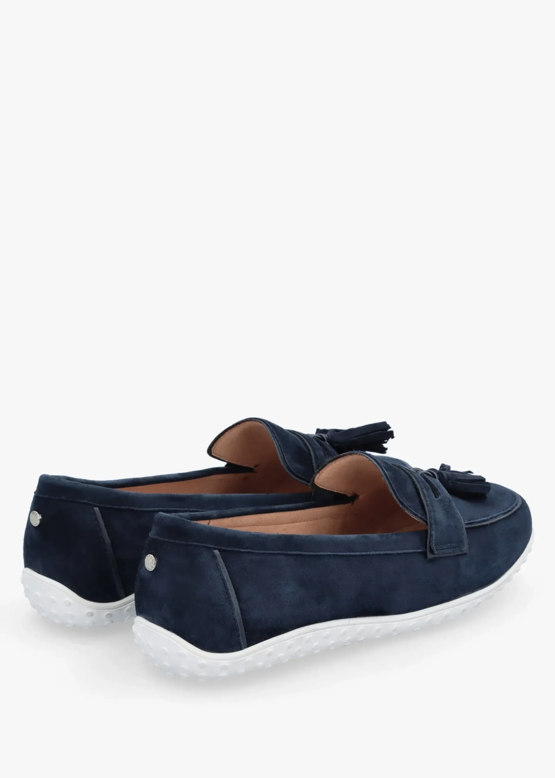 New to Daniel Footwear this Season from Moda In Pelle the ‘Elinia’ loafers. This everyday classic style is crafted from a premium suede upper with part leather lining, cushioned footbed and a rubber nub sole. An easy to wear slip on style. Tassel adds detail as well as logo stud to the back of the ankle and contrasting leather trim. Signature Moda In Pelle branding is seen to the footbed.