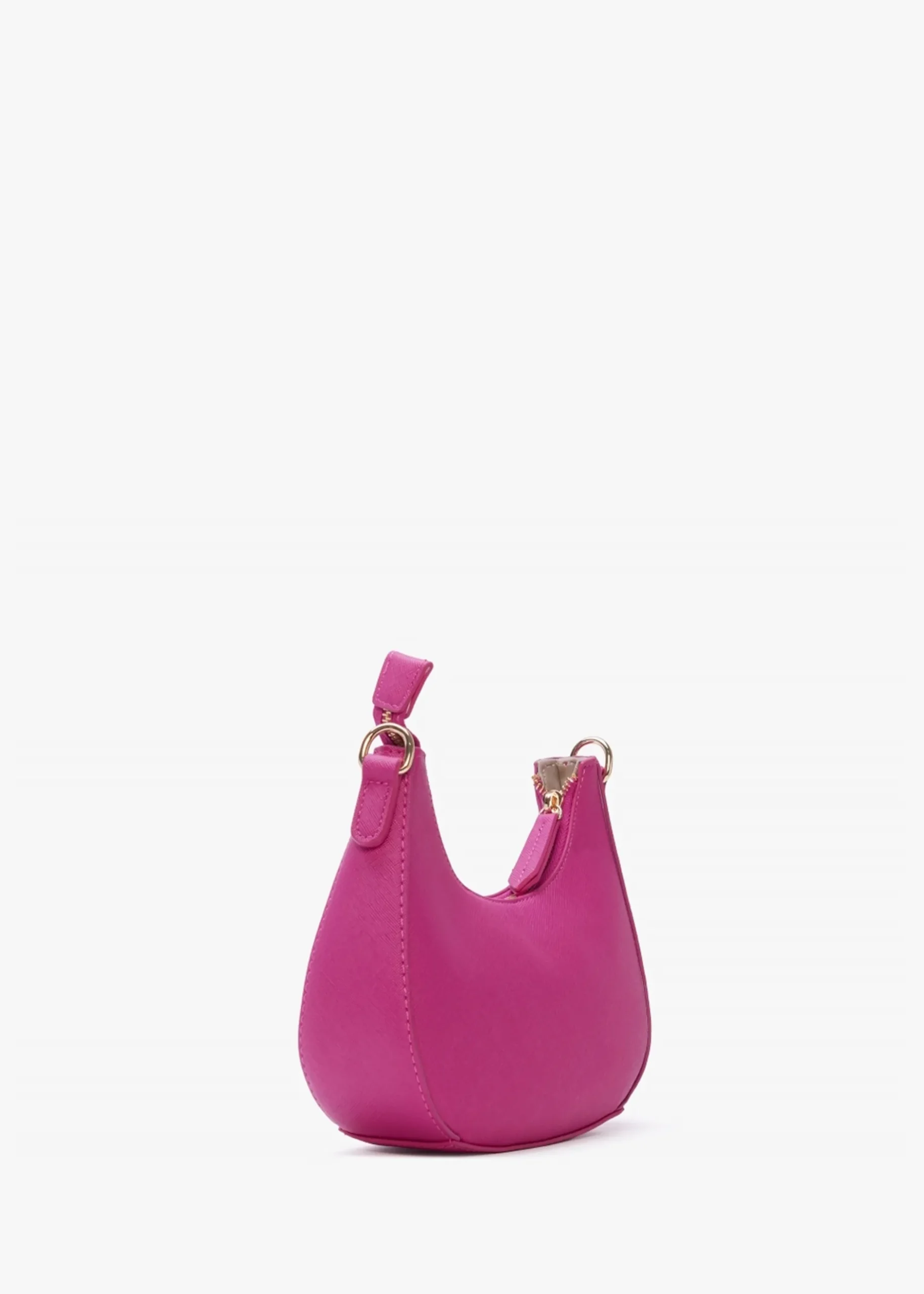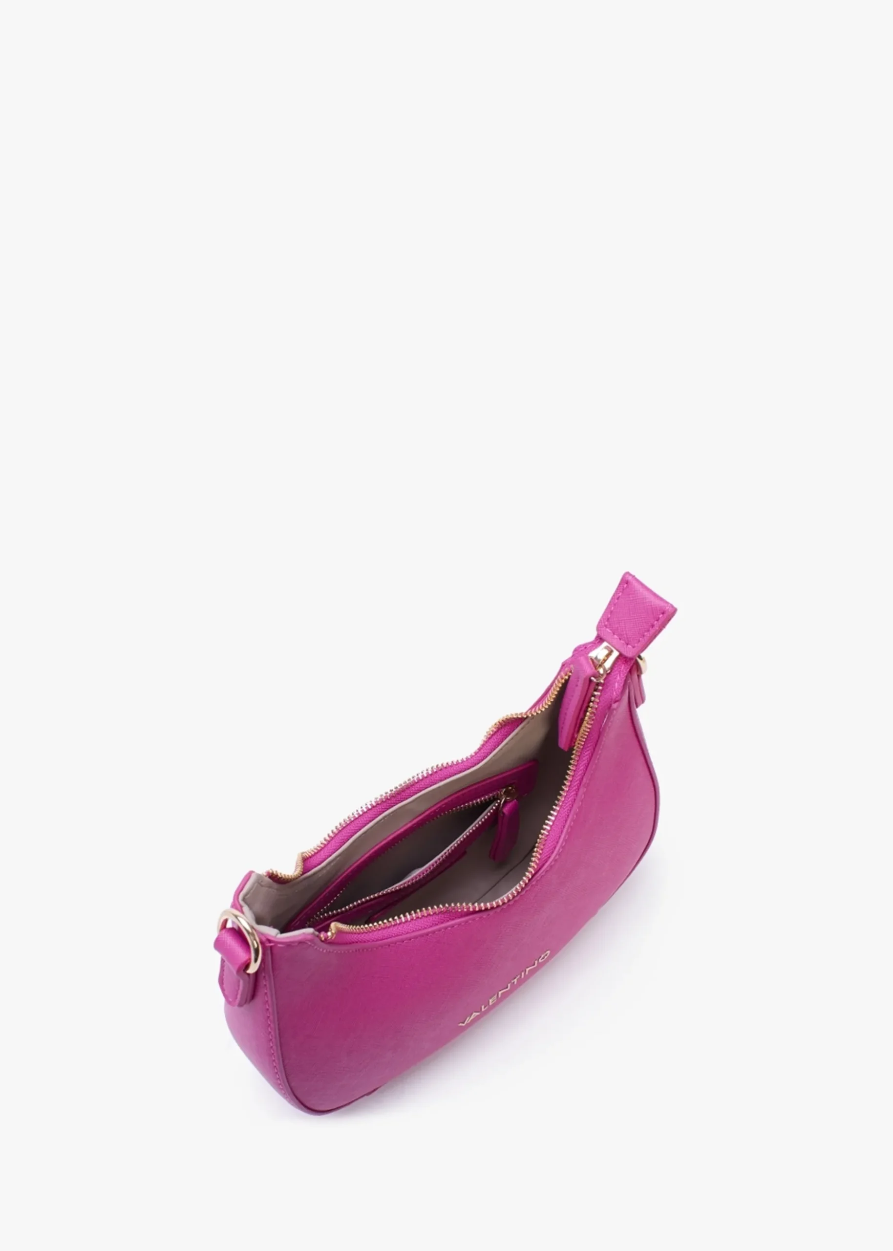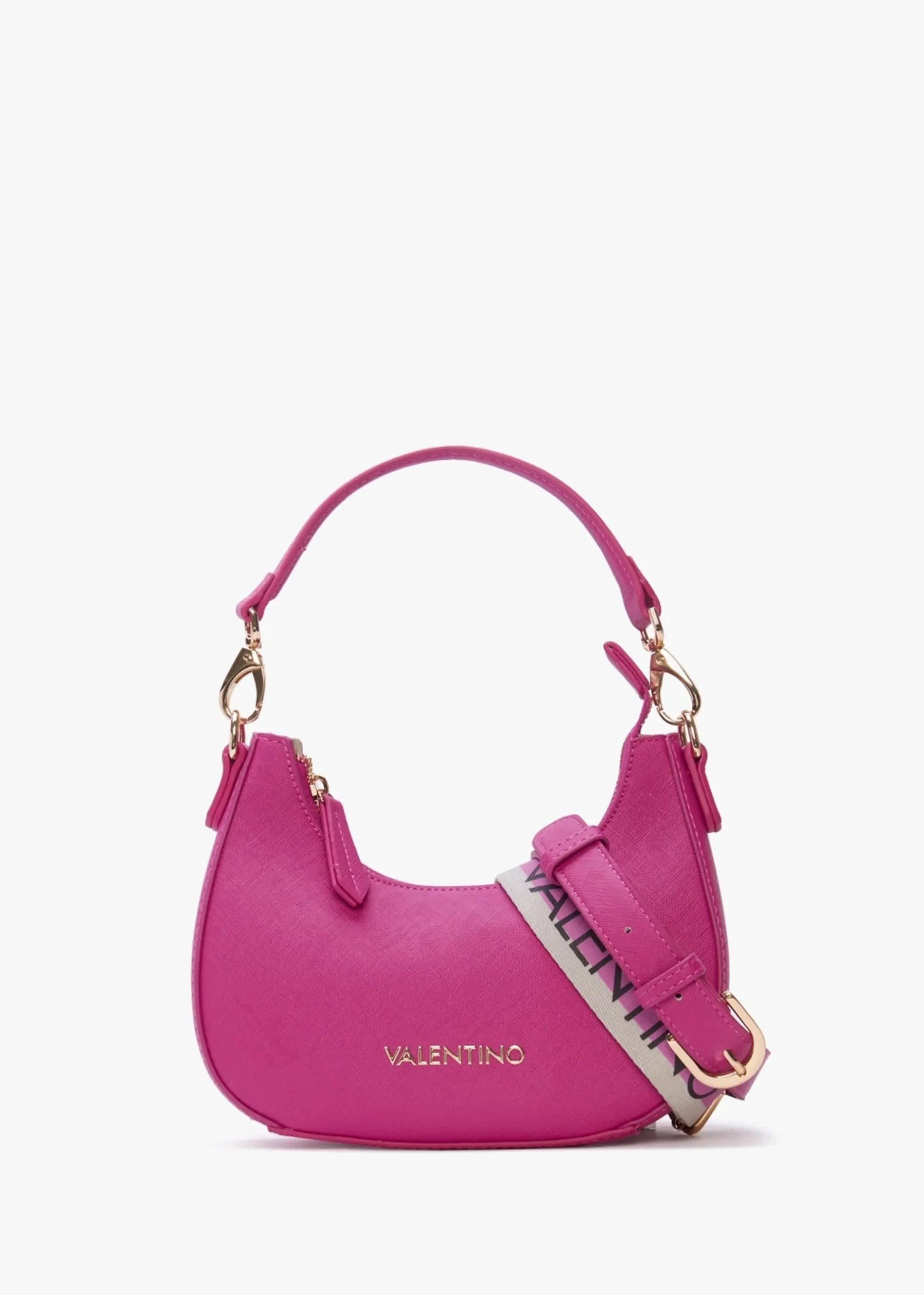 The ‘Zero’ hobo bag is part of the New Season eco-friendly collection from Valentino Bags. Crafted from premium textured PU with polished gold tone hardware. The secure top zip fastening reveals the main compartment with handy inner zip and slot pockets. Carry by either of the detachable straps. Signature Valentino Bags branding is seen throughout.