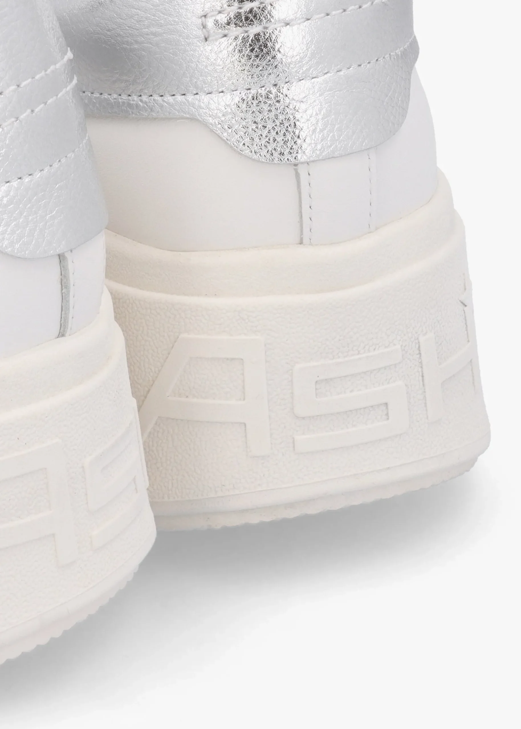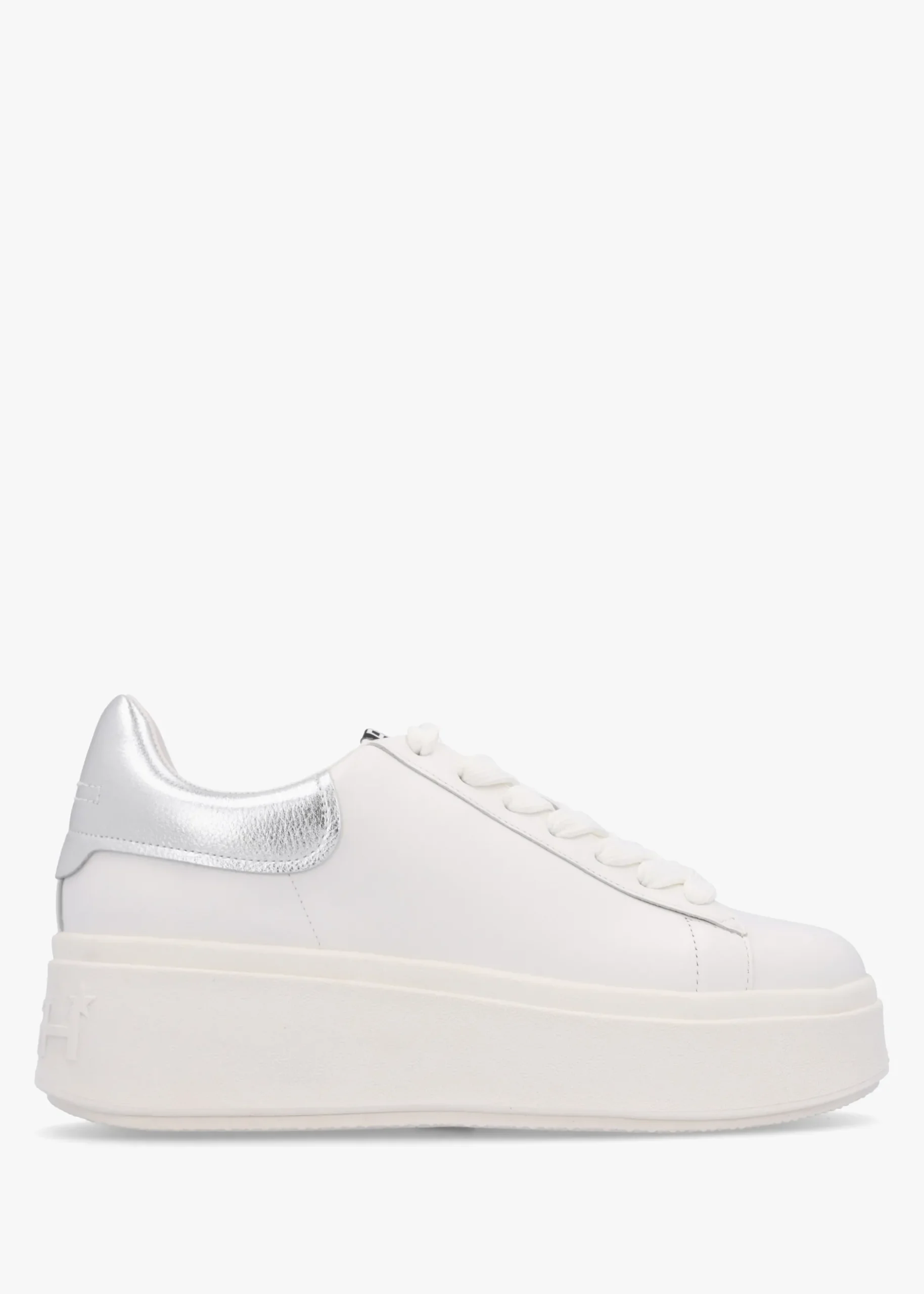 The ‘Moby’ trainers are part of the New Season collection from Ash. This chunky flatform style is crafted from premium leather with luxurious leather lining and chunky rubber sole. Contrasting metallic ankle tab adds detail. The lace up upper creates an easy wear as well as ensuring the perfect fit. Signature Ash branding is seen to the tongue, foot-bed and sole.