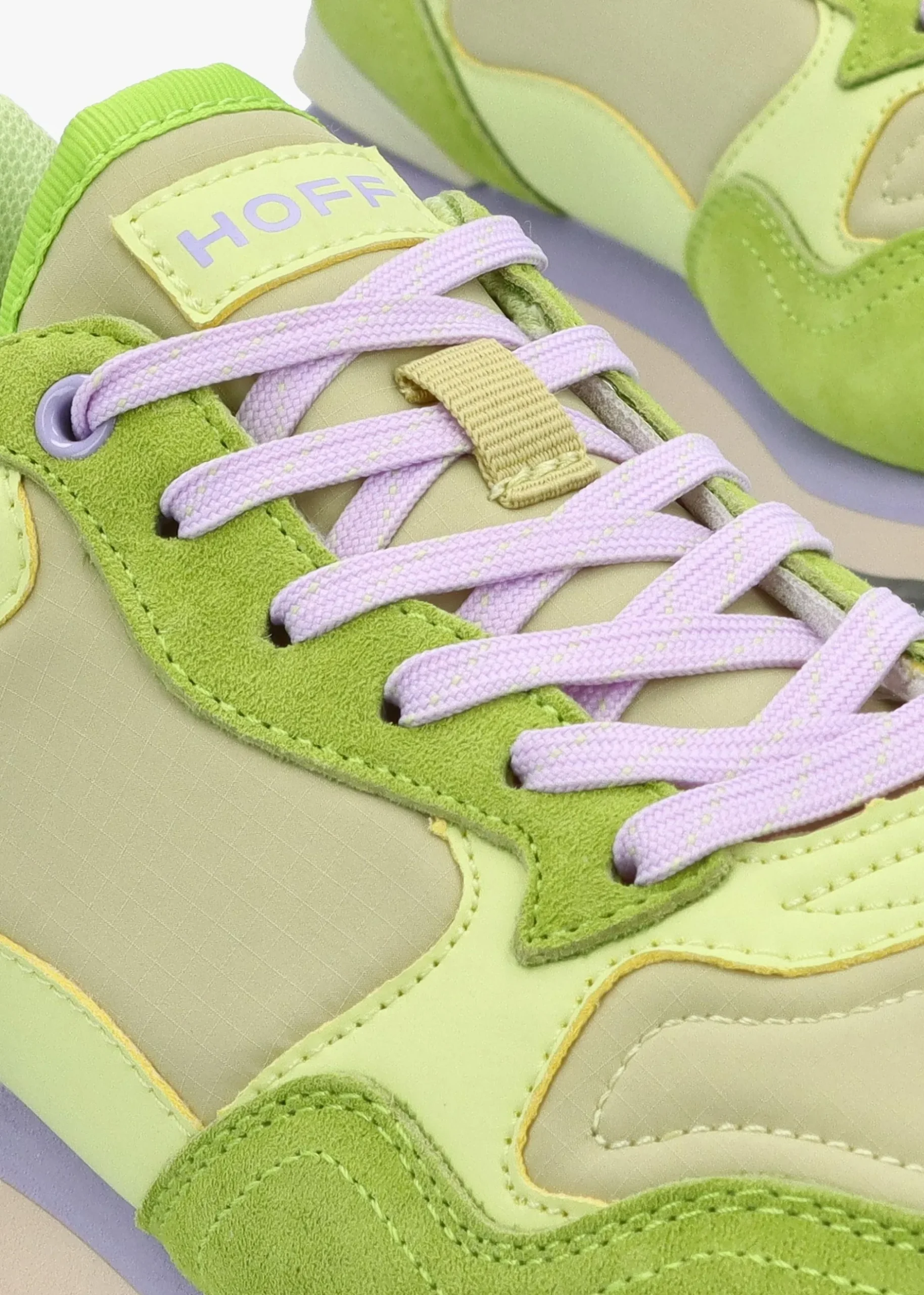 The ‘City’ silhouette is HOFF’s iconic 90’s inspired trainer. These trainers take us to the most important cities in the world, thanks to the sole that includes emblematic places. This sporty style is crafted from a premium suede and nylon upper with textile lining a removable memory foam foot-bed and a comfy rubber sole. The lace up upper ensures the perfect fit. Colour block design features to the upper in neon hues. Logo adds detail to the insole, outsole and tongue. Signature HOFF branding is seen throughout.