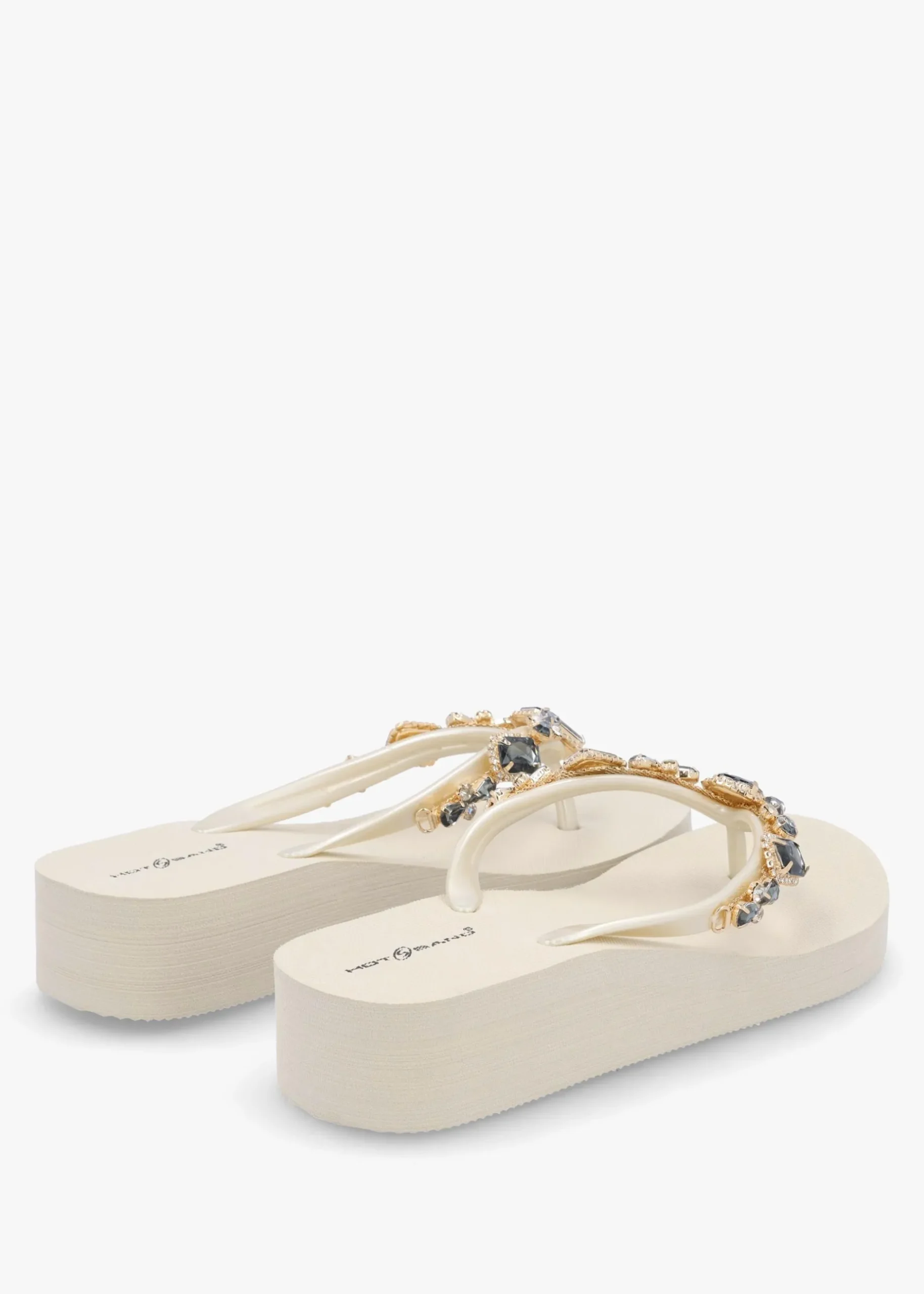 Add these classic flip flops with a twist to your Summer wardrobe, perfect for off-duty and beach days. An easy to wear slip on style featuring thong toe post. Statement jewel embellishment adds detail to the strap. Signature Hot Sand branding is seen to the footbed.