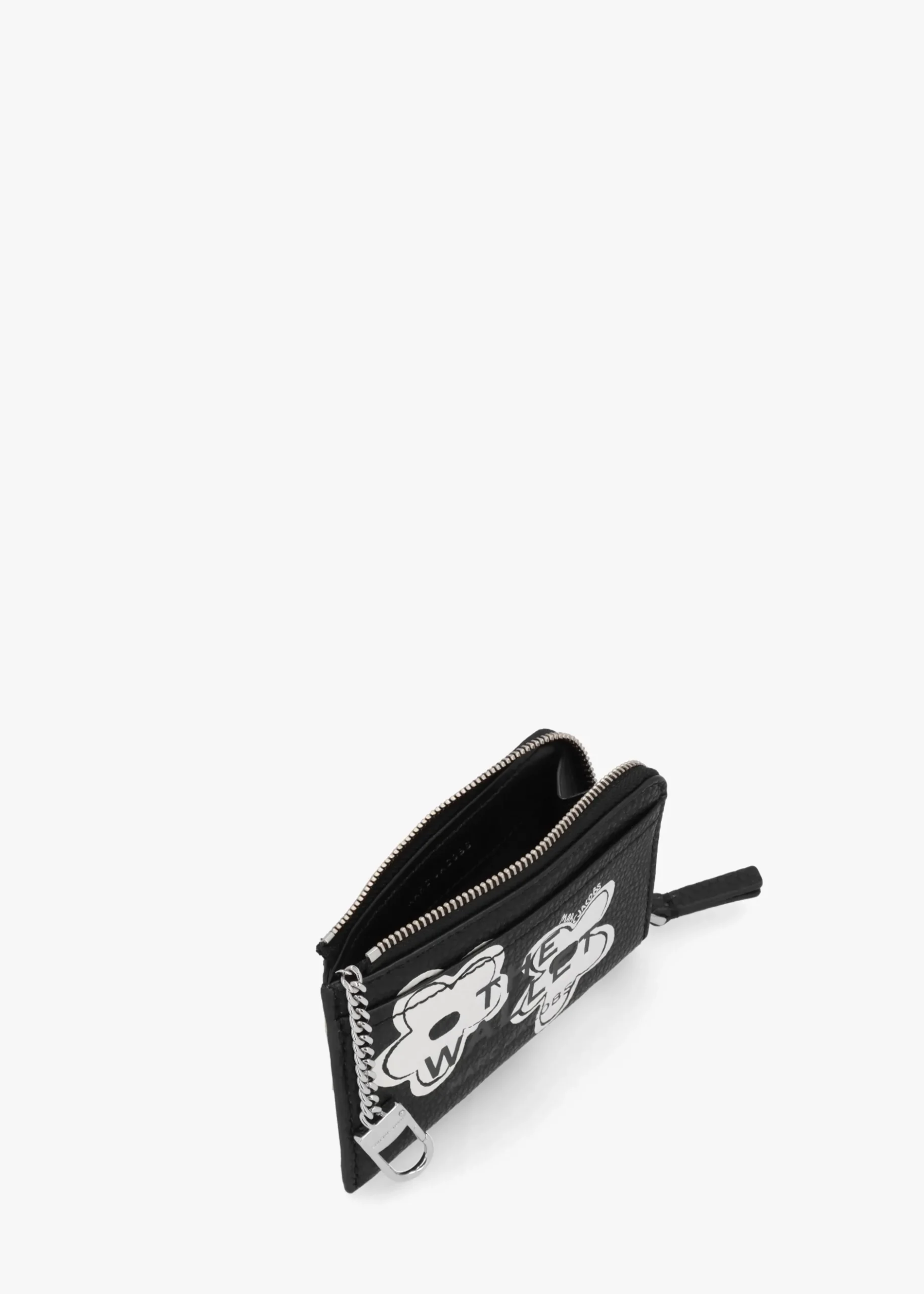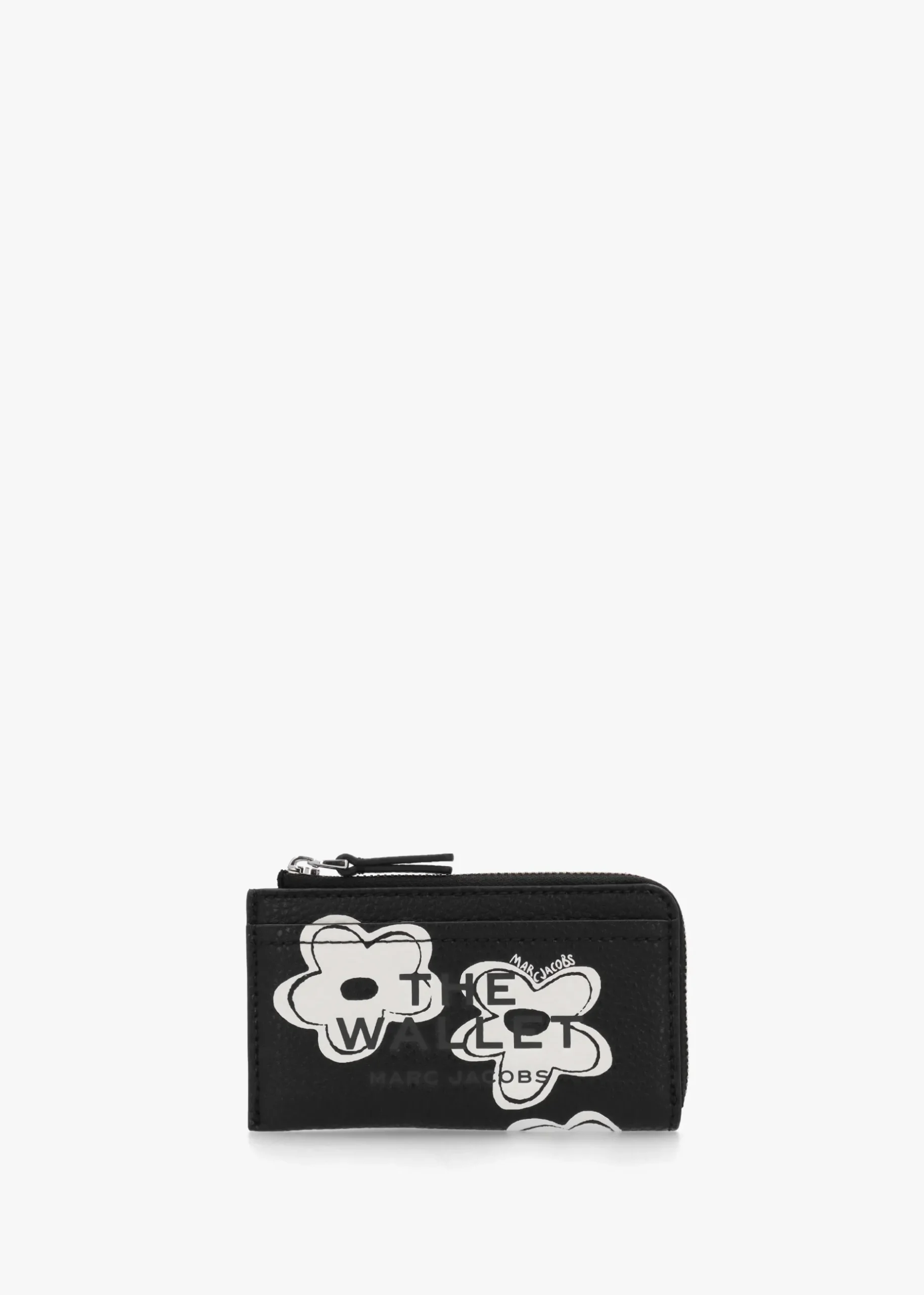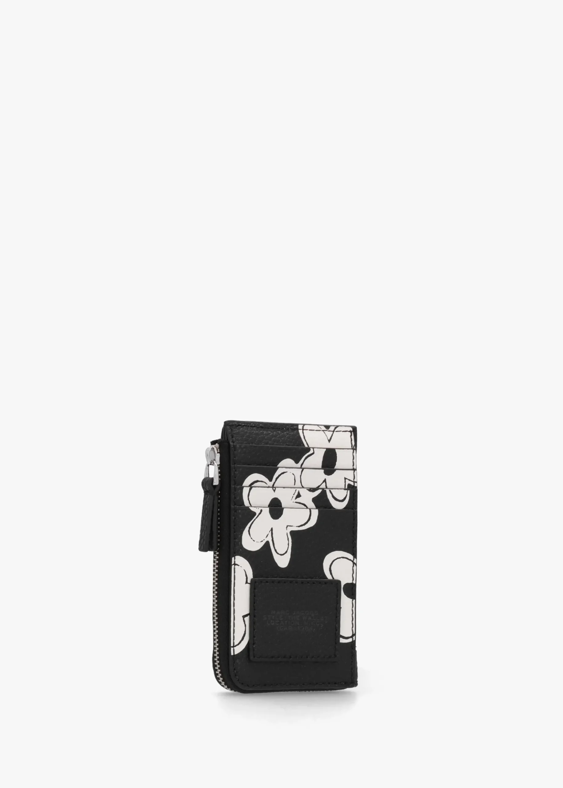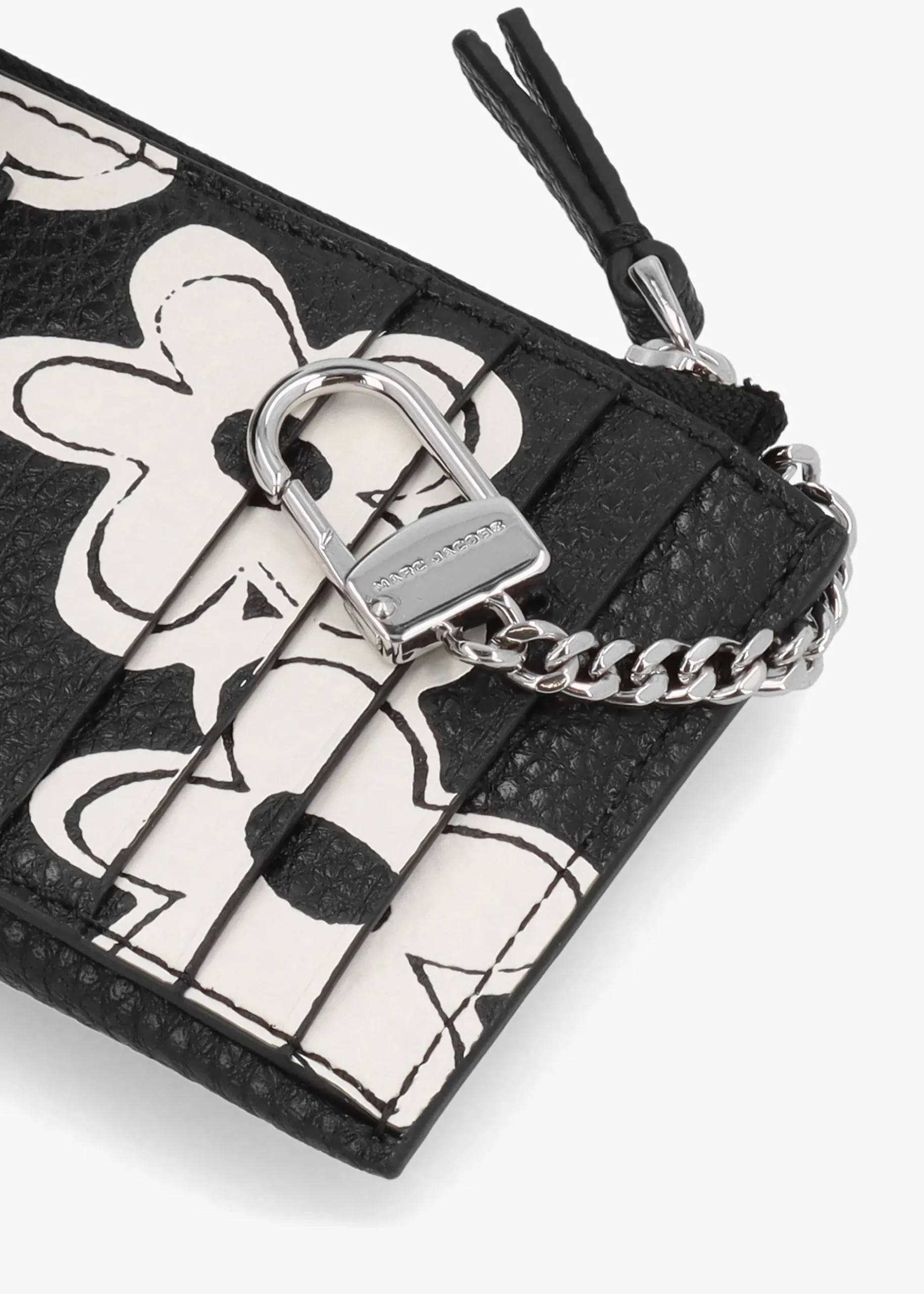 Add ‘The Daisy Top Zip’ wallet from Marc Jacobs to your accessories collection. This everyday wallet is crafted from premium full grain leather in the bold Marc Jacobs seasonal Daisy print with polished silver tone accents. This compact, yet spacious wallet includes four card slots, two slip pockets and a lobster key chain. Classic debossed logo adds detail. Signature Marc Jacobs branding is seen throughout.