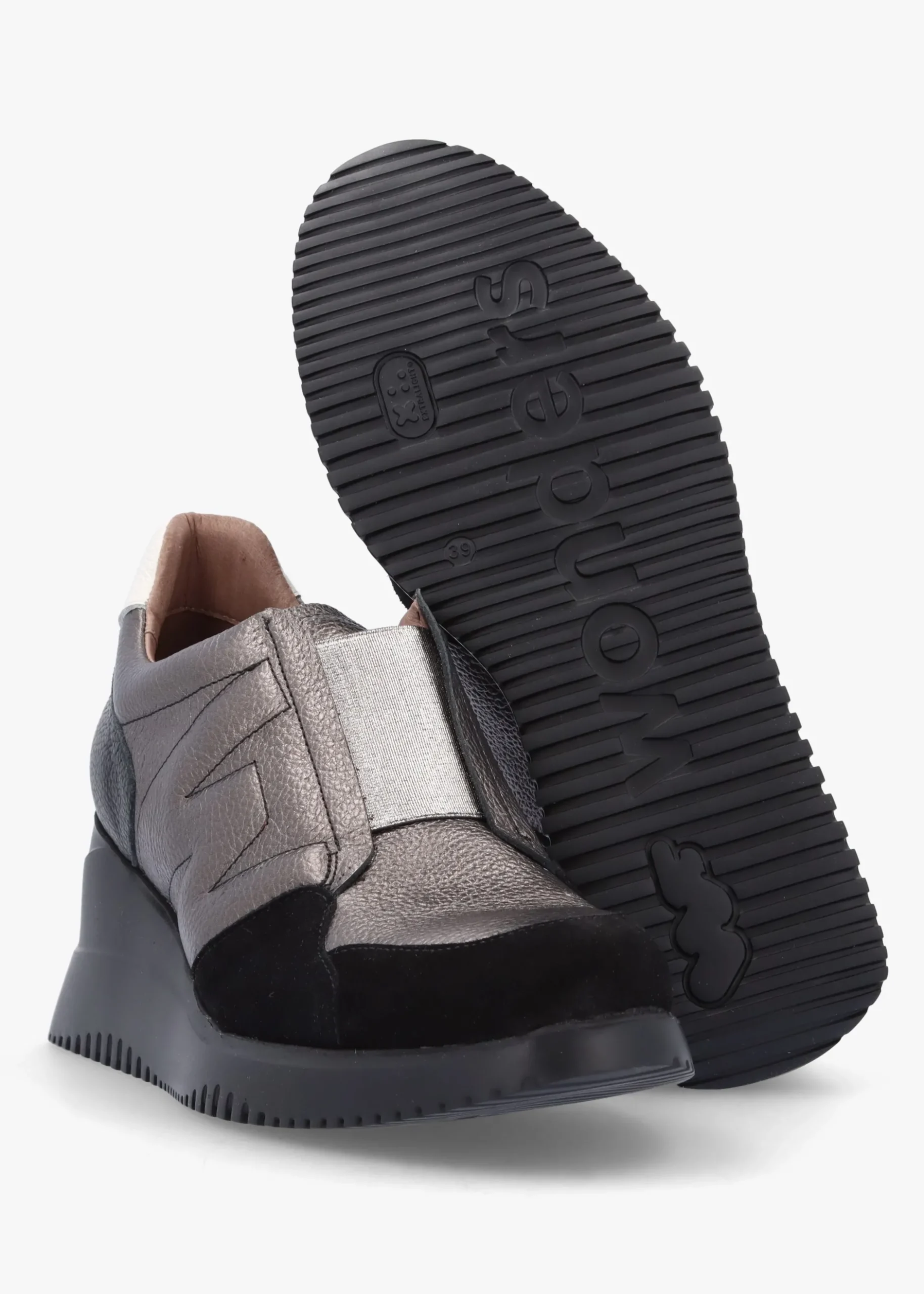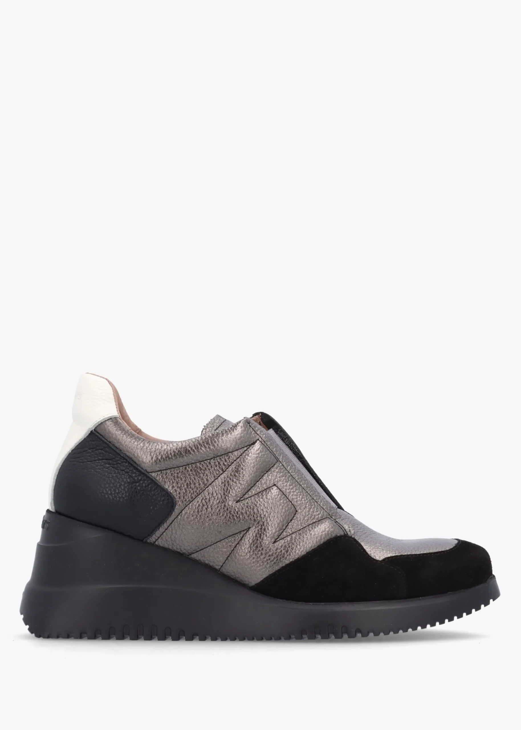 Add the women’s ‘South’ wedge trainers from Wonders to your off-duty days. This New Season style is crafted from a premium leather and suede upper with luxurious leather lining and a extra lightweight rubber sole. The elasticated panel to the upper creates an easy wear. Signature Wonders branding is seen to the footbed, sole and back of the ankle.